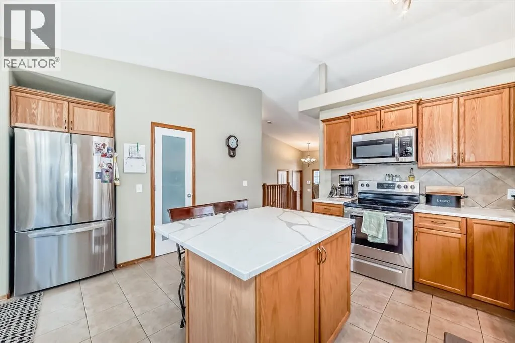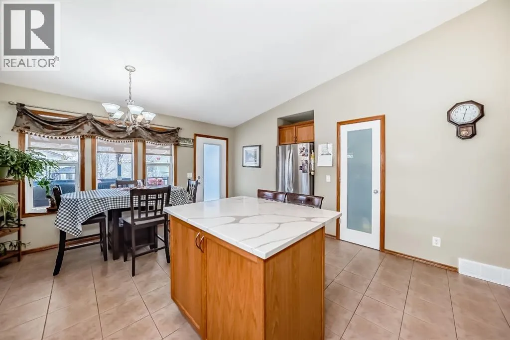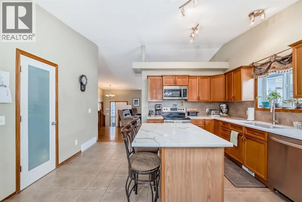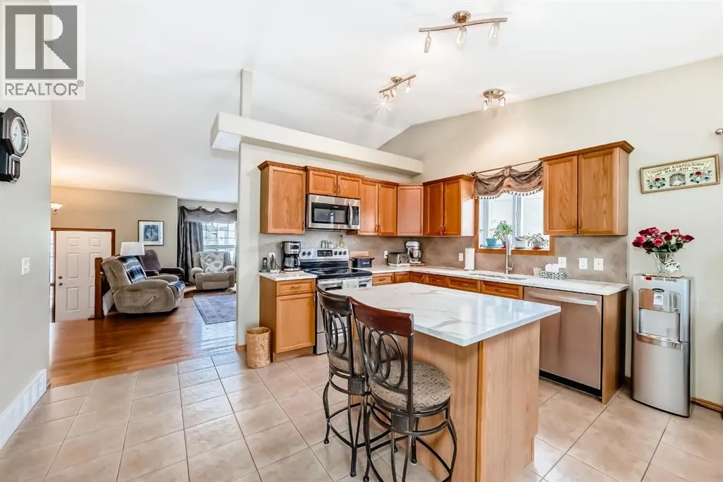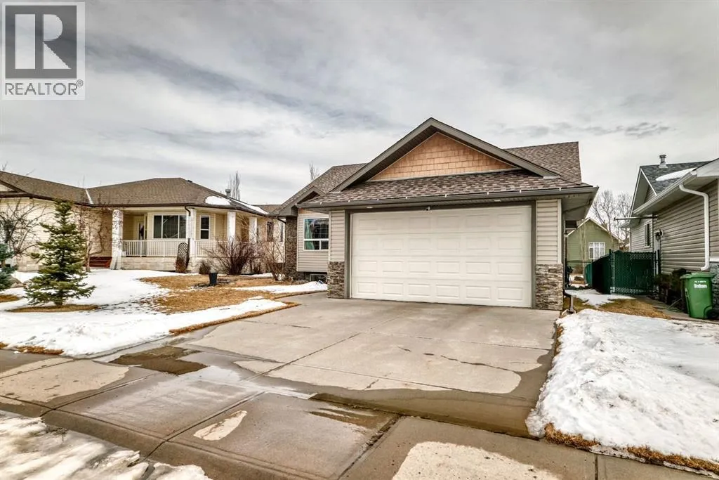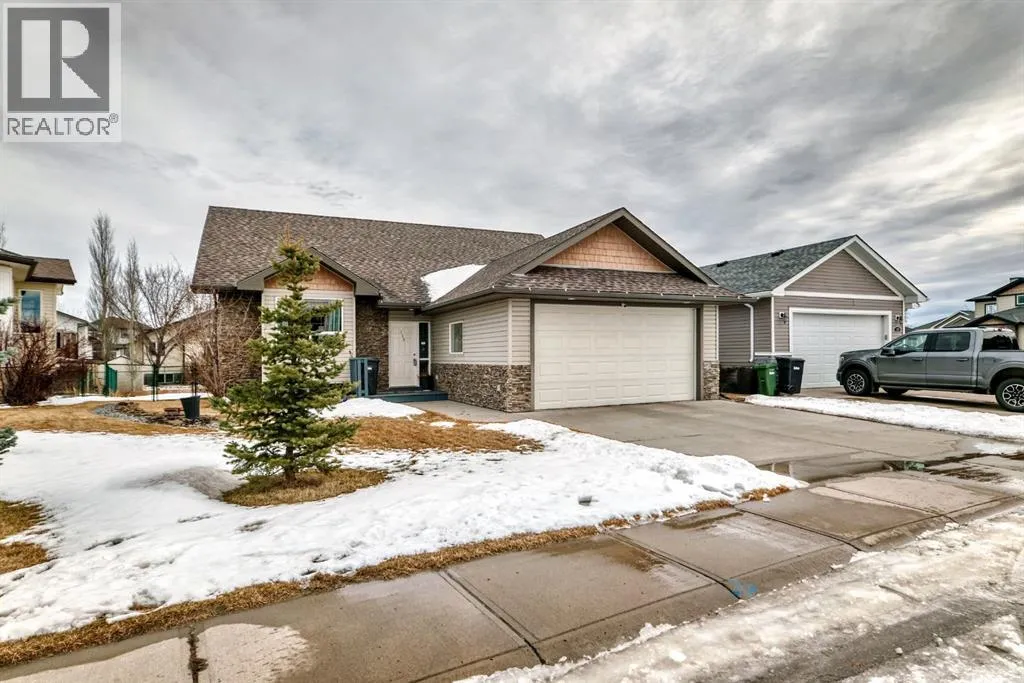 WOW, WOW, WOW!! This 5 bedroom raised bungalow is move in ready. Located in a very desired neighbourhood of Strathmore Lakes Estates. Walking in you are welcomed by a large tiled entry way with access to your double garage. This leads you to your oversized living room with bright west facing windows, but don't worry about being too warm because there is central air conditioning. The kitchen is amazing with lots of cupboards and granite counter space, pantry, and room for a large family table. There is a door to your covered deck with natural gas BBQ hookups. This home was custom built by the original owners so every bedroom is oversized. On the main floor there is 2 junior rooms with a full 4 piece bathroom. There is also the primary bedroom with room for king furniture a large walk in closet and a full ensuite with jetted tub. The lower level features large bright windows and has 2 large bedrooms with another 4 piece bathroom. The family room has a cozy natural gas fireplace and built ins for your entertainment needs. The laundry room is amazing as well there is an office and lots of storage. This home is complete with maitenance free fencing and a large yard. This home is perfect for retirement or to raise a family. Book your showing today!! (id:27476)
