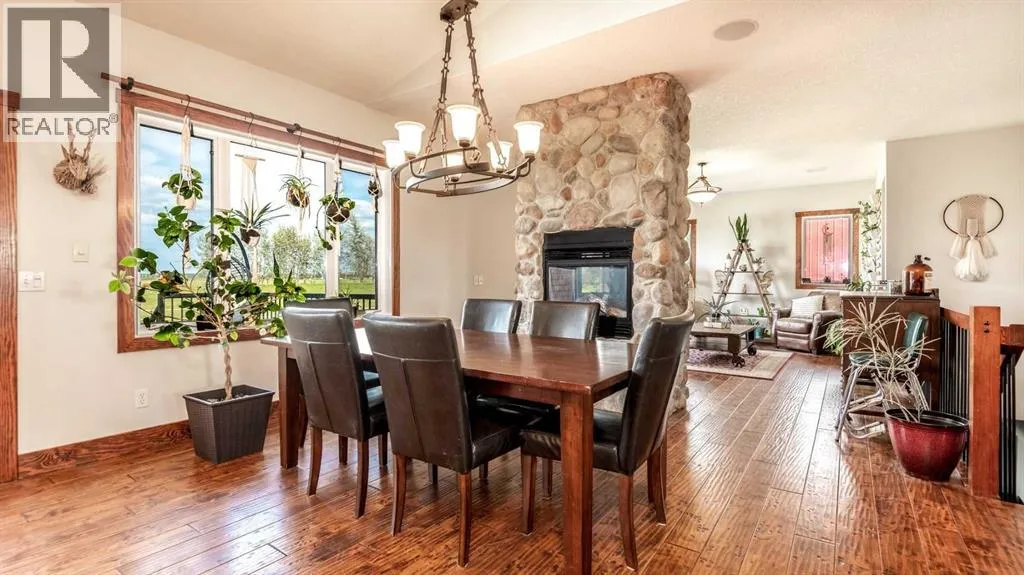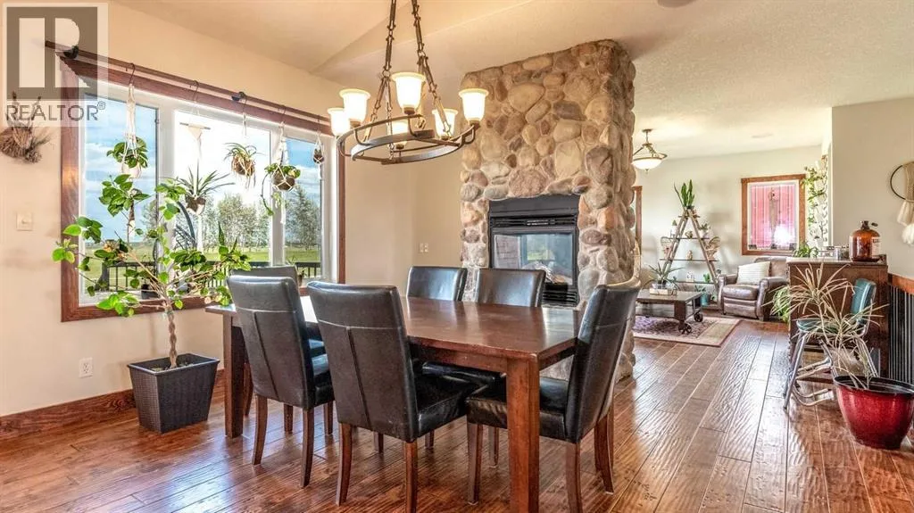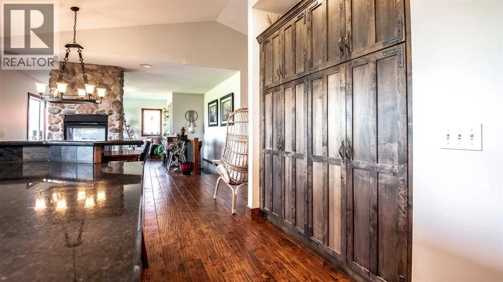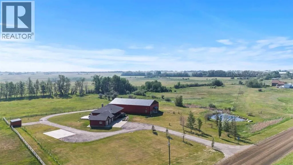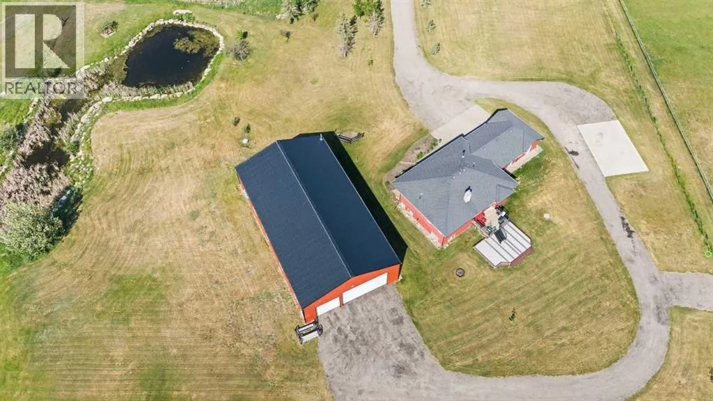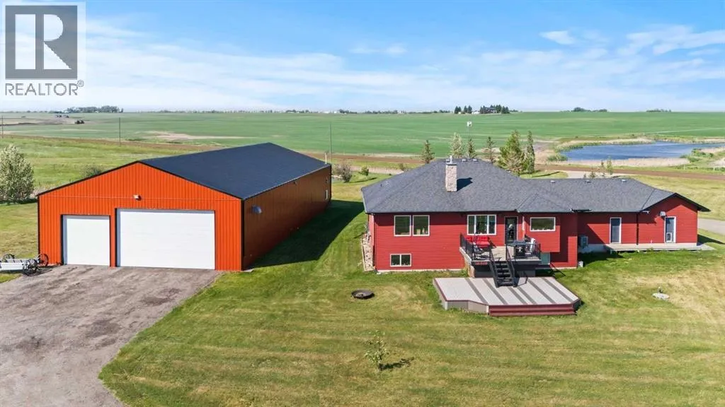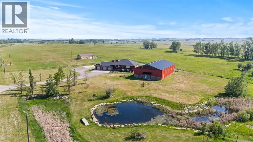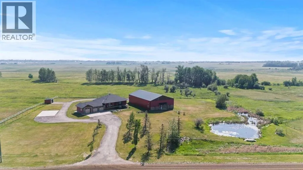 OPPORTUNITY KNOCKS - 3 ACRE PROPERTY WITHIN THE STRATHMORE WEST ASP. Created in 2006 this lovely 3 acre parcel features a FULLY DEVELOPED BUNGALOW offering over 3100 SQ FT of developed living space, an OVERSIZED HEATED TRIPLE GARAGE plus a LARGE SHOP equipped with water and power. Designed with Modern Country sheek details that highlight rustic charm and country living the OPEN FLOOR PLAN is flooded with natural light throughout the day and enjoys A/C on warmer days. A stunning kitchen boasts top of the line appliances and features a massive eat up island with additional seating. The open ended dining area is nestled next to a floor to ceiling rock faced fireplace and overlooks the pristine landscaped rear yard. A FAMILY SIZED GREAT ROOM offers up a restful retreat steps from the kitchen and dining area. The main floor primary bedroom is complete with a 3 pc en-suite bath and walk in closet. Easy access off the triple garage leads into the mudroom, two piece main bath and main floor laundry. HEATED FLOORS and large windows set the stage in the lower level for cozy evenings where you will find a large recreation area plus 3 more bedrooms and a five piece bath. A much desired large storage area completes the lower level. The 4500 sq ft shop with a developed main floor and mezzanine including a 2 pc bath is ready to develop further for long term family. The open area of the shop has an asphalt floor and the walls are insulated and boarded. The two large rear facing doors have the height you need to store your RV. The immaculate grounds feature inground sprinklers and a natural pond that attracts wildlife and birds. The Strathmore West ASP includes this 3 acre parcel. A potential rezoning in a few years might make this 3 acre parcel a worthy commercial consideration? There is a large concrete pad already poured on the North side of the property which would make an ideal base to bring in a modular or mobile home. Permits and applications must go through t he Town of Strathmore as this property is annexed in to the Town. Now is the time to think about a long term investment - live here for 10 years while the town builds out towards you and enjoy the potential revenue generation or create a family set up that delivers a dream come true for many. For more information on the Strathmore West ASP please access the uploaded documents. (id:27476)