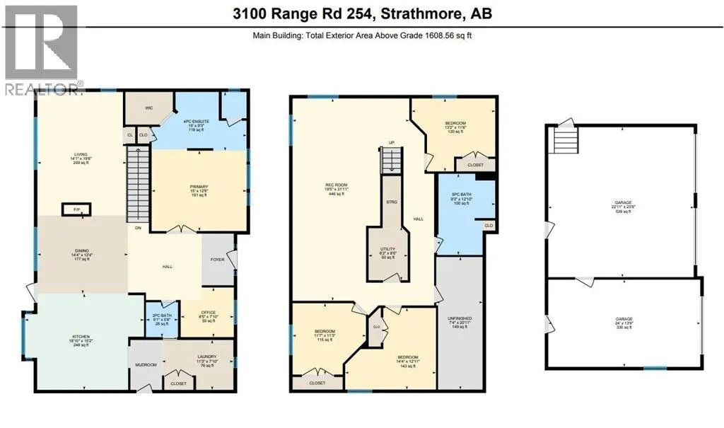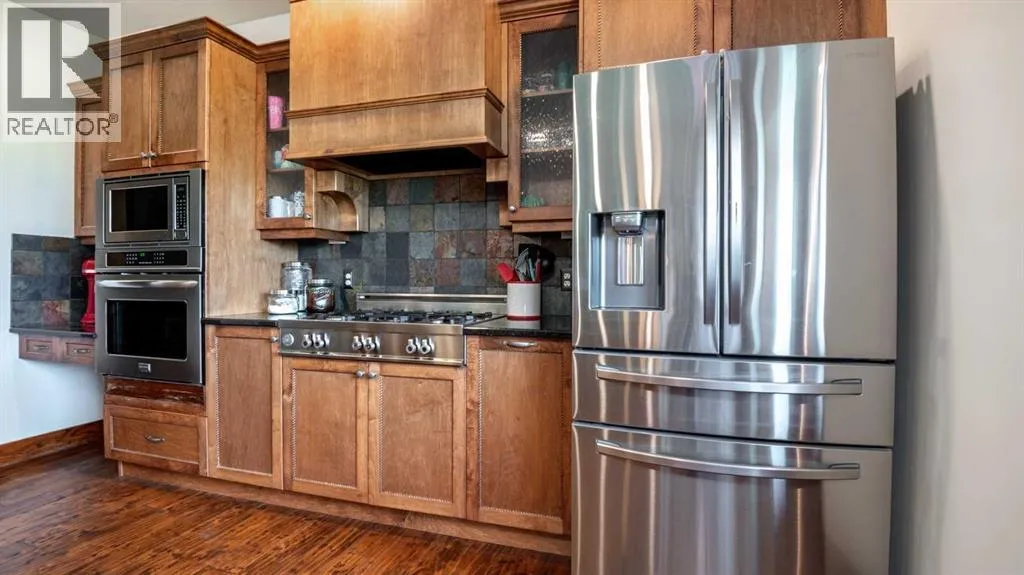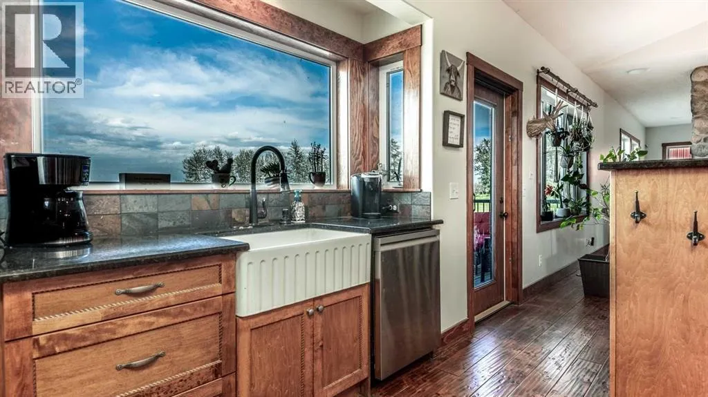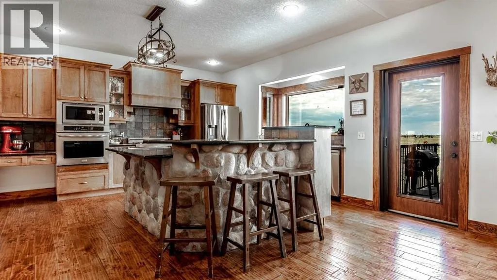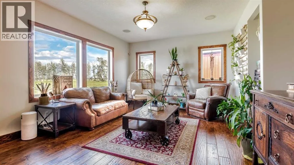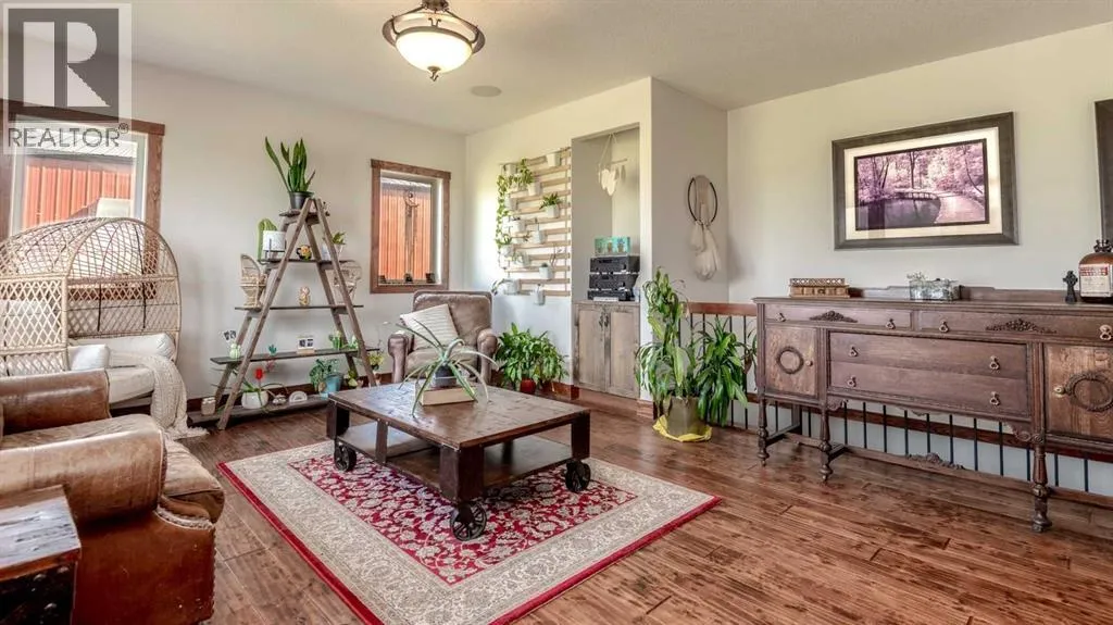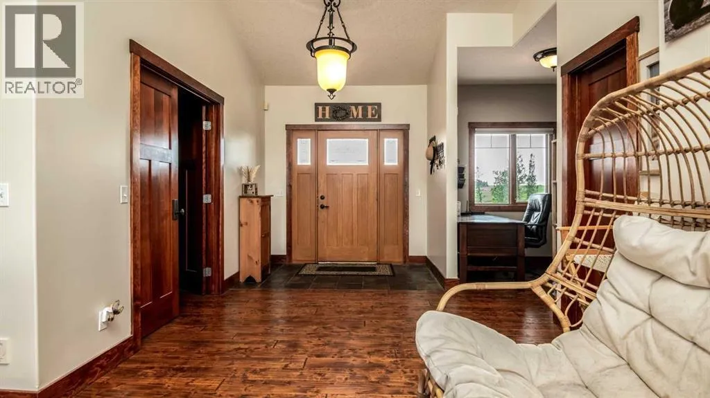 OPPORTUNITY KNOCKS - 3 ACRE PROPERTY WITHIN THE STRATHMORE WEST ASP. Created in 2006 this lovely 3 acre parcel features a FULLY DEVELOPED BUNGALOW offering over 3100 SQ FT of developed living space, an OVERSIZED HEATED TRIPLE GARAGE plus a LARGE SHOP equipped with water and power. Designed with Modern Country sheek details that highlight rustic charm and country living the OPEN FLOOR PLAN is flooded with natural light throughout the day and enjoys A/C on warmer days. A stunning kitchen boasts top of the line appliances and features a massive eat up island with additional seating. The open ended dining area is nestled next to a floor to ceiling rock faced fireplace and overlooks the pristine landscaped rear yard. A FAMILY SIZED GREAT ROOM offers up a restful retreat steps from the kitchen and dining area. The main floor primary bedroom is complete with a 3 pc en-suite bath and walk in closet. Easy access off the triple garage leads into the mudroom, two piece main bath and main floor laundry. HEATED FLOORS and large windows set the stage in the lower level for cozy evenings where you will find a large recreation area plus 3 more bedrooms and a five piece bath. A much desired large storage area completes the lower level. The 4500 sq ft shop with a developed main floor and mezzanine including a 2 pc bath is ready to develop further for long term family. The open area of the shop has an asphalt floor and the walls are insulated and boarded. The two large rear facing doors have the height you need to store your RV. The immaculate grounds feature inground sprinklers and a natural pond that attracts wildlife and birds. The Strathmore West ASP includes this 3 acre parcel. A potential rezoning in a few years might make this 3 acre parcel a worthy commercial consideration? There is a large concrete pad already poured on the North side of the property which would make an ideal base to bring in a modular or mobile home. Permits and applications must go through t he Town of Strathmore as this property is annexed in to the Town. Now is the time to think about a long term investment - live here for 10 years while the town builds out towards you and enjoy the potential revenue generation or create a family set up that delivers a dream come true for many. For more information on the Strathmore West ASP please access the uploaded documents. (id:27476)