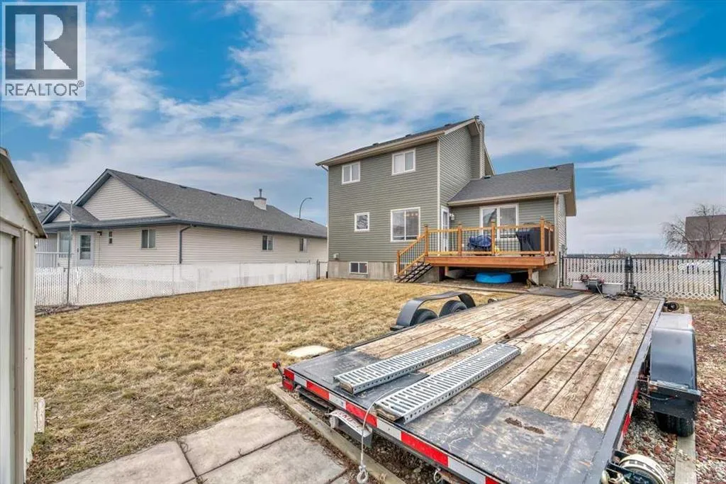 Set on a spacious lot, this home delivers the kind of outdoor space thatâs hard to findâcomplete with RV parking, a full-size deck, and plenty of room to actually use your yard. Inside, the layout is functional and open. A wide front entry gives you space to come and go comfortably, leading into a bright living area anchored by large windows. The kitchen is designed for real lifeâloads of cabinetry, generous prep space, and a dining area that connects directly to the backyard for easy indoor/outdoor flow. A convenient 2-piece bath finishes the main level. Upstairs, youâll find three well-proportioned bedrooms, including a primary retreat with its own ensuite and excellent closet space. A second full bathroom serves the additional bedrooms. The basement is unfinished with a bathroom rough-in already in placeâready for whatever direction you want to take it. Extras that matter: double attached garage, central air conditioning, and rare RV parking. Solid layout, great lot, and room to growâthis one checks the right boxes. a Dreamy 2 storey for your next chapter! Located in amazing community of Strathmore a full service community with a Hospital, Rec centres, Swimming pool, Shopping, Banks Grocery stores amazing walking paths and tonnes of parks! Great access to Calgary perfect for commuters! (id:27476)