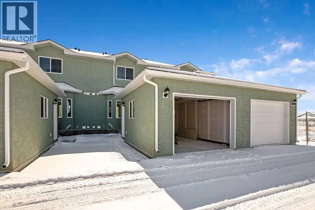 Welcome home to this new condo, This unit is move in ready and boasts an open concept from the living room to kitchen. Vinyl plank flooring in the living room and Kitchen. Ceramic tile at back and front entrance. Kitchen boasts a breakfast bar, quartz counter tops, stainless steel appliances, pantry, nice eating area and access to the back deck leading to the detached garage. Two piece bath off the living room/dining room. Upstairs has 3 good sized bedrooms with a full ensuite in the Primary bedroom along with his and her closets. Another 4 piece bath upstairs. The basement is untouched and waiting for you to finish the way you desire. Progressive New Home Warranty, GST rebate to the builder. Quick possession, move in ready! (id:27476)