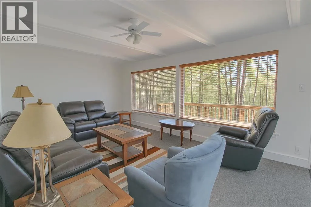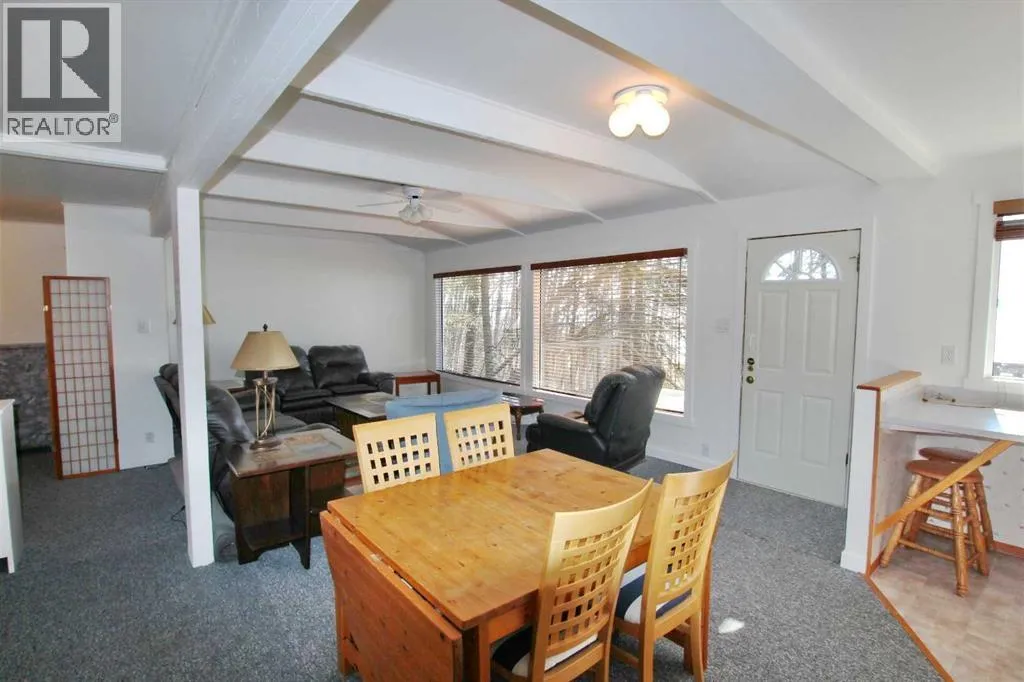 Lakefront Living at its's finest. A rare opportunity - 60ft of level lakefront on beautiful Sylvan lake! Nestled in the sought-after community of Sunbreaker Cove, this cozy 3 bedroom cabin is the perfect summer getaway. Step out onto the huge wraparound deck and soak in uninterrupted lake views, ideal for relaxing, entertaining, or taking in the sunsets. The treed yard offers both privacy and charm, with only one neighboring property - on the other side, enjoy the peace and quiet of an environmental reserve. Inside, the cabin exudes warmth and character, offering comfortable open spaces for family and friends to gather after a day on the water. With summer just around the corner, now is the perfect time to make lake life yours. Storage sheds and plenty of parking space. (id:27476)
