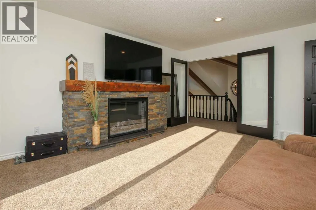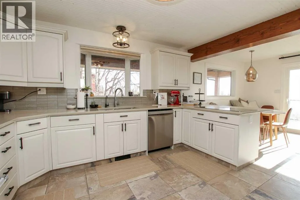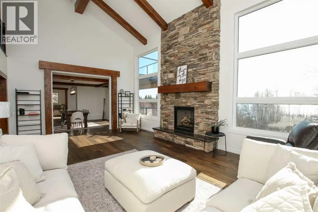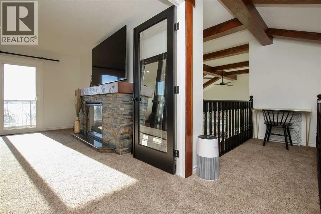 FULLY DEVELOPED & RENOVATED ~ 4 BEDROOM, 4 BATHROOM TWO STOREY IN SUNBREAKER COVE ~ SOUTH WEST FACING BACKYARD WITH LAKE VIEWS FROM ALL LEVELS ~ HEATED TRIPLE GARAGE ~ STEPS TO YOUR PRIVATE DOCK ~ Just completed renovations include; All new windows and doors, LP Smartside Siding, eavestroughs, insulation, plumbing lines, pump for well, water softener, iron filtration, reverse osmosis, refinished decking, poured concrete driveway and walkway ~ Covered front entry welcomes you and leads to a welcoming foyer with vaulted ceilings, tile flooring and lake views ~ The two storey great room features a stone faced fireplace with floor to ceiling stone, and large windows that fill the space with natural light and offering amazing lake views ~ Host large gatherings with ease in the formal dining room with garden doors leading to a covered, wrap around deck ~ The breakfast room has built in seating and another set of patio doors leading to the deck ~ The stunning kitchen offers an abundance of cabinetry, stone counter tops, full tile backsplash, bay window above the sink, upgraded black stainless steel appliances, and a spacious walk in pantry ~ 2 piece bathroom located next to the mud room with access to the garage ~ Generous size main floor bedroom can easily accommodate a king size bed, and is located next to a 3 piece bathroom with a walk in shower and linen closet ~ Open staircase overlooks the foyer and leads to the upper level with an office nook that overlooks the great room ~ The bonus room features a cozy fireplace with a brick surround and raised hearth, plus garden doors leading to a south west facing balcony overlooking the backyard and lake ~ French doors lead to the private primary bedroom with plenty of space for a king size bed plus multiple pieces of furniture ~ 5 piece spa like ensuite has dual sinks with stone counter tops, a walk in shower, jetted soaker tubs and skylights ~ The huge walk in closet has custom built in organizers, a skylight and convenient stackable laundry ~ The fully finished walkout basement offers high ceilings, large above grade windows, a separate entrance and more amazing lake views ~ The family room is set up for entertaining with a large games area, media space with lighted built-in shelving and space for your TV, and a wet bar with built in cabinets, two seating areas, and garden door access to the lower patio and backyard ~ 2 bedrooms are both a generous size ~ Oversized 3 piece bathroom with a walk in shower ~ Second laundry room opens to a large storage space with a window and potential for future development ~ Massive unfinished storage space below the garage has an overhead door to the backyard and offers endless storage space ~ Triple attached garage is heated, insulated, finished with painted drywall, has a man door to the deck and backyard, and two overhead doors ~ The sunny south west facing backyard is fully fenced, sides on to a walking trail and backs onto a green space leading to the lake and private dock. (id:27476)