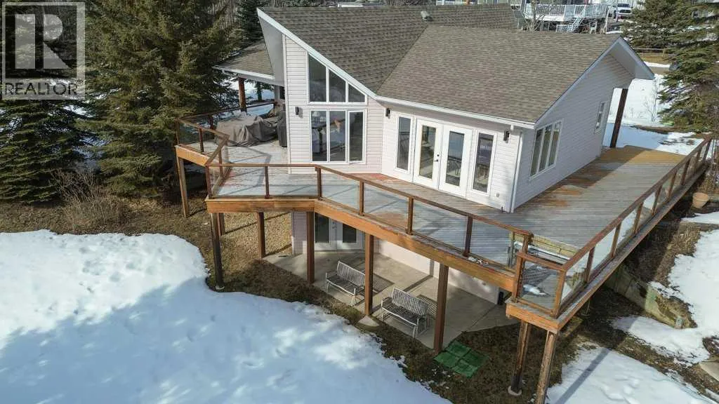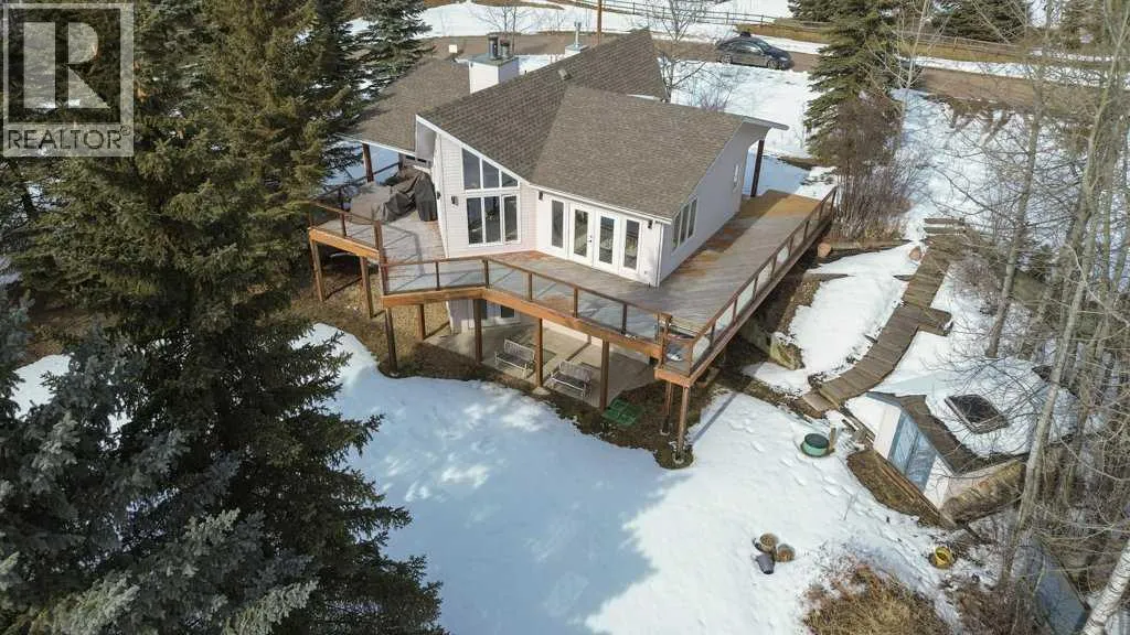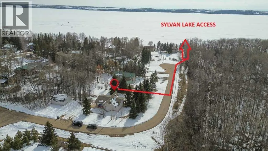 Just steps from the sunny west-facing shores of Sylvan Lake, this inviting home offers the perfect blend of comfort, space, and year-round enjoyment. Complete with the rare bonus of lake access and BOAT SLIP! Inside, soaring vaulted ceilings create a sense of openness, while expansive windows surround the living spaces, flooding the home with natural light and seamlessly bringing the outdoors inside. The large living room is anchored by the aroma of the wood burning fireplace, making it ideal to unwind after a day on the lake. The spacious kitchen features warm oak cabinetry, crisp white appliances, and a central island for additional seating. Dine inside or step out on to the massive wrap around deck and soak up the sun throughout the day. The walkout basement expands your living space with a fantastic family room. Another wood burning fireplace welcomes you with warmth to this lower level. The versatile flex space could accommodate a pool table or games area. Two generous bedrooms and 4-piece bathroom are perfect for company. Sliding glass doors lead directly to the backyard, offering easy access to the outdoor living space. The double detached garage provides plenty of indoor parking, and the large shed offers storage for yard equipment and lake toys. Whether you are looking for a weekend escape or a full-time retreat, this exceptional property offers an incredible opportunity to embrace a Life at the Lake! Furniture and Furnishings negotiable. (id:27476)