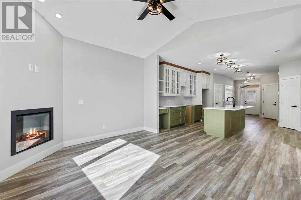 This Sundre villa offers a serene escape from urban life, surrounded by lush greenery and picturesque mountains. Situated in the heart of Sundre's vibrant community, Prairie Creek Crossing beckons with its promise of tranquil living for adults seeking a retreat or retirement haven. Step inside to discover a modern oasis designed for comfort and convenience. The open floor plan welcomes you with vaulted ceilings, creating an airy ambiance throughout. The kitchen is a chef's delight, with ample counter space, and a spacious pantry for all your culinary needs. Entertaining is effortless as the dining area seamlessly transitions into the inviting living room, providing the perfect setting for family gatherings and socializing. Retreat to the master bedroom, featuring a walk-through closet leading to a private 4-piece ensuite, offering a sanctuary of relaxation. Designed for ease of living, this single-floor layout eliminates the hassle of stairs, catering to adults looking to downsize without compromising on comfort. A over size single attached heated garage provides convenient parking for one vehicle, ensuring both practicality and security. Experience year-round comfort with in-floor heating throughout the home and garage, while exterior landscaping and snow removal are meticulously taken care of. Embrace the joys of pet ownership as Prairie Creek Crossing welcomes furry companions with board approval, allowing you to share your new home with your beloved pets. Beyond the doorstep, Sundre offers an array of recreational opportunities for outdoor enthusiasts, including hiking, fishing, camping, and trail riding amidst breathtaking natural landscapes. Indulge in quality golf courses or unwind at the local hospital, seniors club, or indoor recreational centre with an indoor pool and fitness facilities. Don't wait to embrace the retirement lifestyle you've dreamed ofâseize the opportunity to live amidst Sundre's beauty and tranquility at Prairie Creek Crossing. More Pictu res to follow, Just at finishing Stage! Please note we Have 5 units and you are welcome to view them all! (id:27476)