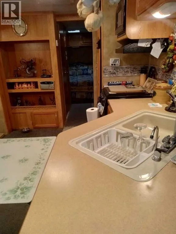 SUNDRE'S RIVERSIDE RV VILLAGE- NICE UNIT IN MOST DESIREABLE QUIETEST PARK PHASE 5. BORDERED ON TWO SIDES BY SMALL SPRING FED CREEKS, LARGE TREES AND SHRUBS GIVE EXTREME PRIVACY. FRONT IS COVERED WITH WILD DAISIES. THE RV IS JUST LIKE NEW, ONE BEDROOM WITH BATHROOM WITH TOILET AND SHOWER AND SINK. LARGE SLIDE IN THE LIVING ROOM AREA. THE COVERED DECK IS REALLY UNIQUE THE PERFECT PLACE TO SIT AND READ A BOOK, LISTEN TO THE BIRDS AND WATCH THE WILDLIFE. THIS UNIT BOTH RV AND COVERED DECK HAVE ALWAYS BEEN ENGULFED IN A LARGE TARP. RIVERSIDE HAS A FABULOUS CLUBHOUSE WITH SEASONAL WASHROOMS AND LAUNDRY. THE MAIN WASHROOMS AND LAUNDRY ARE OPEN YEAR ROUND FOR THOS HARDY WINTER CAMPERS. CARETAKERS ARE ON SITE YEAR ROUND AND PATROL THE PARK FOR SECURITY DAILY. LOCATED JUST A COUPLE OF BLOCKS FROM THE MAIN STREET IN TOWN AND THOSE FABULOUS EATING ESTABLISHMENTS. AND OH SO MANY LIQUOR STORES. RIVERSIDE IS A GATED COMMUNITY SO CALL FOR GATE ACCESS. (id:27476)