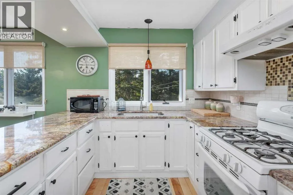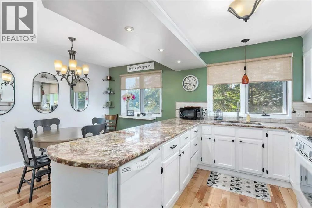 Once Upon a Time in Sundreâ¦On a storybook corner lot of 0.31 acres, tucked right into the heart of Sundre, stands a charming bungalow that feels as if it leapt straight from the pages of a fairy tale. With 4 cozy bedrooms and 2 ½ sparkling baths, this enchanting home is ready to welcome its next chapter of happily ever afters. Step inside, and youâll be greeted by the warmth of hardwood floors beneath your feet and the shimmer of granite counters that glisten like treasure in a sun-drenched, south-facing kitchen. With cupboards as plentiful as the pages in a magical storybook and a natural gas stove fit for a royal feast, meal prep transforms into a celebration. The primary suite, complete with its own private 2-piece ensuite, is your retreat after long adventures. Two additional bedrooms on the main floor are ready to host little dreamers, guests, or perhaps even a home-based salonâonce upon a time, this very home held one, complete with wash sink and laundry connections (still in place in the basement, should you wish to awaken them again). Sunlight streams generously through the homeâs large windows, weaving golden threads across every room. Downstairs, discover a family/games room where laughter can echo long into the night, complete with a grand bar and a separate wet bar, ready for festive banquets. With a spacious 4th bedroom, a bright 3-piece bath, a cold room, and endless storage, this lower level is anything but a dark dungeonâitâs a welcoming extension of the story. Beyond the walls lies your very own enchanted garden oasis. Here, thereâs room for all the princes, princesses, knights, and loyal pets to roam free. A firepit awaits for starlit storytelling, while a two-part shed, RV gate, and single detached garage with covered carport provide safe harbor for all your treasures. And when the season is right, a generous garden plot yields a harvest fit for a kingâs table. This isnât just a houseâitâs the setting where your familyâs next chapter is waiting to unfold. âHome Is Where Your Story Begins!â⦠and this Sundre haven is ready to start the tale. (id:27476)