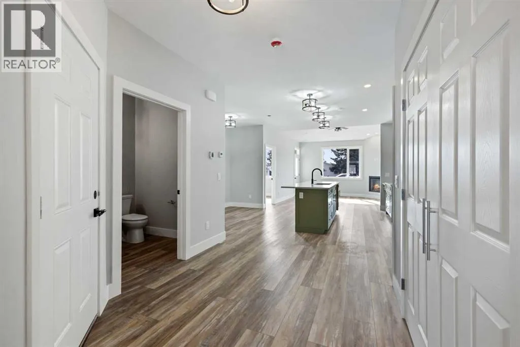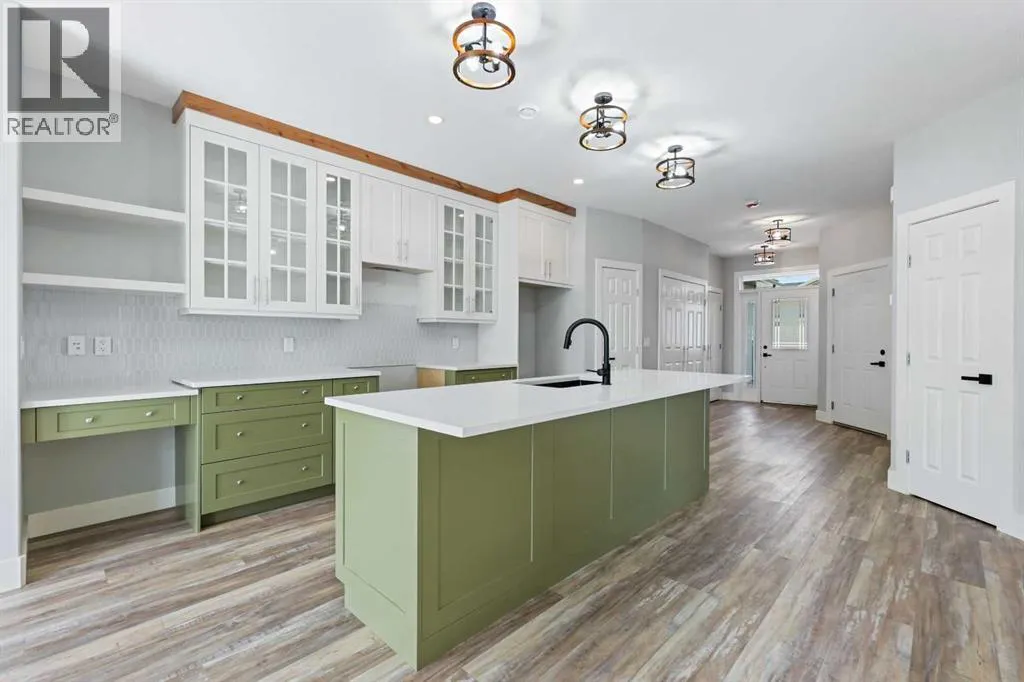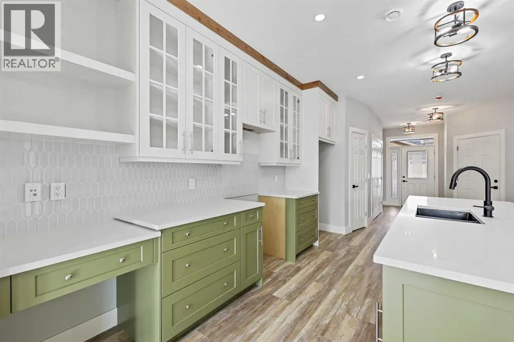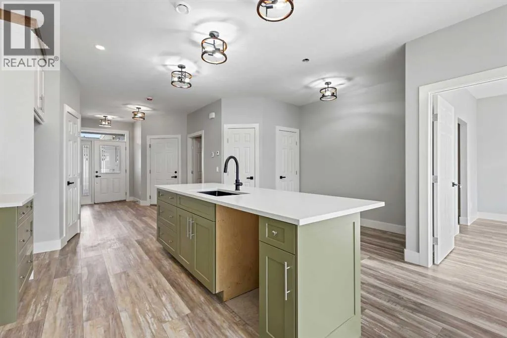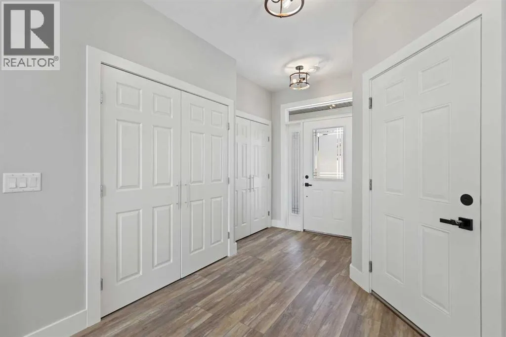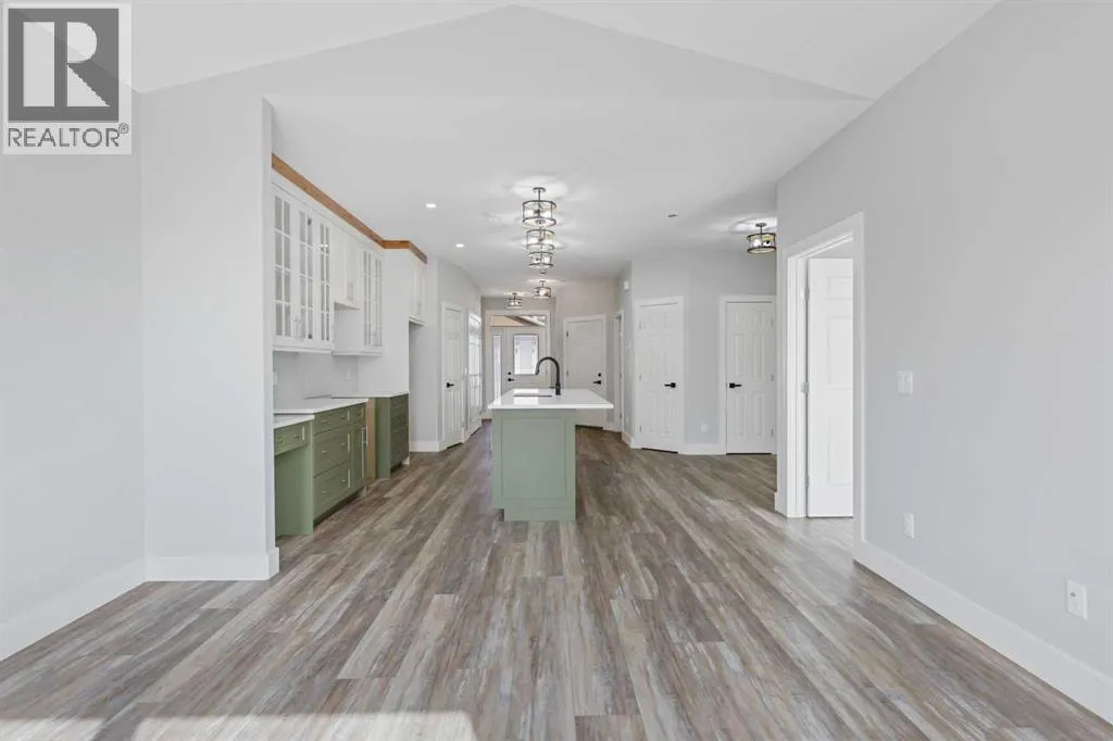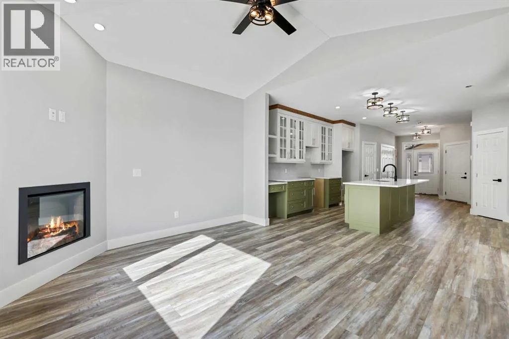 This Sundre villa offers a serene escape from urban life, surrounded by lush greenery and picturesque mountains. Situated in the heart of Sundre's vibrant community, Prairie Creek Crossing beckons with its promise of tranquil living for adults seeking a retreat or retirement haven. Step inside to discover a modern oasis designed for comfort and convenience. The open floor plan welcomes you with vaulted ceilings, creating an airy ambiance throughout. The kitchen is a chef's delight, with ample counter space, and a spacious pantry for all your culinary needs. Entertaining is effortless as the dining area seamlessly transitions into the inviting living room, providing the perfect setting for family gatherings and socializing. Retreat to the master bedroom, featuring a walk-through closet leading to a private 4-piece ensuite, offering a sanctuary of relaxation. Designed for ease of living, this single-floor layout eliminates the hassle of stairs, catering to adults looking to downsize without compromising on comfort. A over size single attached heated garage provides convenient parking for one vehicle, ensuring both practicality and security. Experience year-round comfort with in-floor heating throughout the home and garage, while exterior landscaping and snow removal are meticulously taken care of. Embrace the joys of pet ownership as Prairie Creek Crossing welcomes furry companions with board approval, allowing you to share your new home with your beloved pets. Beyond the doorstep, Sundre offers an array of recreational opportunities for outdoor enthusiasts, including hiking, fishing, camping, and trail riding amidst breathtaking natural landscapes. Indulge in quality golf courses or unwind at the local hospital, seniors club, or indoor recreational centre with an indoor pool and fitness facilities. Don't wait to embrace the retirement lifestyle you've dreamed ofâseize the opportunity to live amidst Sundre's beauty and tranquility at Prairie Creek Crossing. (id:27476)