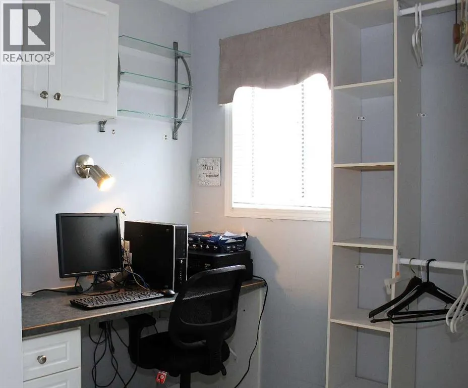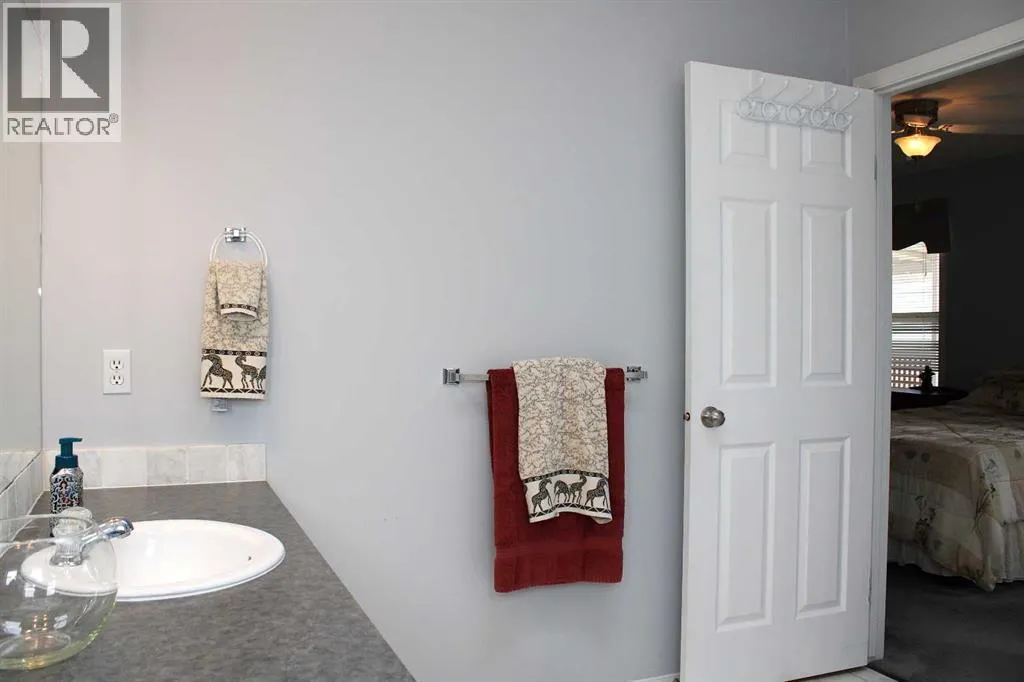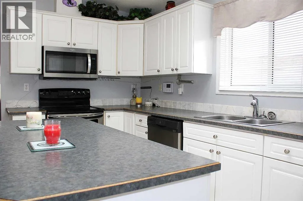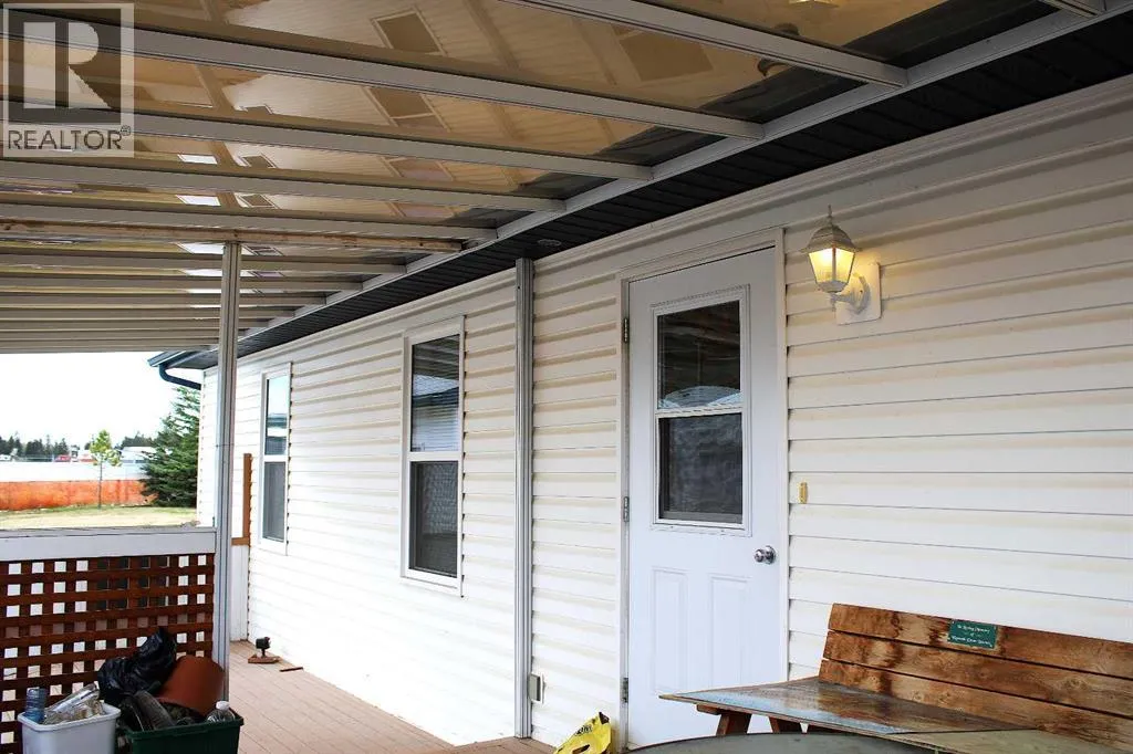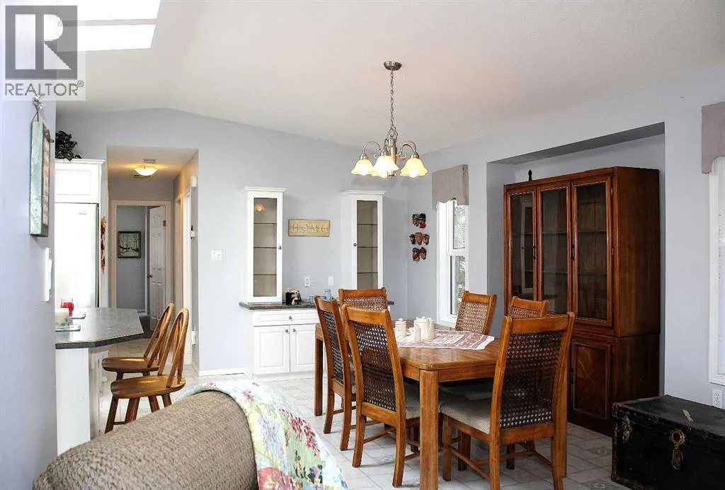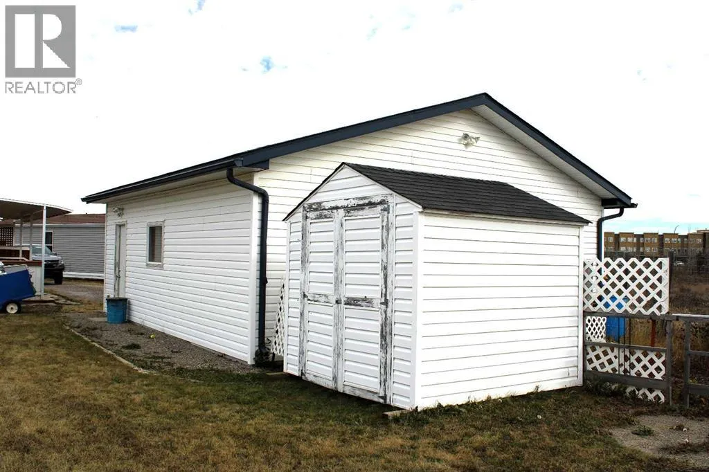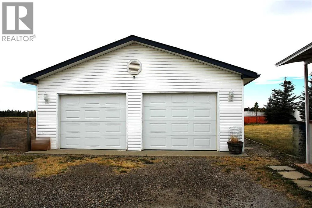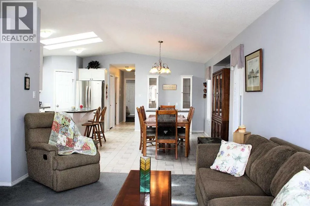 Located in a quiet, family-friendly neighbourhood, this property provides easy access to nearby walking trails, schools, shops, and restaurants. Residents benefit from the peaceful setting while remaining close to all of Sundre's key amenities. Noblefern Way is designated for modern modular residences situated on town-sized titled lots, free from condominium or strata fees. Lot #24 offers a spacious, pie-shaped configuration with views of the western green space and the added benefit of no neighbouring properties to the rear. The 20-foot-wide, 2-bed, 2-bath drywalled modular home offers the comfort and appearance of a traditional bungalow. One of its best features is the closeted foyer. Here is room to take off your shoes and hang your coat without cluttering the main living area, keeping the entrance organized and welcoming for both guests and residents. The vaulted ceilings add spaciousness, and the large windows bring in natural light. Double skylights in the kitchen brighten the heart of the home, creating an airy, light-filled space perfect for family meals or entertaining friends. A central island provides extra storage space and seating. There is an abundance of crisp white upper and lower cabinetry and counterspace. A huge corner pantry is essential, ensuring that groceries and kitchen essentials are easily accessible and neatly organized. The kitchen is designed to keep family life running smoothly. Modern finishes and thoughtful touches throughout ensure everyday comfort, while ample storage makes this house both practical and stylish. The great layout continues beyond the kitchen and living areas, seamlessly integrating functionality with comfort throughout the home. Adjacent to the main spaces, the rear entryâs stackable laundry and generous storage solutions make household chores efficient and organized. Across the hall is a convenient four-piece bathroom, brightened by a skylight. The second bedroom works perfectly as a flexible space for guests, a home office, or a fitness area, blending with your lifestyle needs. Located at the far end, the primary suite offers a refined living space with an expansive walk-in closet, a dedicated computer workspace, and storage solutions to maintain organization. The ensuite bathroom includes a corner jetted tub and an ample counter area featuring dual sinks. The southwest-facing covered deck and spacious ground-level deck that stretches 32 ft extends the living space outdoors, providing the ideal setting for relaxing in the fresh air. A detached double-car garage provides ample secure parking and additional storage space for your vehicles, outdoor gear, and tools. Easily accessible from the backyard, this versatile structure enhances daily convenience and supports an active lifestyle, whether you need room for hobbies, gardening supplies, or space for a workshop. Its placement complements the overall property, rounding out the homeâs appeal with practical outdoor features that make living here AWESOME !! (id:27476)