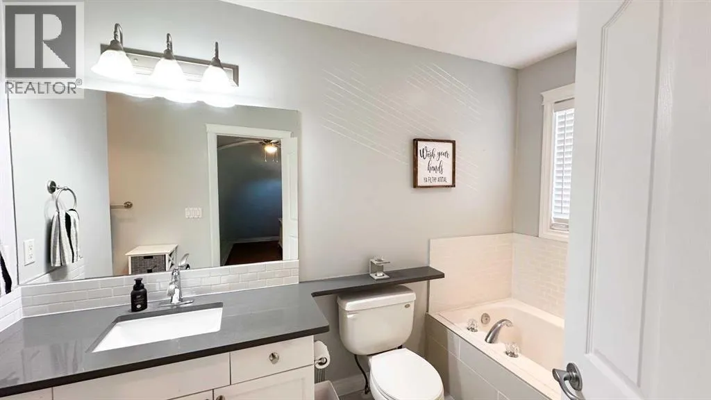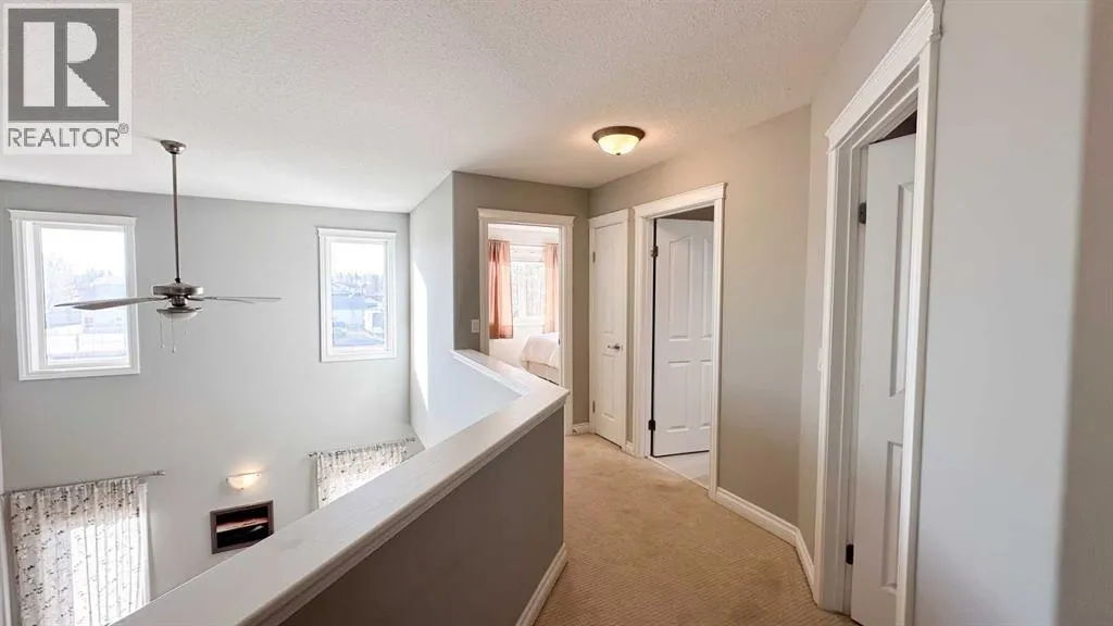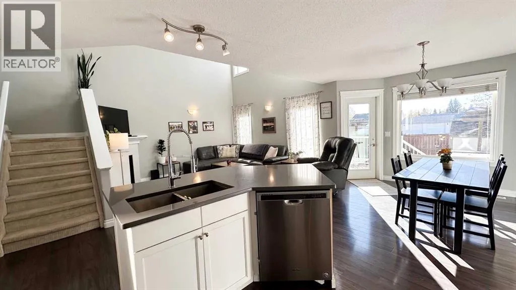Get excited to see this beautiful two-story family home on a quiet street in one of Sundreâs most sought-after neighborhoods â just a short walk from schools, parks, the arena, and walking trails, close to biking trails and access to the river for the fishing enthusiasts. This property has back lane access and no neighbors directly behind, making it very private but also has more parking room in the back alley. Sundre is a small town with great schools, amenities, clubs, sports, medical services and opportunity, especially for nature lovers.The open-concept main floor features vaulted ceilings, large windows, and plenty of natural light, creating a warm and inviting atmosphere. Youâll love the bright living area with natural gas fireplace, spacious and well laid out kitchen and dining space with patio doors to the deck for summer outdoor entertainment, and the convenience of main floor laundry and a two-piece bathroom.Total of 1725 Sq ft above grade with a fully developed basement and double garage built in 2006, Upstairs, you will find three comfortable bedrooms and two full bathrooms, including a lovely primary suite with room to unwind, a large 4 piece ensuite and walk in closet. The fully developed basement adds even more living space with a family room, fourth bedroom, and another full bathroom â ideal for guests or teenagers.Enjoy the outdoors in your south-facing backyard, offering all-day sun, no neighbors behind, and lane access with extra parking. Relax or entertain on the private decks and soak in the hot tub under the stars.A double attached garage and modern, light-filled design make this home a perfect combination of comfort, style, and functionality â the ideal place to settle in and enjoy all that Sundre has to offer. (id:27476)