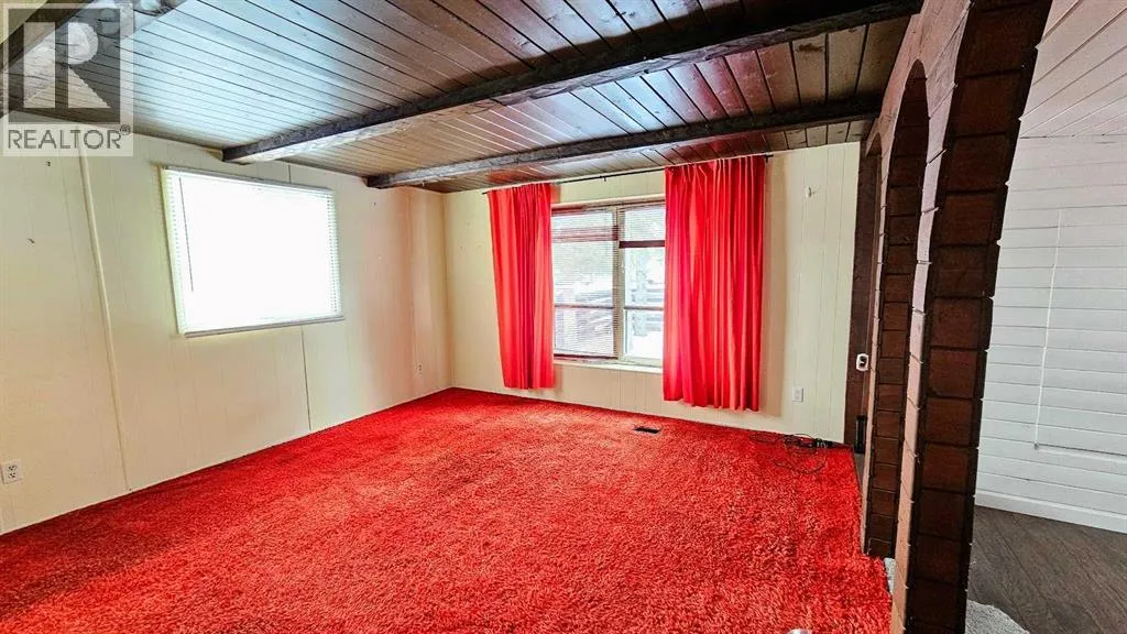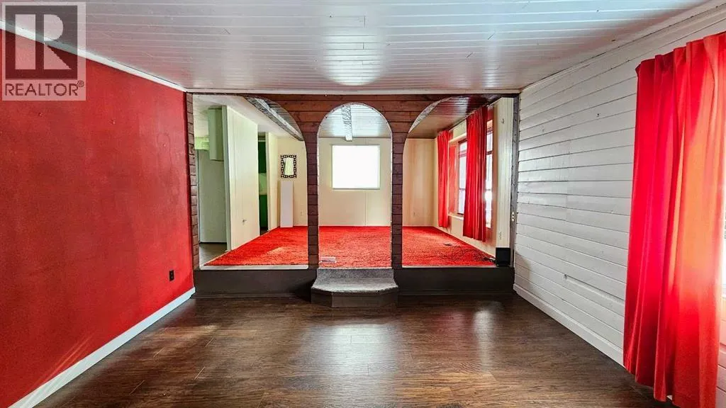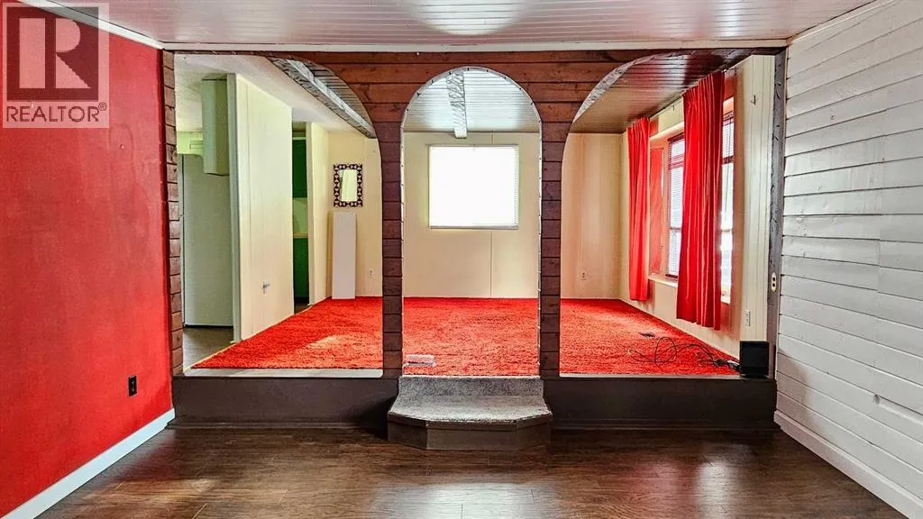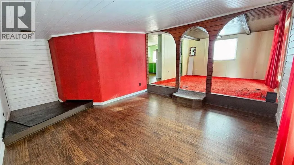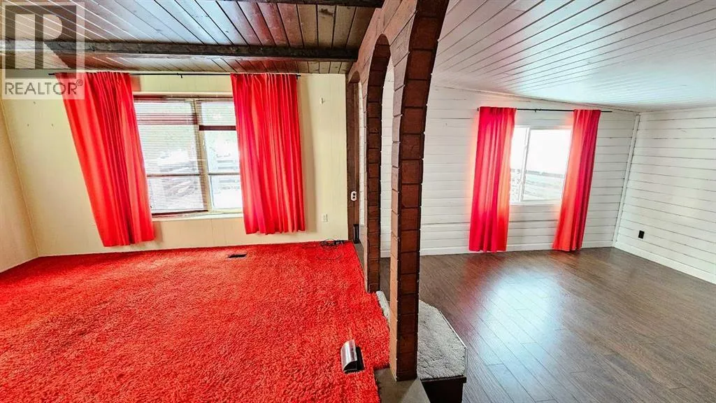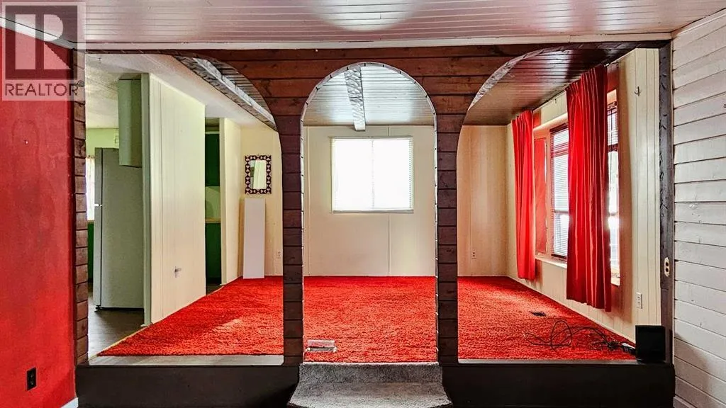 Welcome to This Far-Out Sundre Pad! Groove on over to the NW corner of Sundre, where this throwback beauty is serving up serious 70âs vibes with room to stretch out & live large. This older mobile comes with two generous additions, giving you over 1,100 sq ft of living spaceâbecause even disco legends need space to dance. Inside, youâll find two living rooms, perfect for entertaining, lounging, or setting up a retro rec room. One living room features rich red shag carpet thatâs pure vintage cool, & the primary bedroom carries that same plush, cozy throwback style. Bell bottoms optional, comfort guaranteed. The decent-sized kitchen with eating area is ready for morning coffee, late-night snacks, or a fondue party if the mood strikes. With four bedrooms totalâincluding one currently used as an officeâyouâve got flexibility for family, guests, or a work-from-home setup. A full 4-piece bathroom with laundry keeps things practical while you enjoy the funkier side of life. Step outside & prepare to be impressed: the huge 9,663 sq ft lot is landscaped & framed with privacy trees at the back, creating a peaceful retreat. The property gently slopes down to an alley & greenspace behind, adding extra breathing room & a touch of nature that the deer sure find right-on. Thereâs plenty of space to build a garage, workshop, or dream setup. Parking? No problem, baby. The front parking pad fits up to four vehicles, or your vehicles plus an RVâbecause road trips are always in style. This home is funky, flexible, & full of potential. Whether you lean into the retro charm or add your own modern twist, this Sundre gem is ready for its next groove. âHome Is Where Your Story Begins!â (id:27476)
