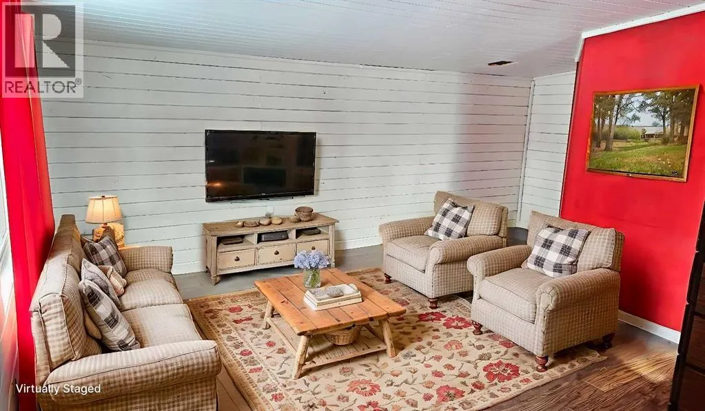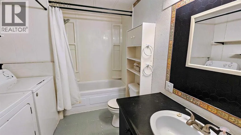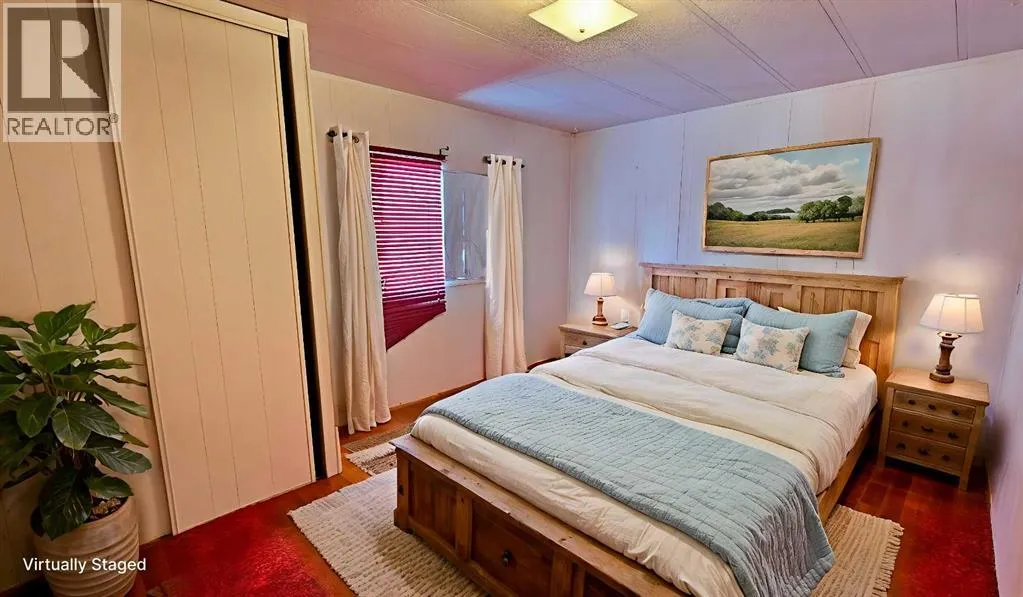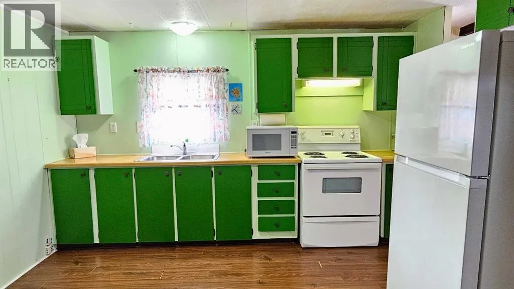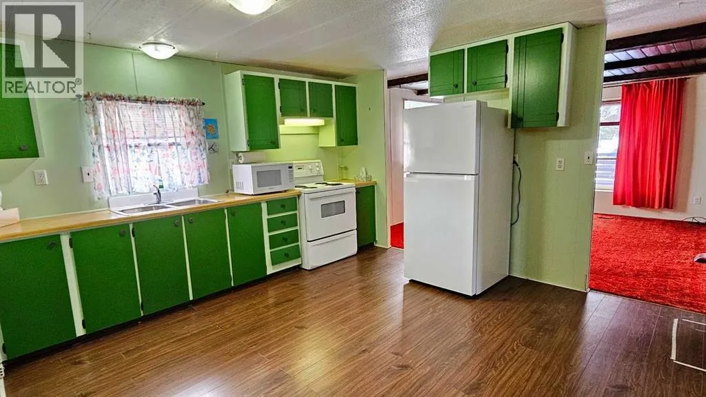 Welcome to This Far-Out Sundre Pad! Groove on over to the NW corner of Sundre, where this throwback beauty is serving up serious 70âs vibes with room to stretch out & live large. This older mobile comes with two generous additions, giving you over 1,100 sq ft of living spaceâbecause even disco legends need space to dance. Inside, youâll find two living rooms, perfect for entertaining, lounging, or setting up a retro rec room. One living room features rich red shag carpet thatâs pure vintage cool, & the primary bedroom carries that same plush, cozy throwback style. Bell bottoms optional, comfort guaranteed. The decent-sized kitchen with eating area is ready for morning coffee, late-night snacks, or a fondue party if the mood strikes. With four bedrooms totalâincluding one currently used as an officeâyouâve got flexibility for family, guests, or a work-from-home setup. A full 4-piece bathroom with laundry keeps things practical while you enjoy the funkier side of life. Step outside & prepare to be impressed: the huge 9,663 sq ft lot is landscaped & framed with privacy trees at the back, creating a peaceful retreat. The property gently slopes down to an alley & greenspace behind, adding extra breathing room & a touch of nature that the deer sure find right-on. Thereâs plenty of space to build a garage, workshop, or dream setup. Parking? No problem, baby. The front parking pad fits up to four vehicles, or your vehicles plus an RVâbecause road trips are always in style. This home is funky, flexible, & full of potential. Whether you lean into the retro charm or add your own modern twist, this Sundre gem is ready for its next groove. âHome Is Where Your Story Begins!â (id:27476)
