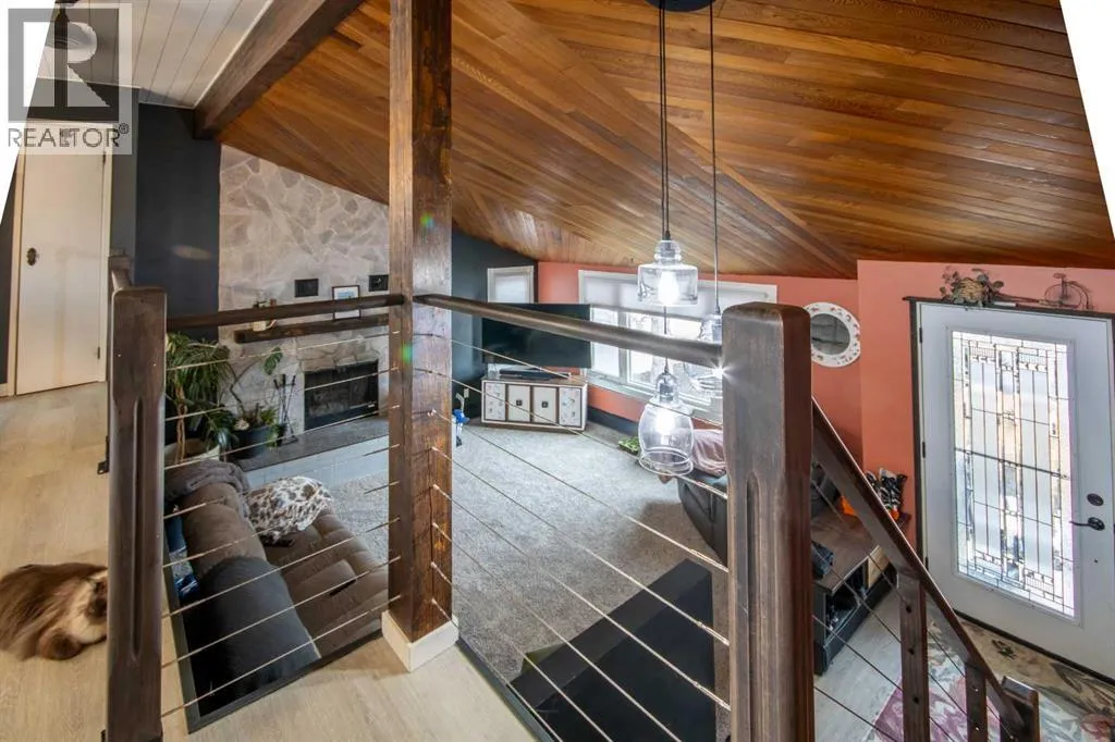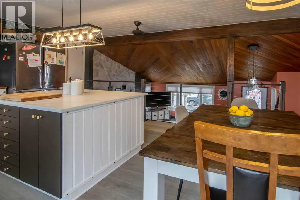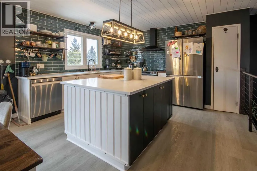 Beautifully updated home in a prime Sundre location! Situated on an amazing garden lot directly across from Purple Park playground and outdoor rink, this property offers the perfect blend of lifestyle and convenience. Extensive upgrades include a fully renovated kitchen with quartz counters, tile backsplash, double oven, glass-top convection cooktop, and new Samsung appliances. The home features new flooring, fresh paint throughout, upgraded bathrooms, new lighting, 6 ceiling fans, and new blinds (blackout in bedrooms). Exterior improvements include new fence, greenhouse, shed, raised garden beds, dog run, landscaping, and tree trimming. Enjoy the private yard with mature, fruit-bearing plants (crabapple, saskatoon, raspberry, blueberry, strawberry) and a well-maintained hot tub with new cover. Recent updates to vinyl windows and Hardie board siding, plus serviced boiler and fireplace, add peace of mind. Move-in ready with exceptional value! (id:27476)