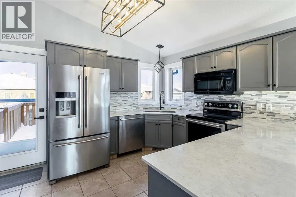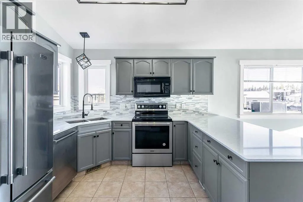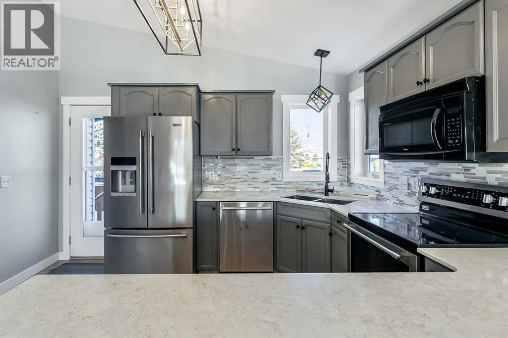 Location, Location, Location. Pride of ownership shines throughout this beautifully renovated 2004 Laebon built bilevel offering 1,216 sq ft plus a bright, fully finished basement, heated garage & central AC.Recent updates include flooring, lighting, fresh paint, quartz countertops, Gemstone exterior lighting, & more. Main floor features a bright, open layout with a spacious primary retreat complete with dual walkin closets.Lower level offers two generous bedrooms, a 4-piece bath, & a welcoming family/rec room with infloor heating, complemented by central air for year round comfort.Step outside to your private backyard oasis, complete with raised garden beds, hot tub, freshly stained dual decks, gas BBQ hookup, shed, & firepit, perfect for relaxing or entertaining.Ideally located across from Sundre river trails in one of Sundreâs most desirable areas. (id:27476)