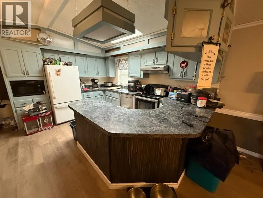 This charming 1991 mobile home offers 1,216 sq ft of comfortable living space, perfect for first-time buyers or anyone seeking an affordable, low-maintenance home.Inside, youâll find three spacious bedrooms, including a primary suite with a 4-piece ensuite, and a second full bathroom for family or guests. The large living room is bright and welcoming, flowing seamlessly into the open kitchen and dining areaâideal for entertaining or family meals. A boot room keeps outdoor gear organized, and the separate laundry area by the back door adds everyday convenience.Step outside to enjoy a covered porch, perfect for morning coffee or evening relaxation. The single, deep garage and ample parking space make this property both functional and versatile. Tucked away in a quiet cul-de-sac, youâll appreciate the peace and privacy this location provides.? Great price, great layout, and a great start! Whether youâre just starting out or looking to downsize, this home checks all the boxes. (id:27476)
