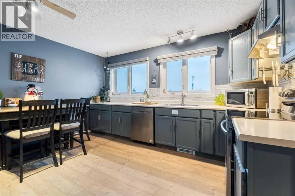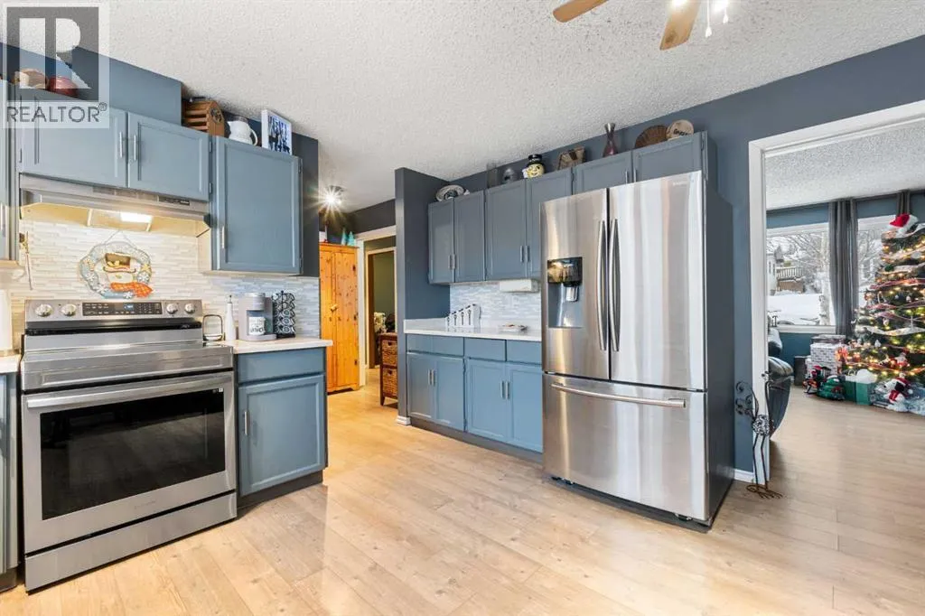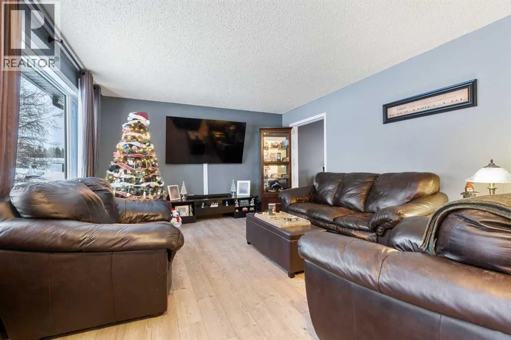 Ideally suited for the outdoor enthusiast, this 1,176 sq. ft. Swan Hills bungalow is perfectly positioned near vast Crown land for easy access to hunting and off-road trails. The home has seen improvements over the last decadeâincluding shingles, windows, siding and a deck refresh. The main floor features new vinyl plank flooring throughout the front-facing living room and into the kitchen, which offers recently painted cabinets and appliances approximately five years old. All three bedrooms are located on the main level, including a primary with a 2-piece ensuite. While the basement is clean and bright, it offers a prime opportunity for sweat equity. It currently features a large storage room, a guest bonus area, and a future third bathroom that is already roughed-in for a vanity and tub (toilet is functional already). Washer and dryer only a few years old as well as the hot water tank in 2024. Complete with a detached garage, storage shed, and a hot tub, this home is a solid, well-maintained option for those looking to balance modern updates with the chance to customize their own space. (id:27476)