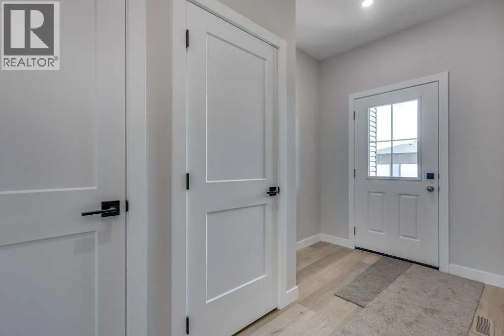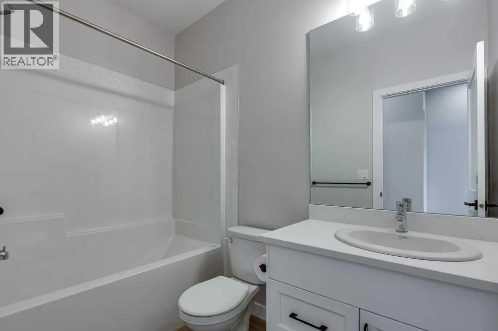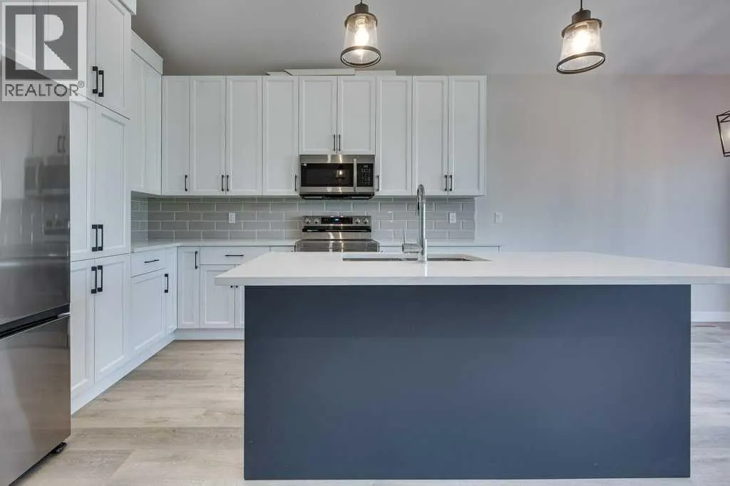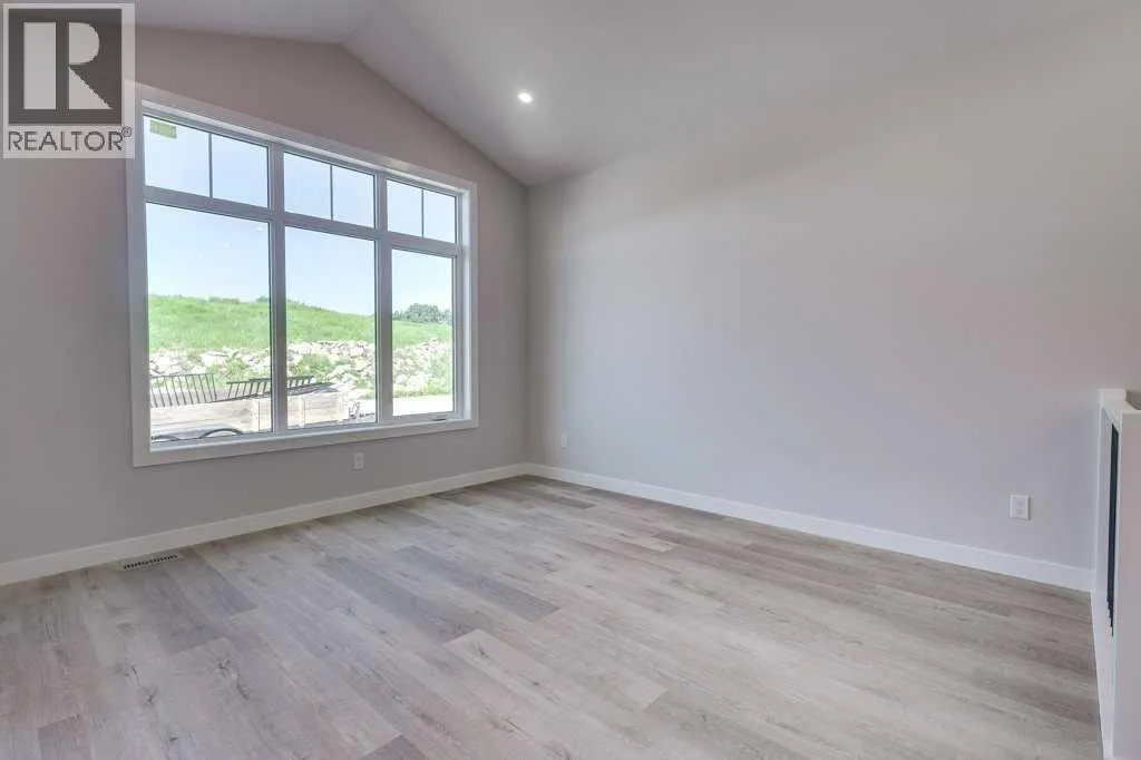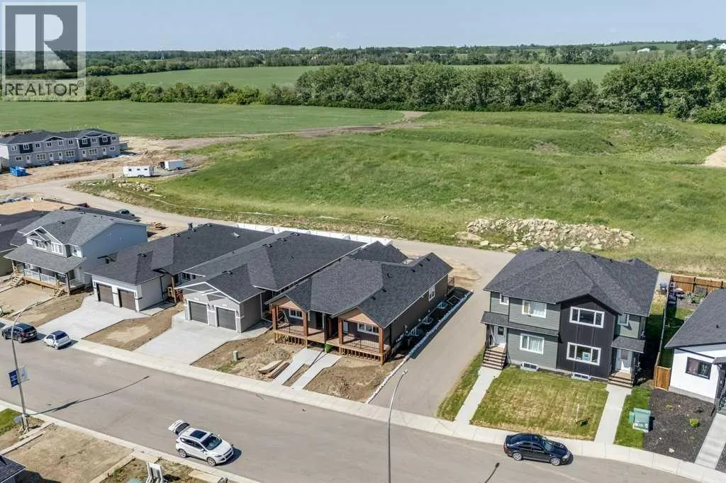 Immediate possession, this brand new bungalow floorplan by L&S Developments is perfect for a starter home or empty nester. Imagine having your morning coffee on the 20x8 covered front porch. Enter into good sized front foyer, with warm toned vinyl plank flooring leading to open floorplan. The vaulted ceilings and large windows make this home super bright and appealing. Metal spindle half wall for stairwell. Functional kitchen with white shaker cabinets, & feature navy centre island eating bar, quartz countertops, cabinet pantry, garbage/recycling pullouts, stainless steel appliances, chrome fixtures. Sliding door off of dining room to 7x8 back deck. Primary bedroom has room for king sized bed with black ceiling fan. Secondary bedroom is good sized for guests or office, carpet in both bedrooms. 4pce bathroom & handy main floor laundry. Basement is undeveloped but potential for family room, exercise area, bedroom and roughed in for another bathroom. Front sod and concrete sidewalk, backyard is black dirt leveled to grade. This home is located in Grayhawk on the north west side of Sylvan Lake. With easy access to highway and close proximity to the lake, golf course and all town amenities this up and coming subdivision is sure to meet all your needs. Future commercial and school sites as well as walking paths, parks playgrounds and pond. An abundance of wildlife to watch and a progressive new neighborhood to enjoy. GST included with rebate to builder. Taxes to be assessed. (id:27476)
