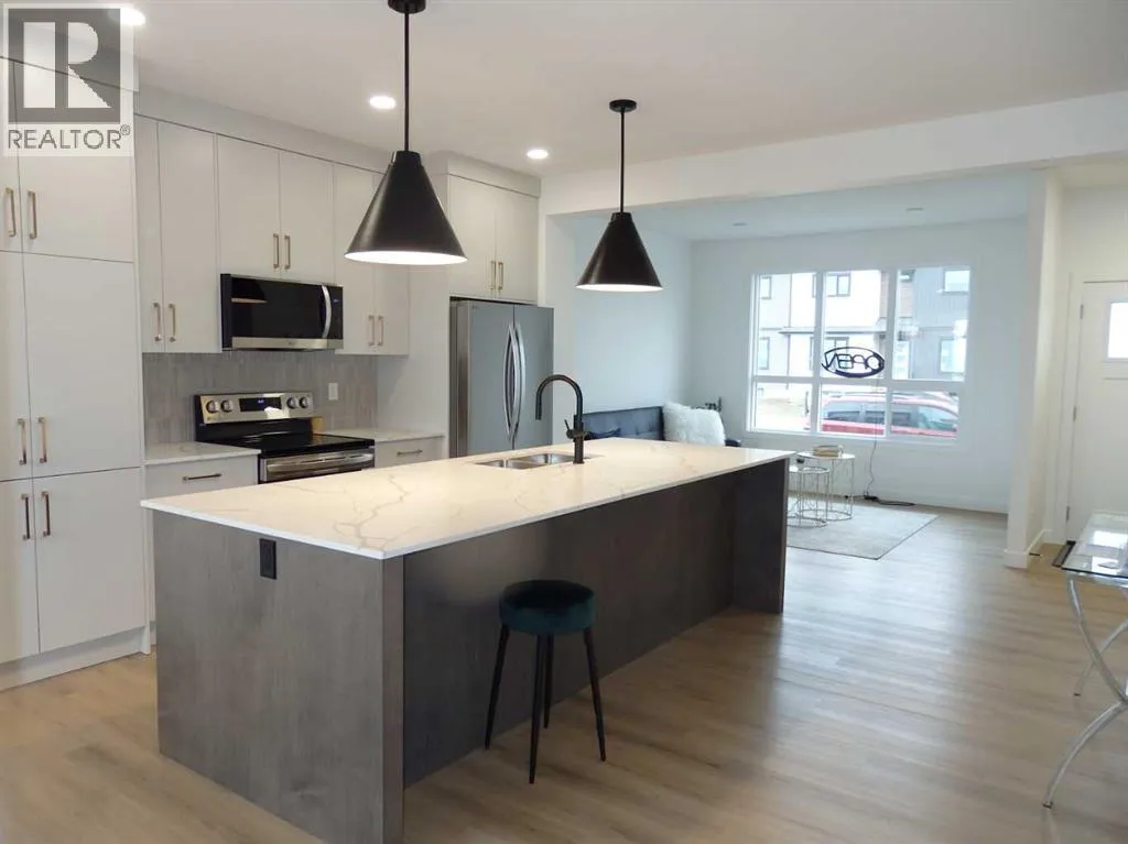 NO CONDO FEES! Great Location!!! Brand New, Stylish, modern 2 Storey Townhomes in the new area of Iron Gate. Say Goodbye to the stress of older homes & get Alberta New Home Warranty plus additional builder warranty by winner of the 2024 Builder of year award, Asset Builders Corp. Step onto your 7'x7' front deck, into your spacious entry & you are greeted by a bright & spacious open layout on this main floor. Check out all the natural sunlight through these large energy efficient triple pane windows & you will love this amazing vinyl plank flooring throughout w/cushy carpet in the bedrooms upstairs. The kitchen is the heart of the home, with a large island w/extended Quartz countertops (perfect for your stools, kids homework sessions, or long chats while cooking), built in pantry area, & 4 appliances included. Dining room will fit your large tables & extra family members. The favorite space of all parents out there is this back entry w/half bath @ the back door that leads to your 10'6"x10' west facing back deck w/aluminum railing & sunny west facing backyard for all those sun worshippers out there, with fence between neighbors (done down sides with back section open) with 2 car parking off paved back lane. Upstairs you will find the handy laundry room, 2 good sized bedrooms, a full main bath + a Primary bedroom that features a large walk in closet & full 4 piece ensuite. Extra bonus is the huge hallway closets that make the best use of space! Downstairs is open for your inspiration, planned for future bedroom, bath & family room w/plenty of natural light & extra storage. GST included w/rebate to builder. This new neighborhood is close to shopping, food & highway. Interior pictures are of a previous unit with similar colors & exact same layout. A single detached garage can be built on this property in the future subject to town approval. (id:27476)