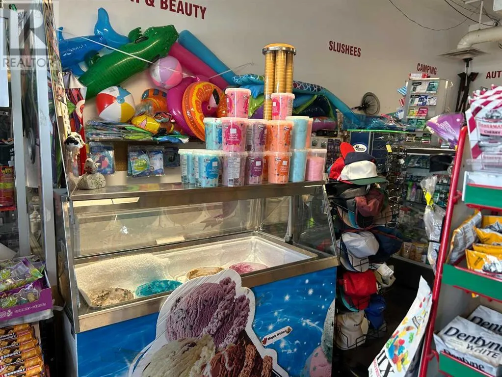 This is a rare chance to own a well-established convenience store located in one of Sylvan Lakeâs busiest and most desirable areasâLakeshore Driveâjust steps from the beach. With 1,165 sq. ft. of space, this turnkey business offers exceptional visibility, high foot traffic, and ample parking, drawing a steady stream of customers year-round.The store offers a comprehensive selection of products, including dairy, snacks, general household necessities, beachwear, and fishing tackle. It also generates additional revenue from tobacco and lottery sales, along with a popular fresh coffee station. A dedicated storage area in the rear provides convenient space for inventory management.This is an excellent opportunity for an owner-operator looking to step into a profitable, well-run operation with an established customer base. The sale includes all equipment and inventory (negotiable), making it a truly turnkey purchase.The lease is highly competitive, with a base rent of $2,293.93 per month, plus $1,165.00 NNN and GST, and is transferable. Current lease runs until August 1, 2027.The current owner is retiring, creating an ideal opportunity for a motivated buyer to take over a thriving business in a premium location. (id:27476)