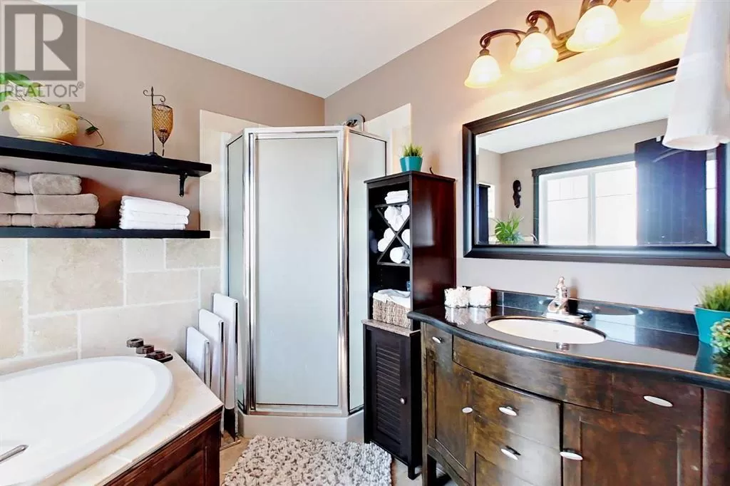 Looking for upgraded living at the lake? This well loved 5 bedroom modified bi-level is packed with features that make everyday living both comfortable and convenient. Here you can enjoy a fully finished home with modern extras like A/C, underfloor heat , water softner, steam shower and granite counter tops! The family friendly layout allows for two good sized rooms on the main level plus 2 more downstairs, one of which is fully soundproof and could easily be used as a media room that would be perfect for movie marathons. The Primary suite is only a few steps up and boasts a walk in closet and ensuite with soaker tub while the large yard gives plenty of space for the kids, pets or summer gatherings. The heated triple car garage gives extra room for toys, vehicles and work space . All this in a family-orientated neighborhood that is close to Sylvan's many amenities! (id:27476)