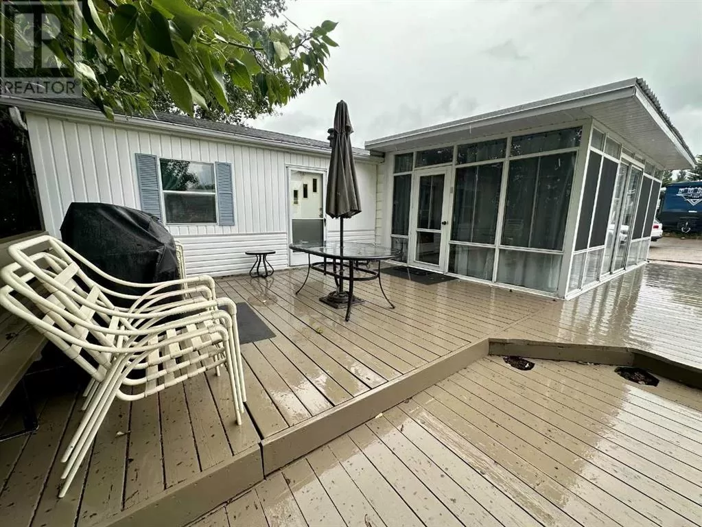 PRICE REDUCED! This is your chance to own an affordable recreational property in Sylvan Lake. The 41â x 66â titled lot includes a one bedroom + den 40â x 12â General Coach Canada Algonquin Park Model Trailer with beautiful oak package, large 4-pc bath, full-sized fridge & 4 burner stove; completely furnished. Attached is a 12â x 18â aluminum sunroom for additional living and sleeping space. Large side & rear deck, 8â x 10â garden shed, firepit and 3-car paved driveway. Condo fees of $3,300/year include management, reserve fund contribution, power, water, sewer, garbage & lawn mowing. Enjoy the beautiful outdoor heated pool & hot tub, playground, pickleball/basketball court, shower facilities & coin laundry. Fully equipped clubhouse for family functions and social events. Activities for families (ex. Halloween in August, Canada Day) and adults (ex. cards, craft nights). Includes one RV/boat storage space. Pets welcome, fenced dog park on site. Open from April 1 to October 31 (weather permitting), Points West Resort is a gated three-season community on the outskirts of Sylvan Lake; a short walk to the golf course, lake and amenities, but away from the bustle of downtown. (id:27476)