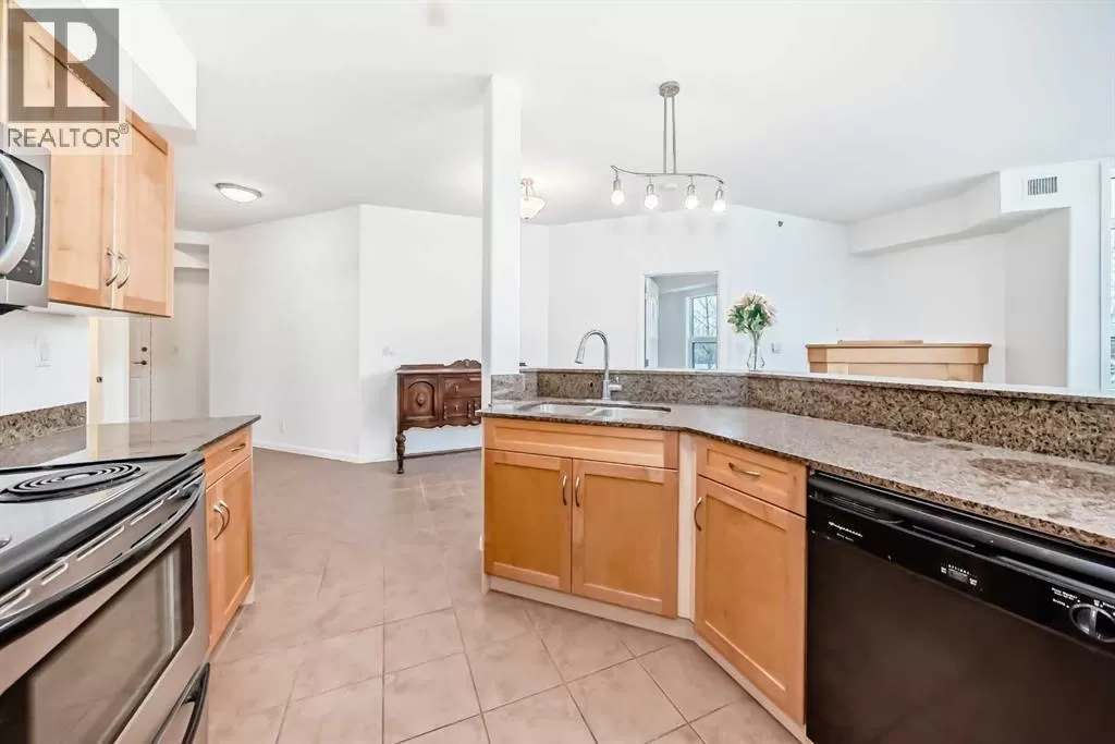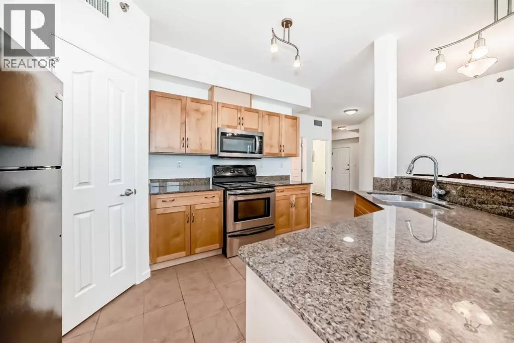 This fantastic 3rd-floor unit offers stunning views of both the golf course and the lake, making it a perfect place to relax and enjoy your surroundings. The unit features 2 spacious bedrooms and 2 full bathrooms, including a well-sized ensuite with both a tub and shower combo. The kitchen is beautifully designed with quartz countertops and natural maple cabinets, creating a warm, inviting atmosphere that flows into the open living space. Large windows in the living room allow for an abundance of natural light. Convenience is key with in-suite laundry and two designated parking stalls. Step out onto your balcony to enjoy breathtaking views of the lake or the lush golf course. The building boasts impressive amenities, including a car wash bay, extra storage, a sauna, hot tub, fitness center, gazebo, and an outdoor entertainment area. There's also a party room, theater room, and lounge for relaxation and socializing. This unit is ideally located just a short walk from restaurants, walking trails, the lake, the golf and country club, shopping, and the main marina. It truly is a rare find, especially with the end-unit location and its unparalleled views. A true gem in a prime location! (id:27476)