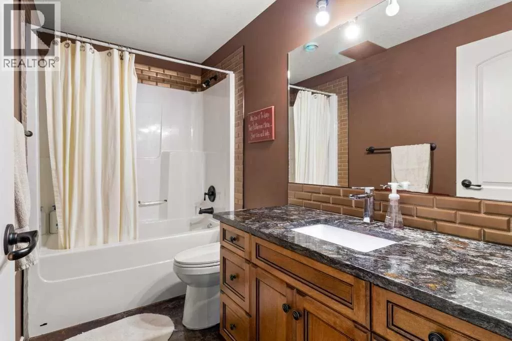 ***ABSOLUTELY STUNNING WALKOUT BUNGALOW WITH ATTACHED GARAGE, BACKING ONTO HUGE GREENSPACE IN PRESTIGIOUS FIELDSTONE LANDING***. This 5 bed/3 bath property is in a spectacular location with a quiet cul-de-sac, & no thru road...absolutely one of the nicest lots in Sylvan Lake. This 1668 sqft bungalow plus fully finished walkout basement, shows beautifully with every area built with the highest quality including granite/quartz throughout all counter tops in the house! The main level boasts a fantastic living room with vaulted ceilings, gas fireplace, large windows throughout, & engineered hardwood flooring/tile. The beautiful kitchen boasts loads of custom cabinets, quartz counter tops, tiled backsplash, stainless steel appliances, & full pantry. Breakfast nook and formal dining room compliment this family home. 3 beds/2 baths are on the main, including the large master with 5 piece ensuite (his and her sinks and separate soaker tub and shower), & walk in closet. Downstairs is fully finished with 2 more beds, 4 piece bathroom, large living room with wet bar, free standing wood stove, built in shelving, & games room with tons of storage. Garage is finished and perfect for all your toys. Head outside to an immaculate 10 out of 10 yard, including full curbing, massive maintenance free deck, stamped concrete fire pit area, private maintenance free lower level sun deck with opening storage benches, large matching shed, and all looking over a massive greenspace with no neighbours behind! Open the back gate and enjoy the ice rink and toboggan hill in the winter or throw a ball around with the kids/pets in the summer. Close to all amenities, this property is a must see! (id:27476)