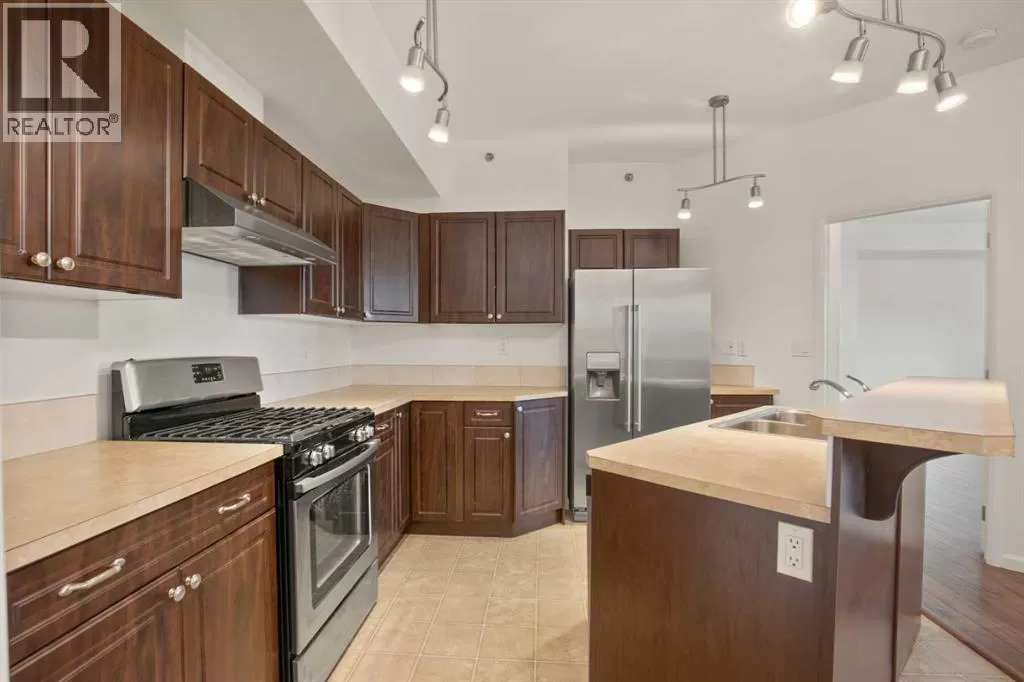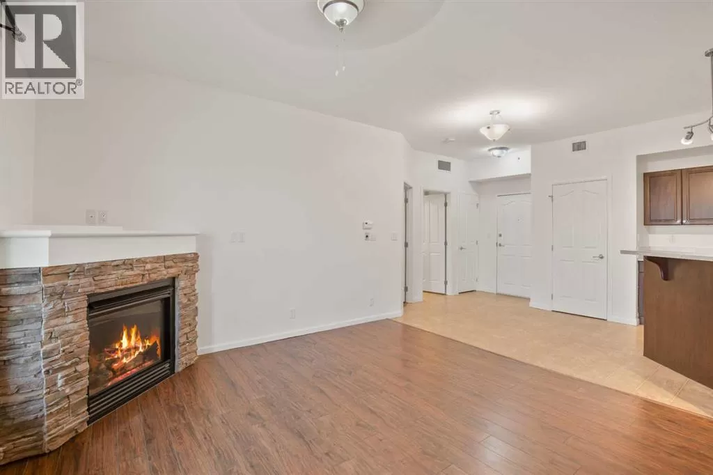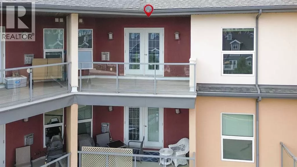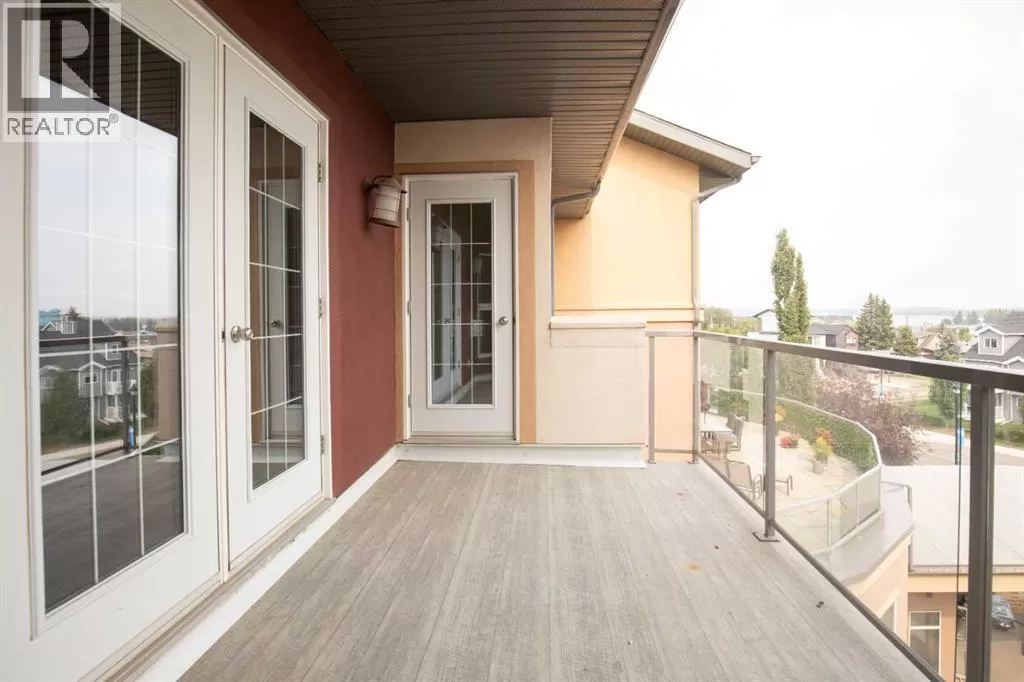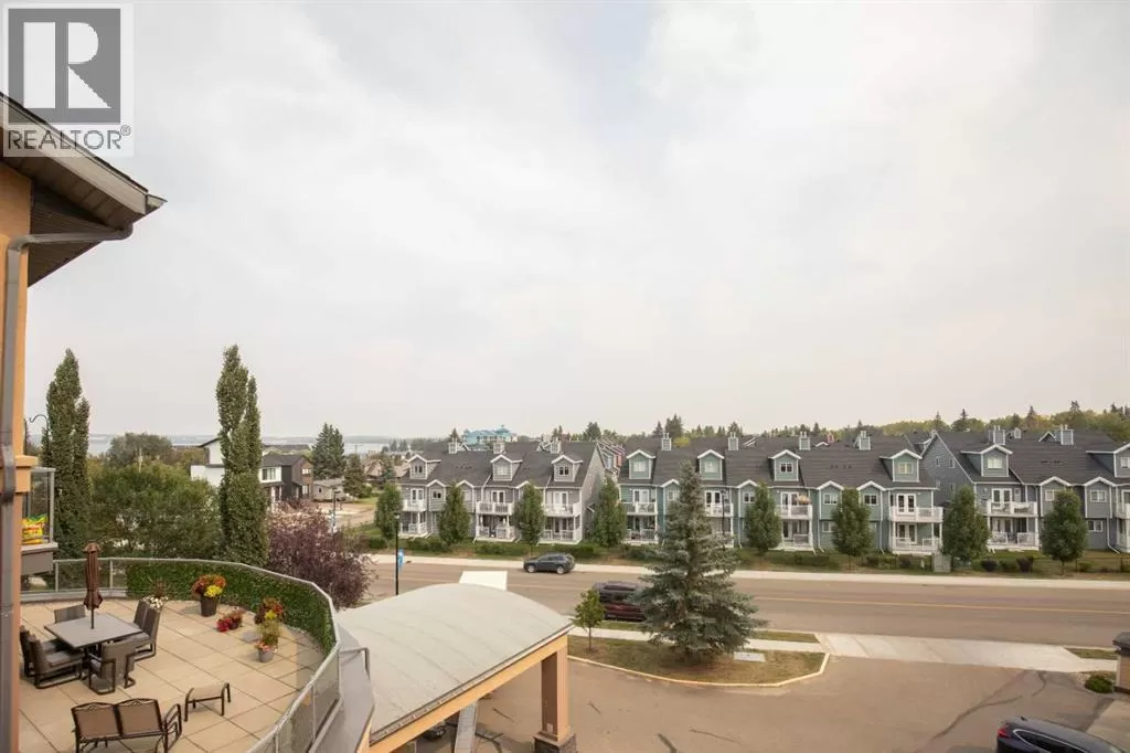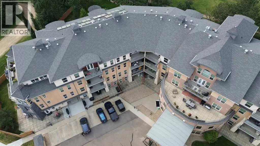 TOP FLOOR CONDO WITH UNDERGROUND PARKING! You'll love this two bedroom, two bathroom unit on the top floor of the upscale Fairway Estates Building, with a great location to the lake. This unit has a view of the lake from the balcony. The unit has a lovely open floor plan with the eat-in kitchen and living room open to each other. The kitchen has extensive cabinet space, gas stove, and kitchen island. The living room has large windows and a fireplace for those cool evenings. The owner's suite is on one end of the unit and has a four piece ensuite. The secondary bedroom/office is at the other side of the unit, with another full bathroom. There's in suite laundry for ease of use. The balcony can fit your patio set and faces the lake. Enjoy parking your vehicle in the heated underground parking spot, which is easy to access. Enjoy the many amenities of this building, including fitness centre, hot tub, theatre room and games room. You're within walking distance to the coffee shops and amenities at the heartbeat of Sylvan Lake. Immediate possession is available. (id:27476)
