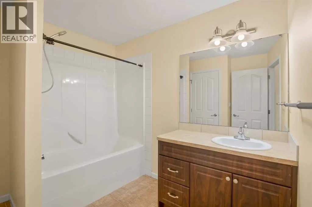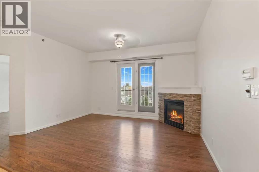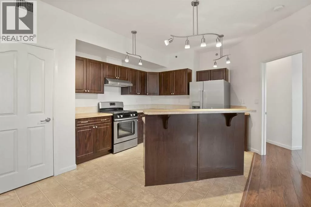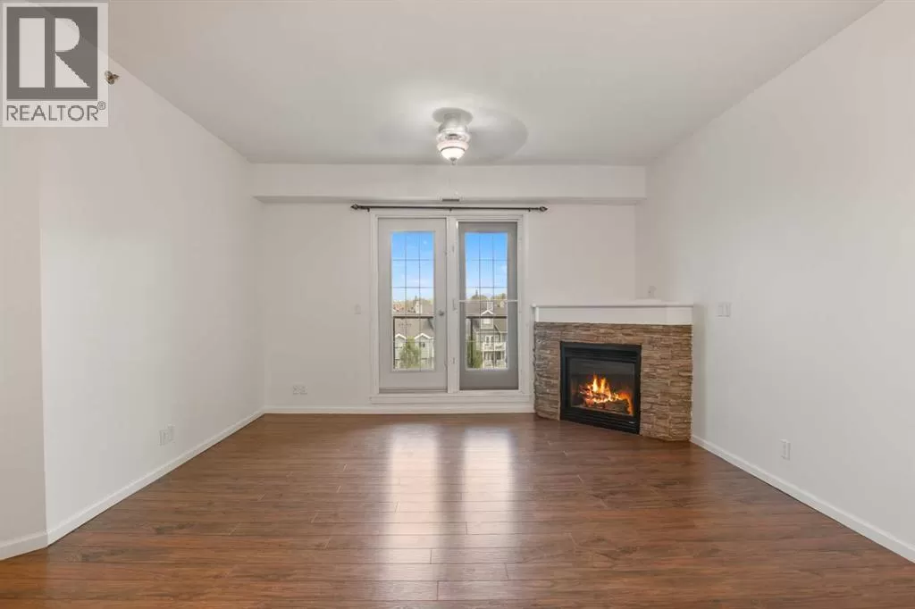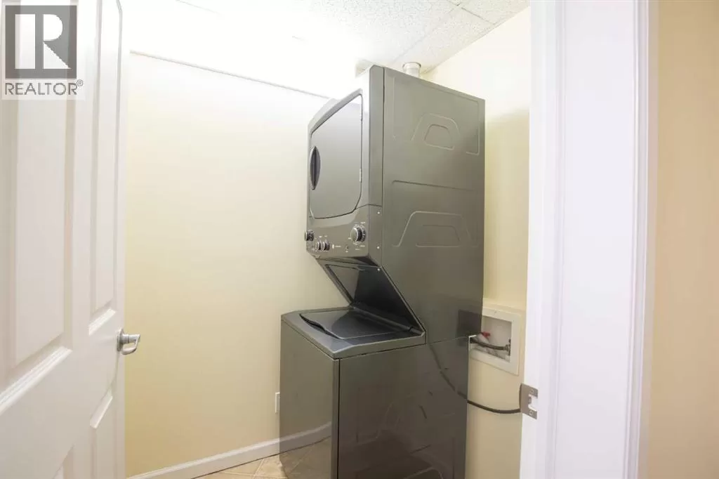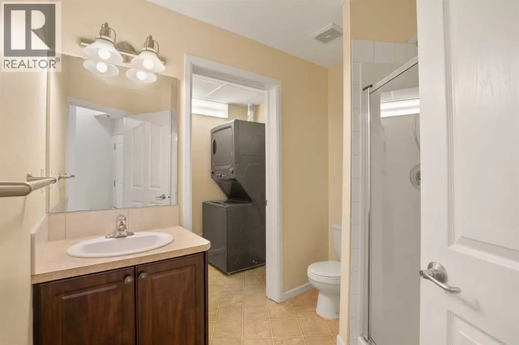 TOP FLOOR CONDO WITH UNDERGROUND PARKING! You'll love this two bedroom, two bathroom unit on the top floor of the upscale Fairway Estates Building, with a great location to the lake. This unit has a view of the lake from the balcony. The unit has a lovely open floor plan with the eat-in kitchen and living room open to each other. The kitchen has extensive cabinet space, gas stove, and kitchen island. The living room has large windows and a fireplace for those cool evenings. The owner's suite is on one end of the unit and has a four piece ensuite. The secondary bedroom/office is at the other side of the unit, with another full bathroom. There's in suite laundry for ease of use. The balcony can fit your patio set and faces the lake. Enjoy parking your vehicle in the heated underground parking spot, which is easy to access. Enjoy the many amenities of this building, including fitness centre, hot tub, theatre room and games room. You're within walking distance to the coffee shops and amenities at the heartbeat of Sylvan Lake. Immediate possession is available. (id:27476)