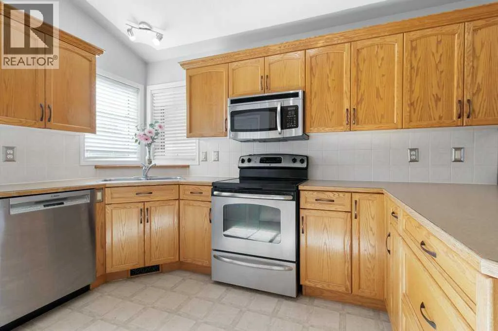 Located in the charming town of Sylvan Lake, this 1,004 sq. ft. bi-level home offers 4 bedrooms and 2 bathrooms with a bright, open concept layout that seamlessly connects the kitchen, dining, and living areas. The main kitchen is full-sized, featuring ample counter space, generous storage, and direct access to the spacious back deck - an inviting seasonal extension of the home, perfect for family gatherings or summer barbeques. The main floor also includes 2 spacious bedrooms, a full bathroom, and full size laundry for added convenience. The lower level, with its own separate entrance, features a generous sized kitchen with a full sized fridge and stove, 2 bedrooms, a full bathroom, and it's own laundry facilities. A brand new corner fireplace adds warmth and ambiance, while walk out access leads to ground level patio and small yard, creating a private outdoor space. This home has been thoughtfully updated and maintained: the entire house has been freshly painted, the basement fully renovated with new lino, carpet, and underlay, and every vent professionally cleaned. Both hot water heaters were replaced in April 2025, the furnace has been maintained and is in excellent working order, and the sump pump is brand new. The property is also wired for central vacuum, with hose attachments included (just need a canister), and the back deck was re-stained this summer. At the back of the property, parking is available for 3 full size vehicles, and the home overlooks an open green space that enhances privacy and relaxation. This well-maintained property is move-in ready and ideal for families seeking a versatile living arrangement. (id:27476)