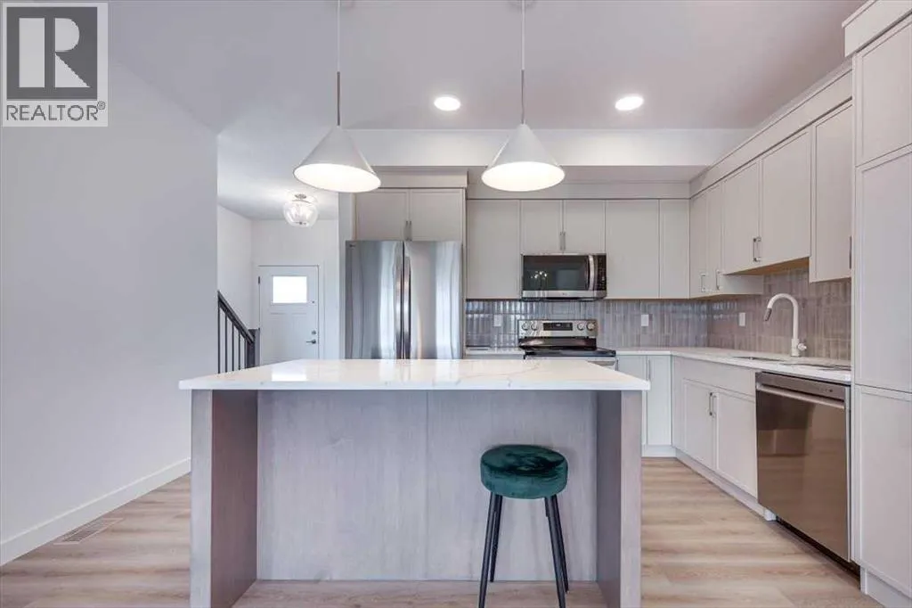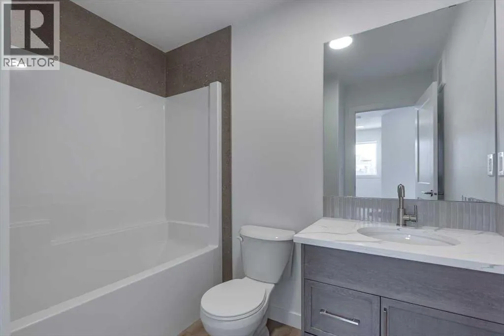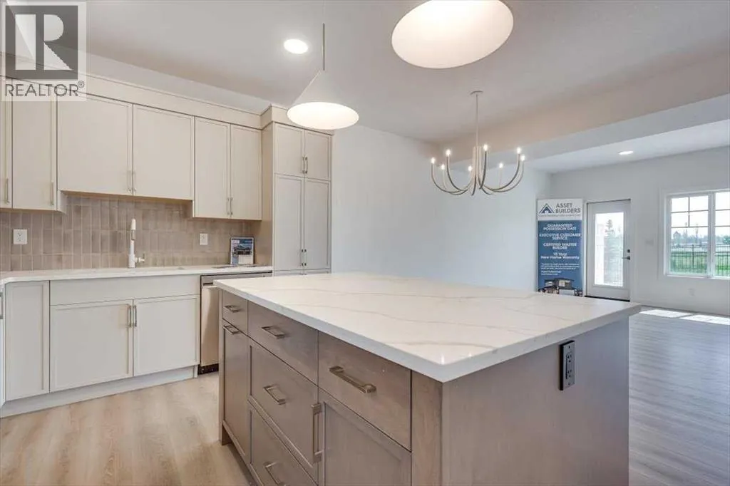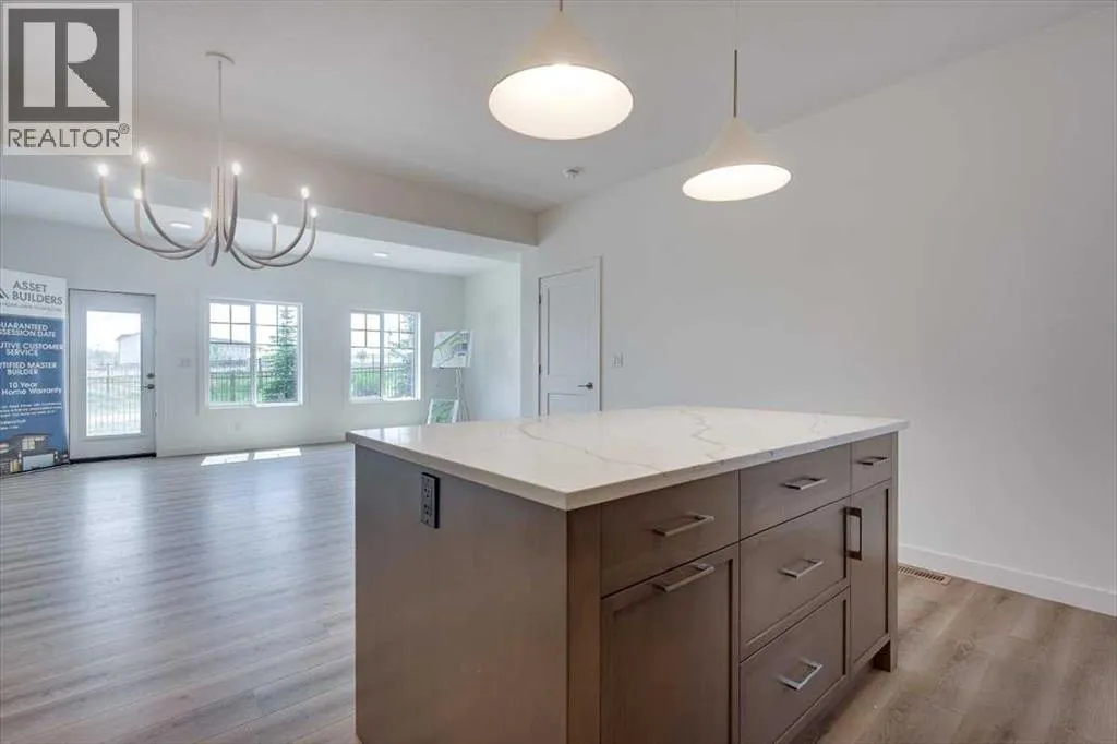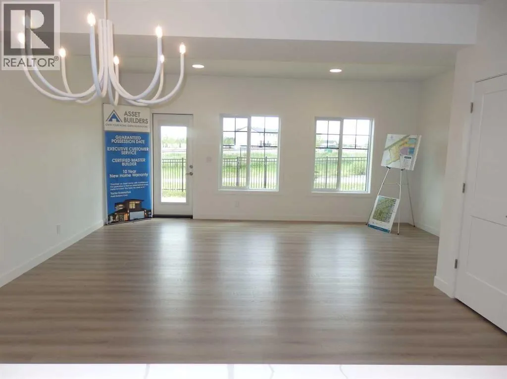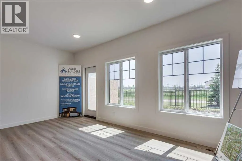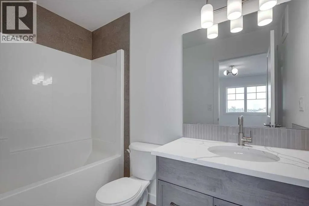 Now Included !! Amazing 3 bedroom 2 1/2 bathroom two storey 1/2 duplex with single attached garage in gorgeous Sixty West subdivision. As you enter the main floor you'll be impressed with the large front entry way with separate mud room, a two piece bathroom + man door for garage access. The open kitchen/living room/dining room design gives this home a spacious feel with plenty of natural light. Kitchen is finished with quartz counter tops, large centre island, pantry, stainless steel stove/fridge/dishwasher/OTR microwave. Just off the dining room a garden door leads you to the sunny south facing 10x12 rear deck with aluminum railing. Upstairs you will find three bedrooms, an upper floor laundry, a 4 piece main bathroom. The Primary bedroom includes a 4 piece ensuite and large walk in closet. Other great features include: 10 year new home warranty, front & back Sod, fully Fenced, Blinds, HRV, Triple Pane Windows, Quartz counter tops in all bathrooms, roughed in central vac, precast front concrete steps. Seller will develop the basement to add additional bedroom, family room and 4 piece bathroom for approx $36400 plus GST. Fence to be completed by mid November & sod in the Spring 2026 (id:27476)