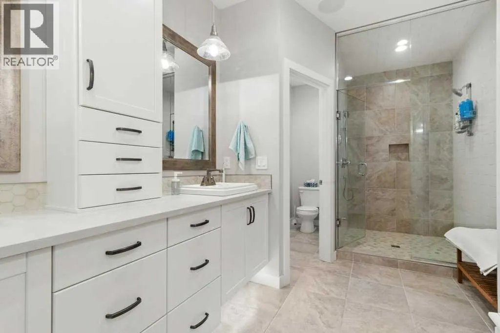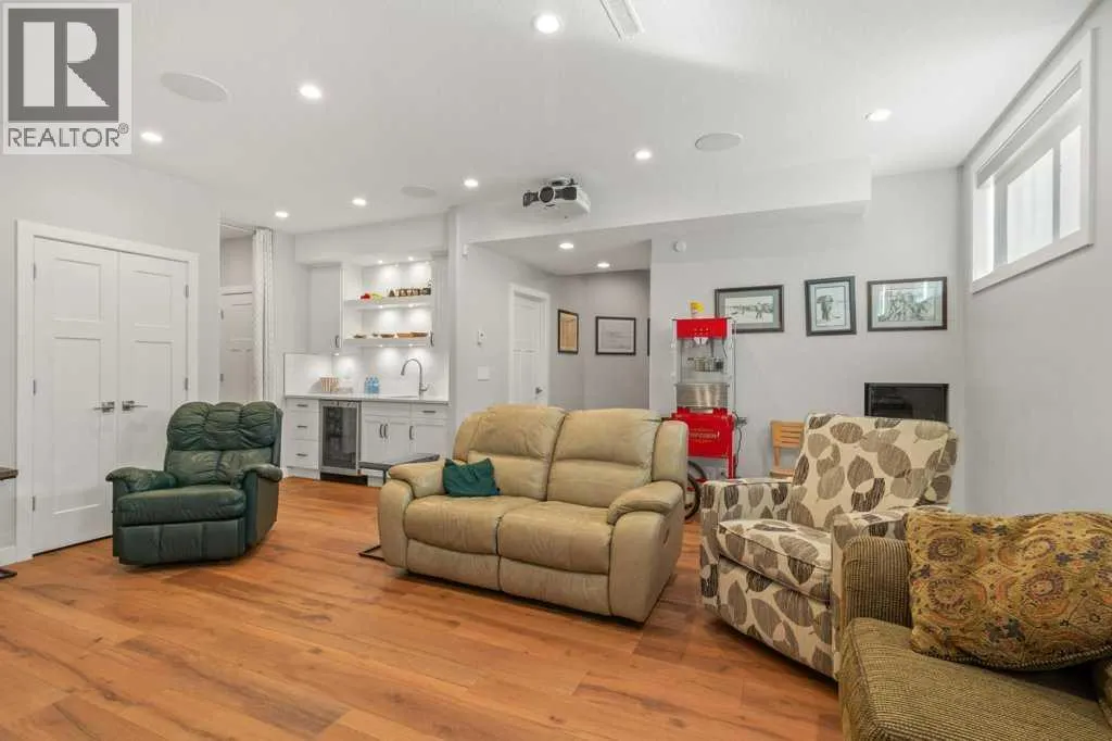 ***EXCEPTIONAL 10/10 FULLY FINISHED, TWO STOREY HOME WITH FULLY FINISHED BASEMENT, BACKING ON TO GREENSPACE!*** Presenting a flawless home in the picturesque Crestview community of Sylvan Lakeâthis 2496sqft (plus basement), 4 bedroom, 4 bathroom home is fully upgraded, and meticulously finished, leaving no stone unturned. Pride of ownership is very evident in this perfectly kept home, like new condition. Step into a large entryway that leads to a modern, open-concept design with rich vinyl floors covered in tons of natural light from large windows, overloooking the rear greenspace. The home's neutral color palette and high-end finishes enhance its appeal. The chefâs kitchen is a standout feature, showcasing an abundance of cabinets and counter space, a stylish tiled backsplash, and elegant quartz countertops. It is equipped with stainless steel appliances with gas stove, an under-mount sink, and a large walk-through butler's pantry with tons of storage space and extra counters. The large island with eat up bar is perfect for casual dining and socializing. The adjacent living room, complete with a stunning gas fireplace with wrap around mantle, shelving, and full stone wall - extends up to the oversized, open beam ceiling with speaker system throughout, flowing seamlessly into the expansive dining area. The main level also includes a well-appointed mudroom, extra storage, as well as a conveniently located bathroom. Upstairs, youâll find 3 spacious bedrooms, including a luxurious master suite. The master features a stunning 4-piece ensuite with heated tile floor, quartz countertops, a custom tiled steam shower, and an extensive walk-in closet. The upper level also includes a 5-piece bathroom with double sinks and quartz countertops, 2 spacious bedrooms with built in bench with storage, perfect games/great room, and large laundry room. The fully finished basement offers a perfect retreat with a generous living room/media room, wet bar, an additional oversized bedroo m, 4 piece bathroom, and a gorgeous 2 tiered bench sauna. Extra features include In-floor heat, speakers throughout with multiple zone sounds system, extensive lighting controls in each room with fully integrated smart security features, newer hot water tank, water softener, HRV, A/C, mirrored finish tint on south windows, and more! The oversized fully finished, attached garage is heated, central vac, sink, and epoxy finished floor - perfect for all your toys. Head out back and enjoy the greenspace view with huge maintenance free partially covered deck with privacy shades, electric heaters, and beautiful lighting - overlooking the fully finished yard with vinyl fence, planters, and tons of storage. Located close to walking trails, parks, and schools, this home perfectly combines luxury and convenience. Donât miss the chance to make this exceptional property your own. (id:27476)