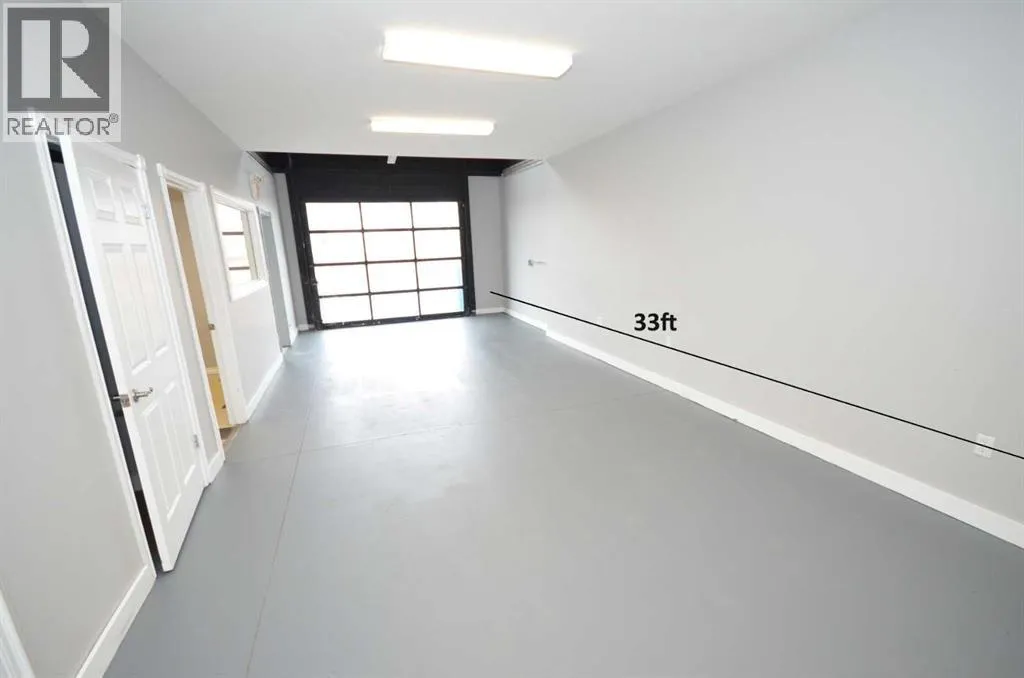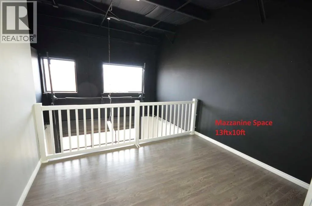 Now available for lease âFront of unit only. this clean and functional 1,430 sq ft industrial bay offers exceptional versatility for trades, service, or light industrial use. The main floor (792 sq ft) features a bright front entry/reception area, private office with two bathrooms, and a spacious 14.5â x 32â shop bay with a 10â x 8â overhead door. A mezzanine level (~640 sq ft) provides additional office, storage, and staff space, complete with a kitchenette, mechanical room, and open workspace.Located in Sylvan Lakeâs Cuendent Industrial Park, just minutes from Highway 20 and town amenities, this bay provides easy access, paved parking, and flexible space suitable for a wide range of businesses.Total area: ~1,430 sq ft (main + mezzanine). 10â x 8â overhead bay door + man door. Two bathrooms. Kitchenette and storage mezzanine. 9â ceiling height in shop. Zoned for light industrial/commercial use. (id:27476)