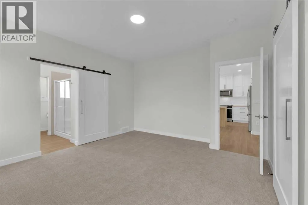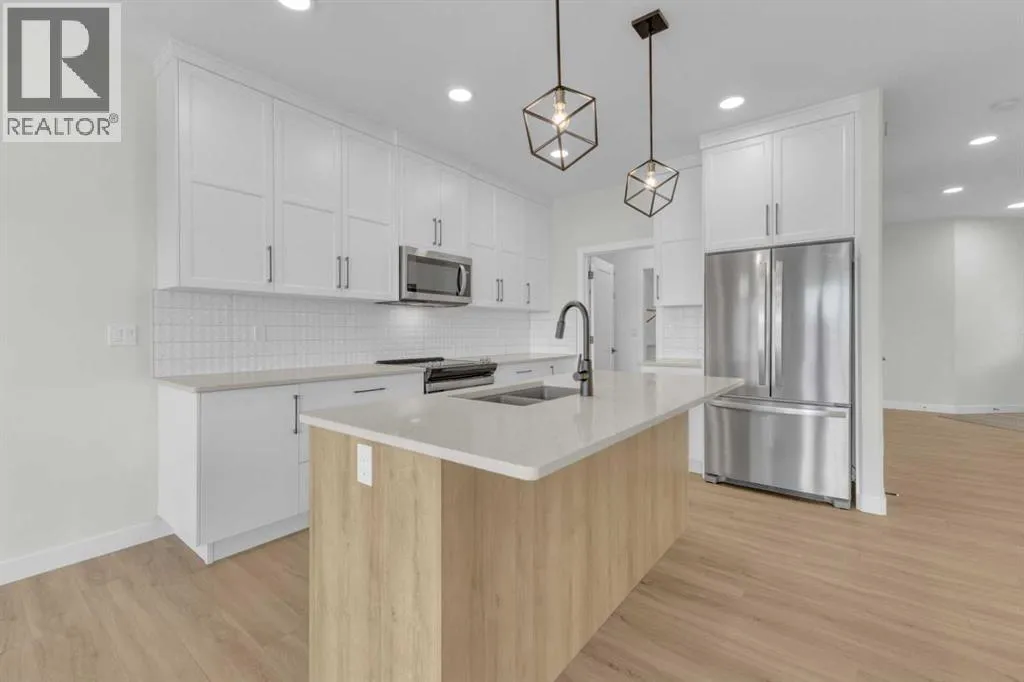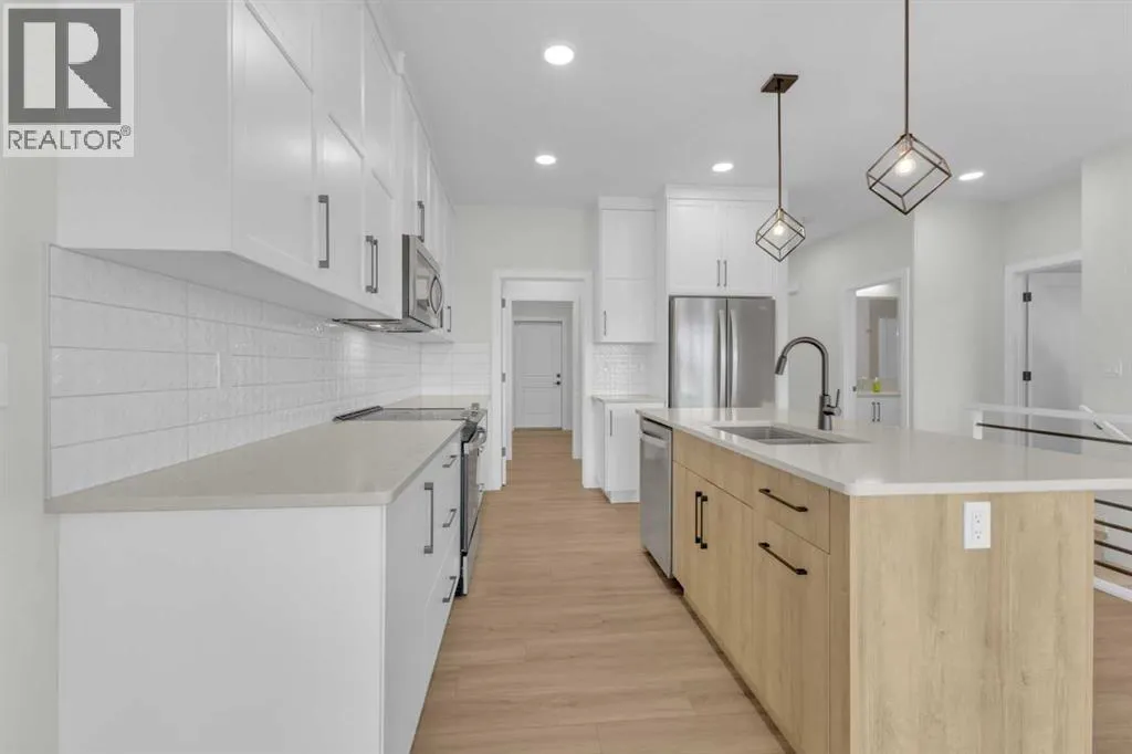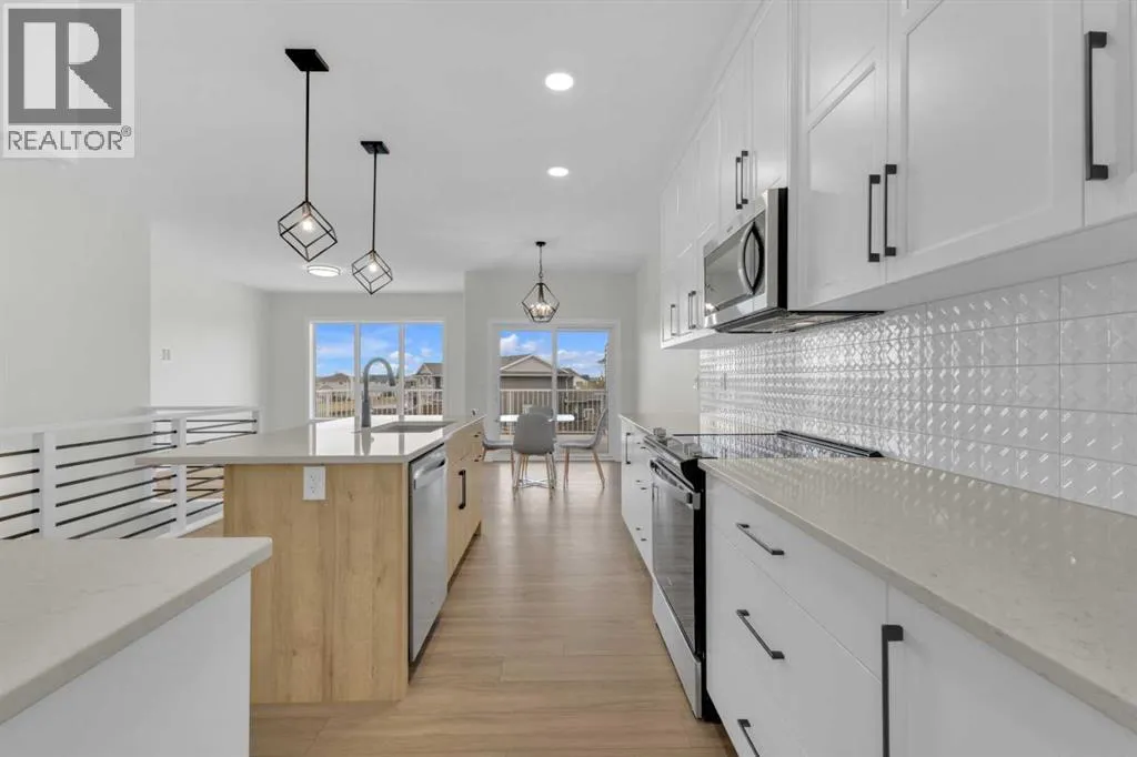 Perfectly positioned on an expansive 10,000 sq. ft. lot, this property offers endless outdoor possibilities. Whether you envision a detached garage, RV parking, lush gardens, or even your own personal putting green, this home provides the spaceâand the builderâto make it happen.With 1,300 sq. ft. of thoughtfully designed main-floor living and a framed-in walkout basement ready for your custom finishing, this home blends elegance with practicality. A welcoming composite front porch sets the tone for the quality craftsmanship throughout.Inside, a bright second bedroom sits just off the front entrance, ideal for a guest room, home office, or cozy den. The spacious entryway connects to the attached garage, a convenient main-floor laundry room, and a walk-through pantry that flows seamlessly into the open-concept kitchen and living area.The kitchen is a true showpieceâfeaturing quartz countertops, stainless steel appliances, soft-close cabinetry, and ceiling-height cupboards. A large central island provides both prep space and casual seating, while the adjoining dining area opens to a private dura-deck complete with a privacy wall and gas line for effortless outdoor entertaining.The living room is bright and inviting, with oversized windows overlooking the expansive backyard. Pre-wired for a wall-mounted TV, this space is perfect for relaxing or hosting guests.The primary suite offers a peaceful retreat, large enough for a king-size bed and full furnishings. The spa-inspired ensuite features dual sinks, a 4-foot shower with a built-in bench, and sliding barn doors leading to a spacious walk-in closet. A second full bathroom with a tub/shower combo ensures comfort and convenience for family or guests.Additional highlights include triple-pane windows for superior energy efficiency, roughed-in in-floor heating, a framed-in walkout basement with a painted floor, maintenance-free vinyl fencing, RV sewer hookup, dura-decking, and enhanced sound insulation in the pa rty wall for added privacy.With premium finishes, a smart layout, and a truly generous lot, this exceptional home delivers comfort, craftsmanship, and lifestyleâall within a welcoming 45+ adult-living community. (id:27476)