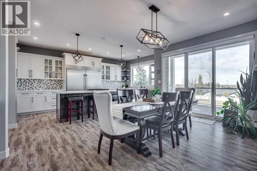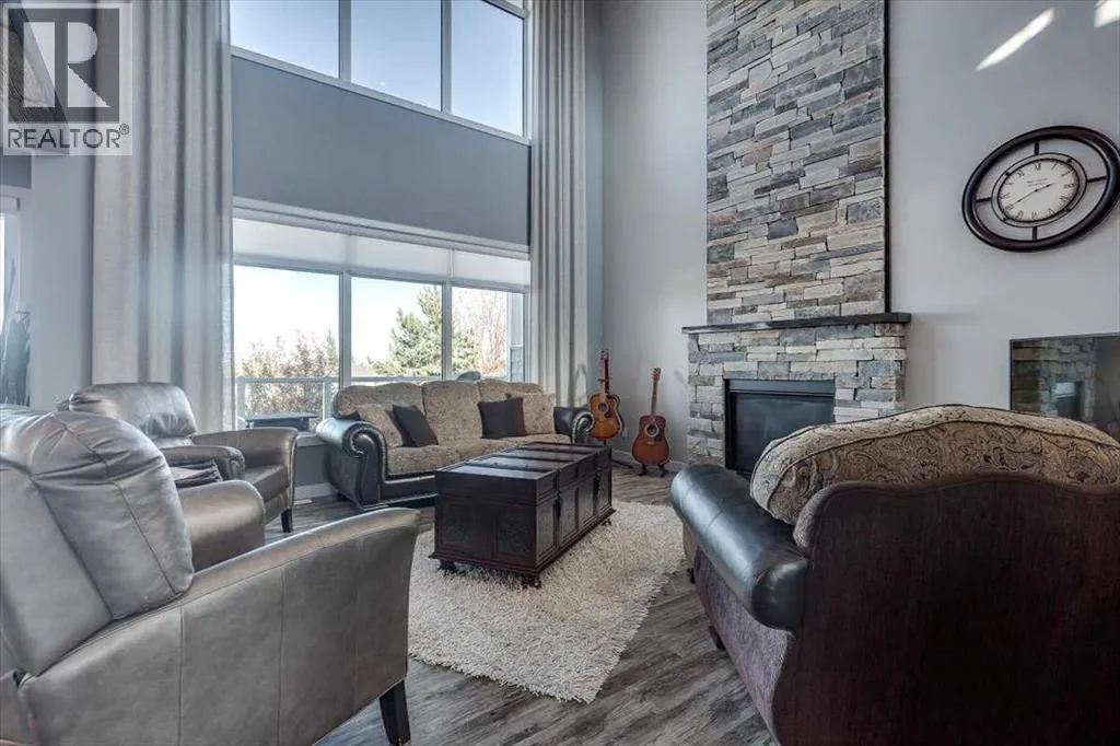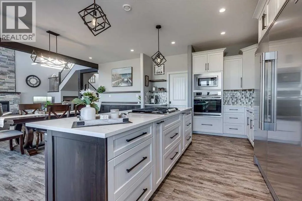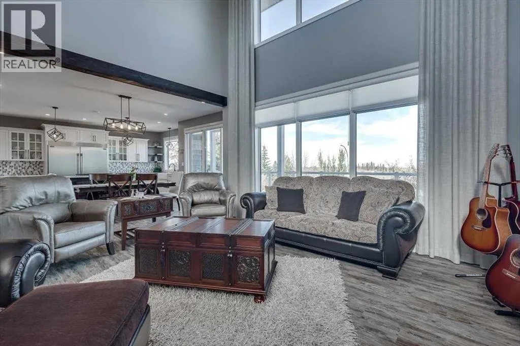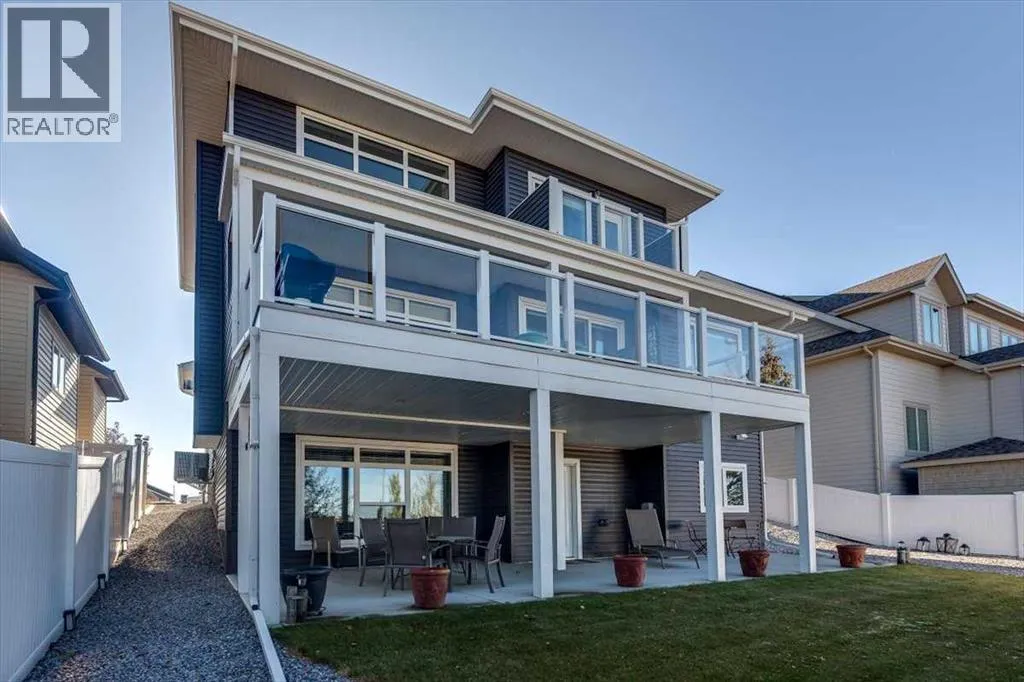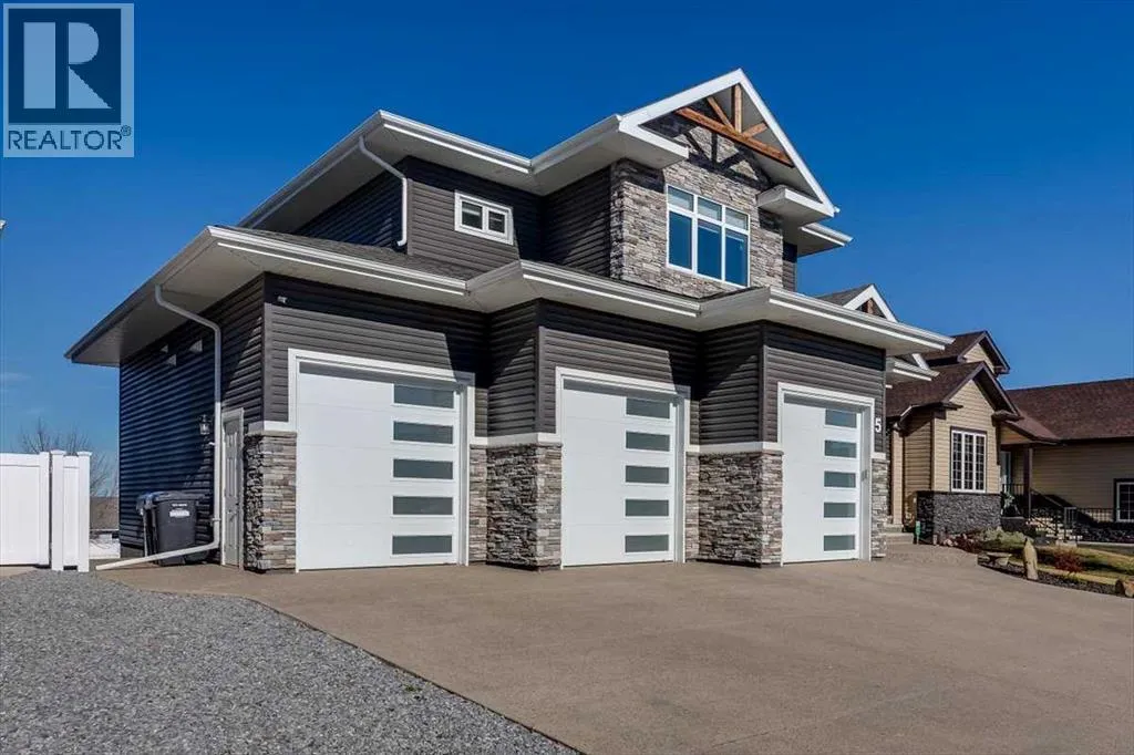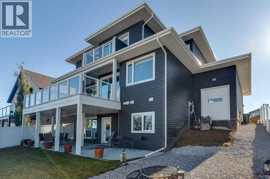 This extraordinary home in Lakeway Landing redefines luxury living in Sylvan Lake, blending architectural excellence, craftsmanship, and comfort. With over 2,200 sq ft of impeccably finished living space, this home offers a warm, sophisticated atmosphere designed for both family life and entertaining. A commanding Douglas Fir beam, 20-foot ceilings, and a floor-to-ceiling stone fireplace anchor the main living area, creating an impressive focal point bathed in natural light from expansive windows. Every detail speaks of quality and intentionâfrom the flow of the open-concept layout to the refined material selections throughout. The chef-inspired kitchen combines function and beauty. Granite countertops, stainless steel appliances, and a double side-by-side fridge and freezer meet the demands of modern living. The kitchen showcases custom cabinetry with thoughtful design details such as dual cutlery drawers, cookie sheet and knife drawers, and corner cupboard organizers that enhance both beauty and efficiency. A walk-through pantry connects conveniently to the mudroom for easy access and added storage. The island cooktop with vent hood allows for effortless meal prep and conversation, while triple patio doors off the dining area open to a spacious deckâperfect for morning coffee or evening gatherings beneath Sylvan Lakeâs sunsets. Upstairs, the primary suite sanctuary is pure indulgence. The five-piece ensuite rivals any luxury spa with double vanities, a freestanding soaking tub, and an enormous glass shower that exudes sophistication. Completing the retreat is an expansive walk-in closet featuring Canadian Closet custom organizers, providing both elegance and functionality. A private patio with a lake view extends from the suite, offering the perfect spot to unwind. A second bedroom and full bathroom share the upper level, along with a well-designed laundry room offering abundant cabinetry, counter space, and four pull-out hampers. The walkout lower level continues the homeâs theme of versatility and comfort. Two additional bedrooms, large full bathroom, a wet bar, and a spacious family area perfect for entertaining. Step out to a covered outdoor living space surrounded by low-maintenance landscaping, creating a seamless transition between indoor luxury and outdoor serenity. Built to an uncompromising standard, this home includes spray-foam under-floor insulation, enhanced insulation throughout for superior soundproofing and cost efficiency, and a heated triple car garage with soaring 12.5-foot ceilings, ideal for lifts, storage, or large vehicles. Comfort and performance are elevated with in-floor heating on all levels, central AC, an HRV system, and an on-demand hot-water heater, ensuring year-round warmth and energy savings. A rare blend of elegance, innovation, and livability, it is a true showcase of modern craftsmanshipâevery element thoughtfully curated for an unparalleled living experience in one of Sylvan Lake's most desirable communities. (id:27476)
