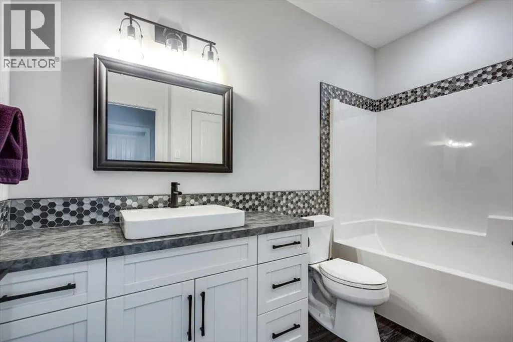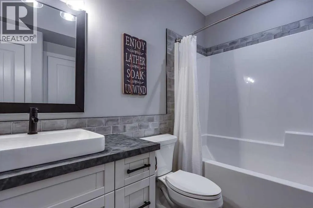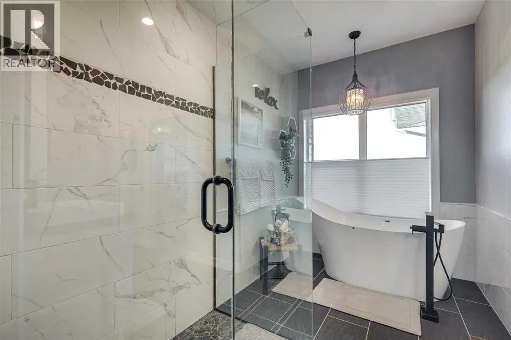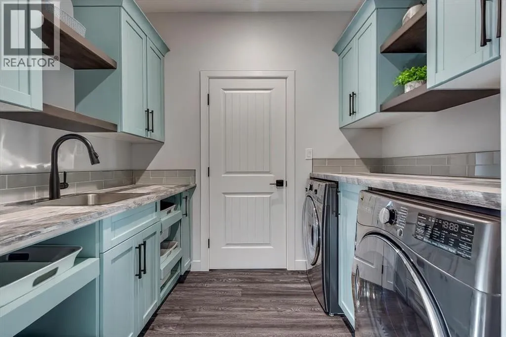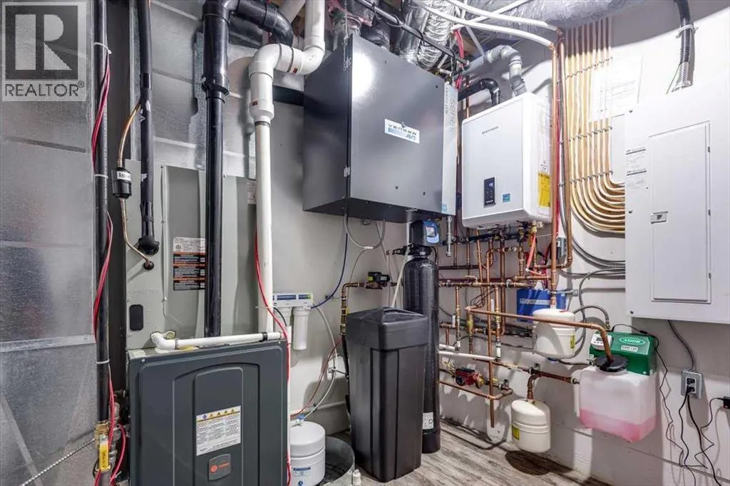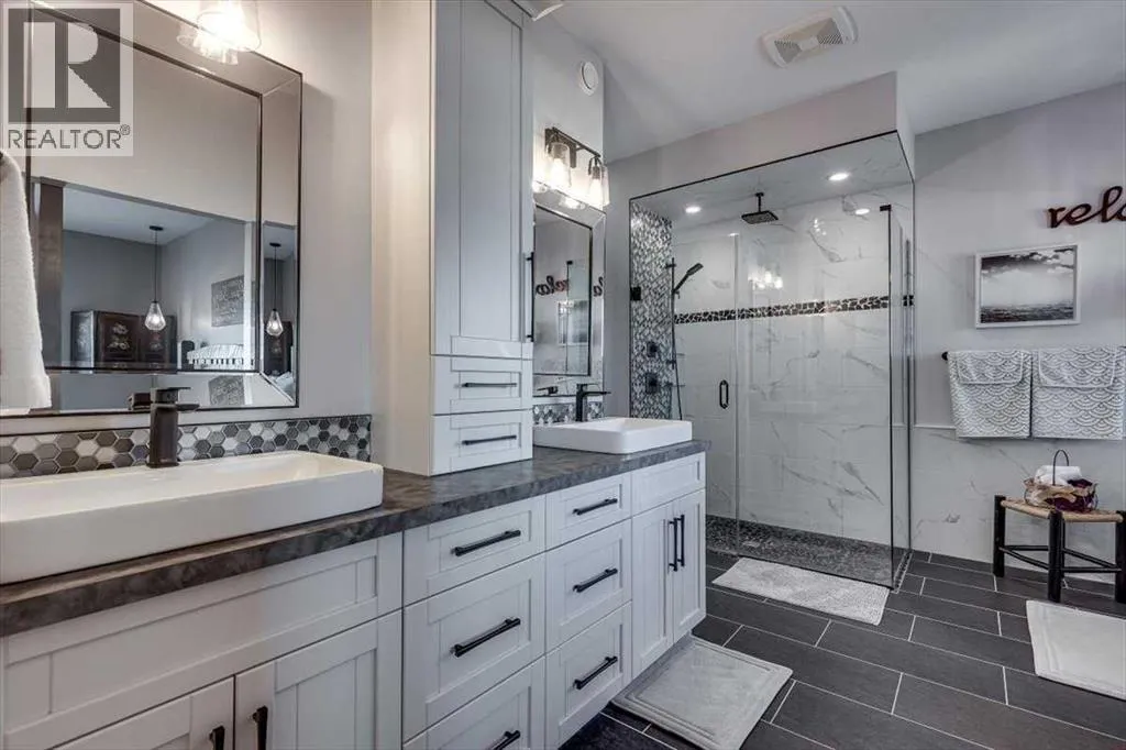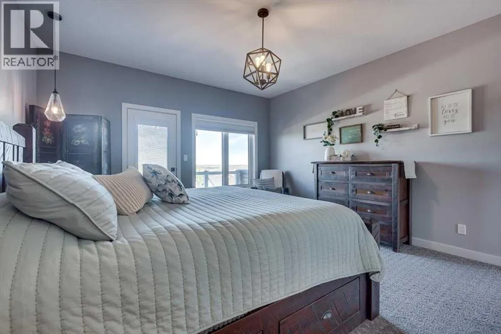 This extraordinary home in Lakeway Landing redefines luxury living in Sylvan Lake, blending architectural excellence, craftsmanship, and comfort. With over 2,200 sq ft of impeccably finished living space, this home offers a warm, sophisticated atmosphere designed for both family life and entertaining. A commanding Douglas Fir beam, 20-foot ceilings, and a floor-to-ceiling stone fireplace anchor the main living area, creating an impressive focal point bathed in natural light from expansive windows. Every detail speaks of quality and intentionâfrom the flow of the open-concept layout to the refined material selections throughout. The chef-inspired kitchen combines function and beauty. Granite countertops, stainless steel appliances, and a double side-by-side fridge and freezer meet the demands of modern living. The kitchen showcases custom cabinetry with thoughtful design details such as dual cutlery drawers, cookie sheet and knife drawers, and corner cupboard organizers that enhance both beauty and efficiency. A walk-through pantry connects conveniently to the mudroom for easy access and added storage. The island cooktop with vent hood allows for effortless meal prep and conversation, while triple patio doors off the dining area open to a spacious deckâperfect for morning coffee or evening gatherings beneath Sylvan Lakeâs sunsets. Upstairs, the primary suite sanctuary is pure indulgence. The five-piece ensuite rivals any luxury spa with double vanities, a freestanding soaking tub, and an enormous glass shower that exudes sophistication. Completing the retreat is an expansive walk-in closet featuring Canadian Closet custom organizers, providing both elegance and functionality. A private patio with a lake view extends from the suite, offering the perfect spot to unwind. A second bedroom and full bathroom share the upper level, along with a well-designed laundry room offering abundant cabinetry, counter space, and four pull-out hampers. The walkout lower level continues the homeâs theme of versatility and comfort. Two additional bedrooms, large full bathroom, a wet bar, and a spacious family area perfect for entertaining. Step out to a covered outdoor living space surrounded by low-maintenance landscaping, creating a seamless transition between indoor luxury and outdoor serenity. Built to an uncompromising standard, this home includes spray-foam under-floor insulation, enhanced insulation throughout for superior soundproofing and cost efficiency, and a heated triple car garage with soaring 12.5-foot ceilings, ideal for lifts, storage, or large vehicles. Comfort and performance are elevated with in-floor heating on all levels, central AC, an HRV system, and an on-demand hot-water heater, ensuring year-round warmth and energy savings. A rare blend of elegance, innovation, and livability, it is a true showcase of modern craftsmanshipâevery element thoughtfully curated for an unparalleled living experience in one of Sylvan Lake's most desirable communities. (id:27476)