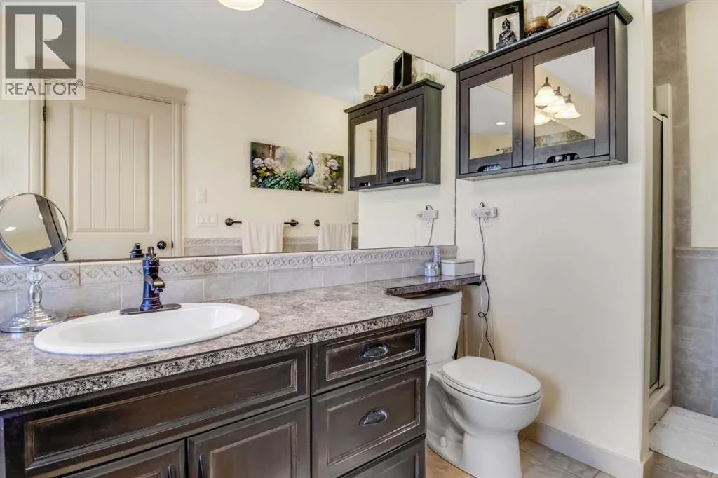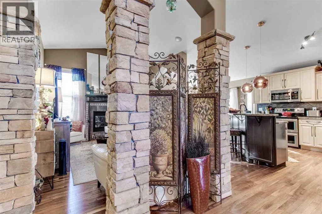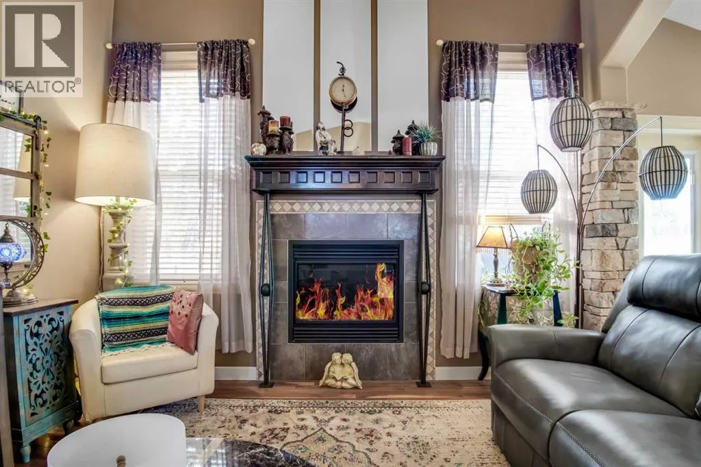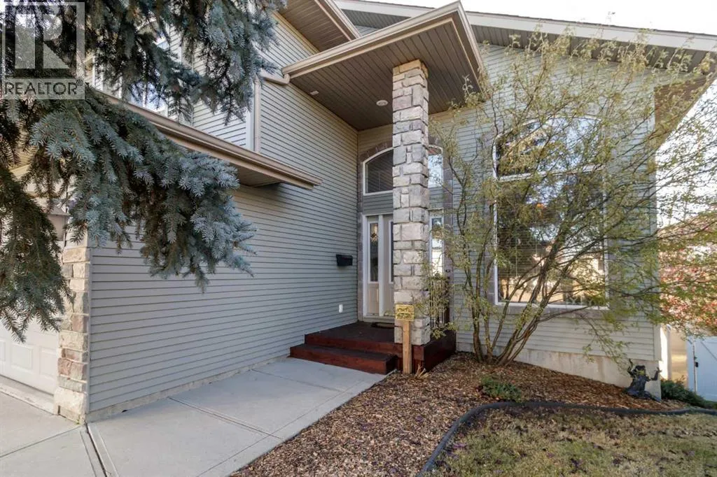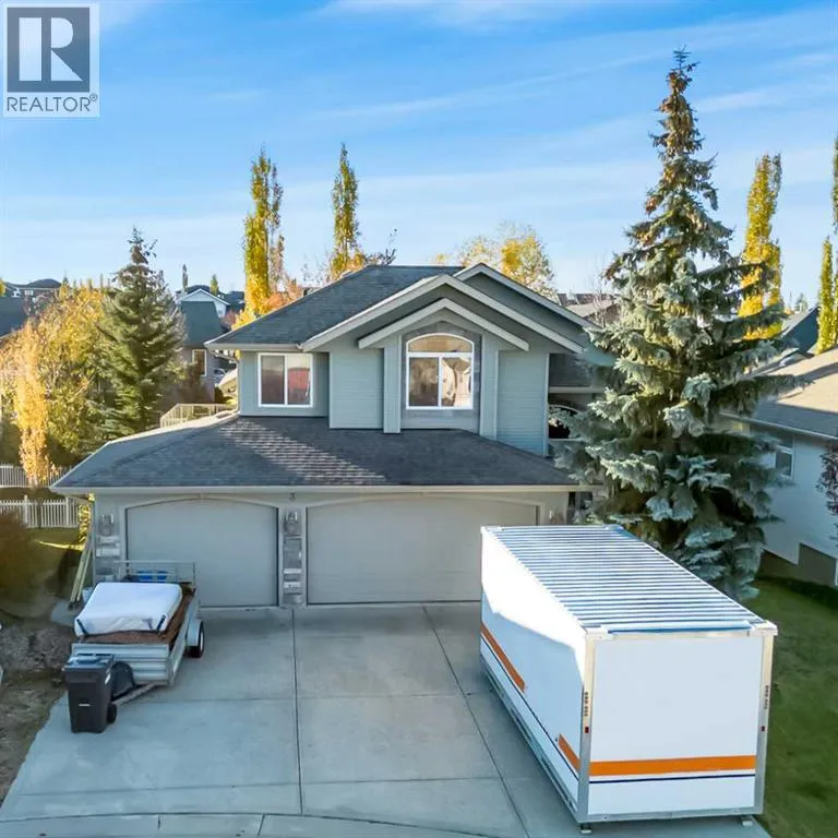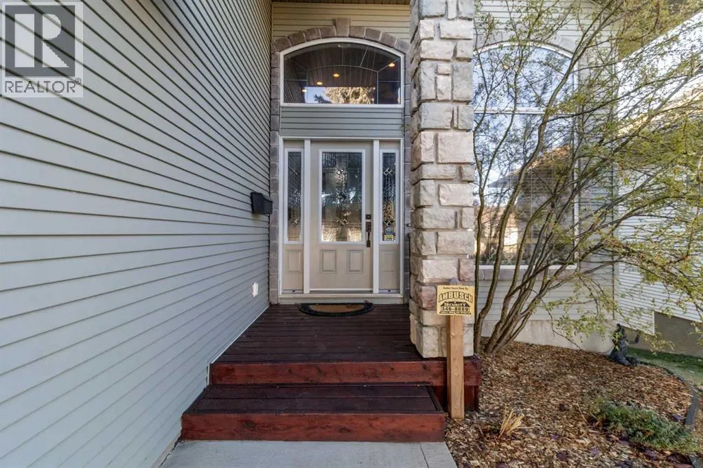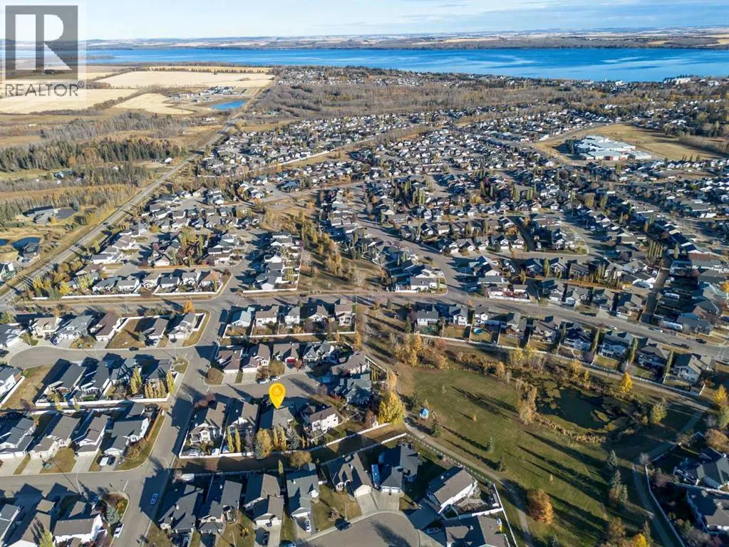 Magnificent Fully Developed Walkout Bi-Level in Sylvan Lakeâs Sought-After Southwest Neighborhood of Lakeway Landing! Offering over 2,900 sq ft of high-quality craftsmanship, this exceptional property is a one owner home, maintained by the owner of Buylo Homes himself. The property backs directly onto a green space with walking pathways & park space with a pond just steps away. The grand open-concept living area has a warm country-nature atmosphere featuring cultured stone columns, archways, fireplace, vaulted ceilings, and rich walnut hardwood flooring. A front living room or lifestyle space with metal railing overlooks the tiled foyer, perfect for an office, music room, or family retreat. The kitchen includes a raised eating bar with sink, a corner pantry, and stainless steel appliances. Garden doors in the dining area lead out to the upper south-facing wrap-around deck - finished with duradeck flooring and glass railing, where mature trees provide privacy without blocking the view of the greenspace and pathways. The Primary Bedroom is a private retreat with vaulted ceiling, walk-in closet, and 4-piece ensuite featuring a soaker tub and separate shower. Two additional bedrooms, a full bath, and a laundry room with cabinets, a sink, and window complete the main level. The walkout basement continues to impress with in-floor heat, 10+ ft ceilings, cultured stone accents, 8-ft solid maple doors for the theatre room, a large family area, and an additional bedroom with 11-ft ceiling height. A 4-piece bathroom and generous storage room provide exceptional functionality. Walk out to a concrete patio with direct access to the pathway and park space nearby. Thereâs even a 10.5 ft x 8 ft built-in outdoor storage room (shed) and a raspberry patch in the landscaped yard. Additional highlights include: Heated 30â5â x 21â5â garage with floor drain and a man door to the side yard ~ New on-demand water heater (2025) ~ In-floor heat ~ Central air conditioning ~ Humidifier ~ Central vacuum ~ High ceilings on both levels ~ Upper deck and lower patio for outdoor enjoyment ~ Located on a quiet cul-de-sac in Sylvan Lakeâs desirable southwest area with quick and easy access to Highway 11 and Albertaâs best year-round recreation destination! (id:27476)