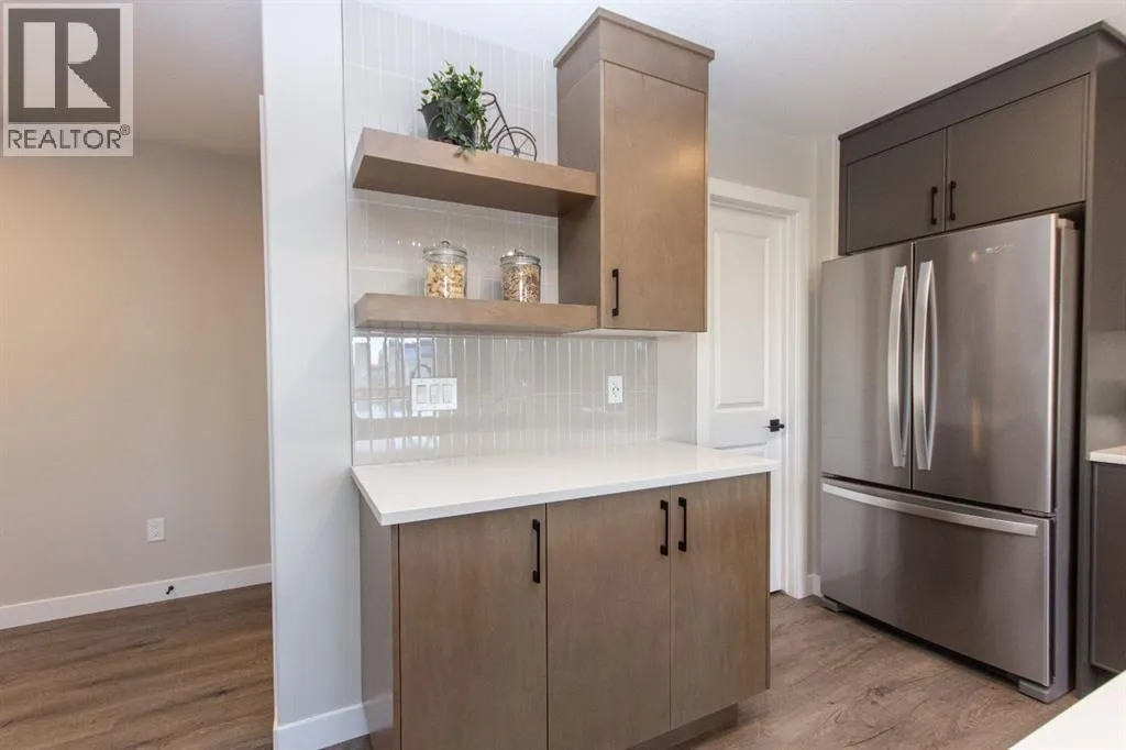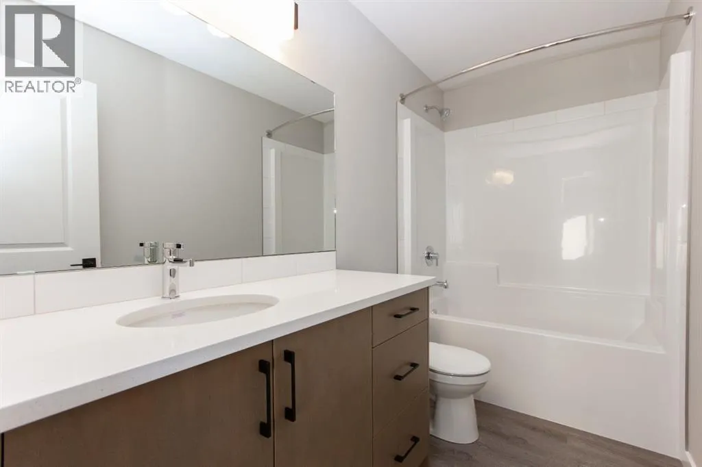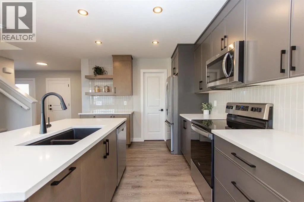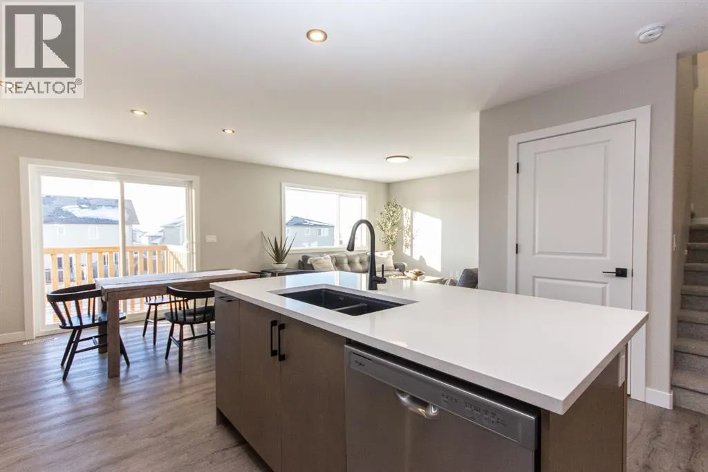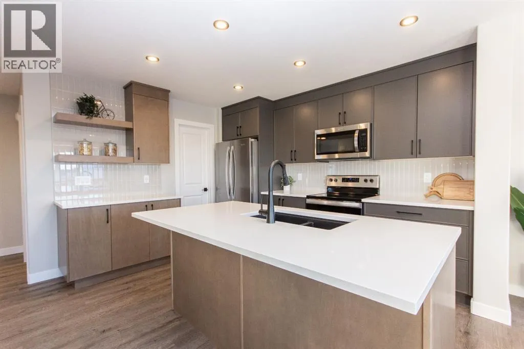 Be the first owner of this brand new Laebon Home situated in the sought after neighbourhood of Beacon Hill, just steps from multiple parks, green spaces, and Beacon Hill Elementary! This stylish Paxton two storey floor plan offers 1707 square feet above grade, a wide open living space, large windows, 2nd floor laundry, and a large bonus room! The main floor features vinyl plank flooring throughout, and a beautiful kitchen offering two toned raised cabinetry, stainless steel appliances, quartz countertops, a large island with eating bar, and a large walk in pantry. The adjacent eating area has sliding patio doors that lead out to the deck. Head upstairs to find two nicely sized kids/spare rooms that share a large 4 pce bath, and a large master bedroom with its own private 4 pce ensuite and huge walk in closet. Laundry is conveniently located near the bedrooms, and the large and bright bonus room gives you additional living space to enjoy. The attached garage is insulated, drywalled, and taped. If you need more space, the builder can complete the walkout basement development for you, and allowances for blinds and a washer & dryer can also be included to make this a fully move in ready home. Poured concrete front driveway, front sod, and rear topsoil are included in the price and will be completed as weather permits. GST is already included in the purchase price. Live worry free thanks to a full 1 year builder warranty and 10 year Alberta New Home Warranty. Taxes have yet to be assessed. This home is currently under construction and has an estimated completion date of mid February 2026. Photos and renderings are examples of a previous home built with the same floor plan, finishes and colours will not be identical to photos. (id:27476)