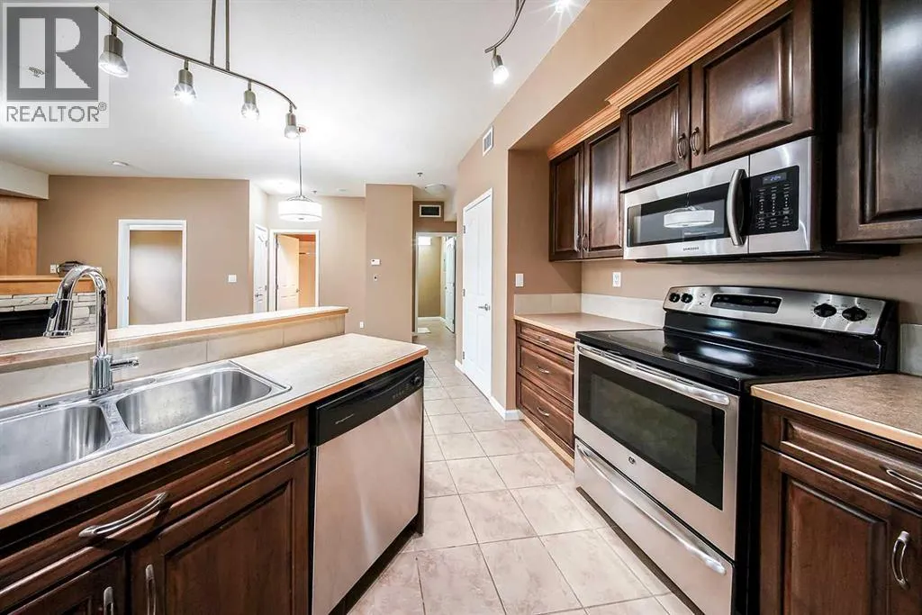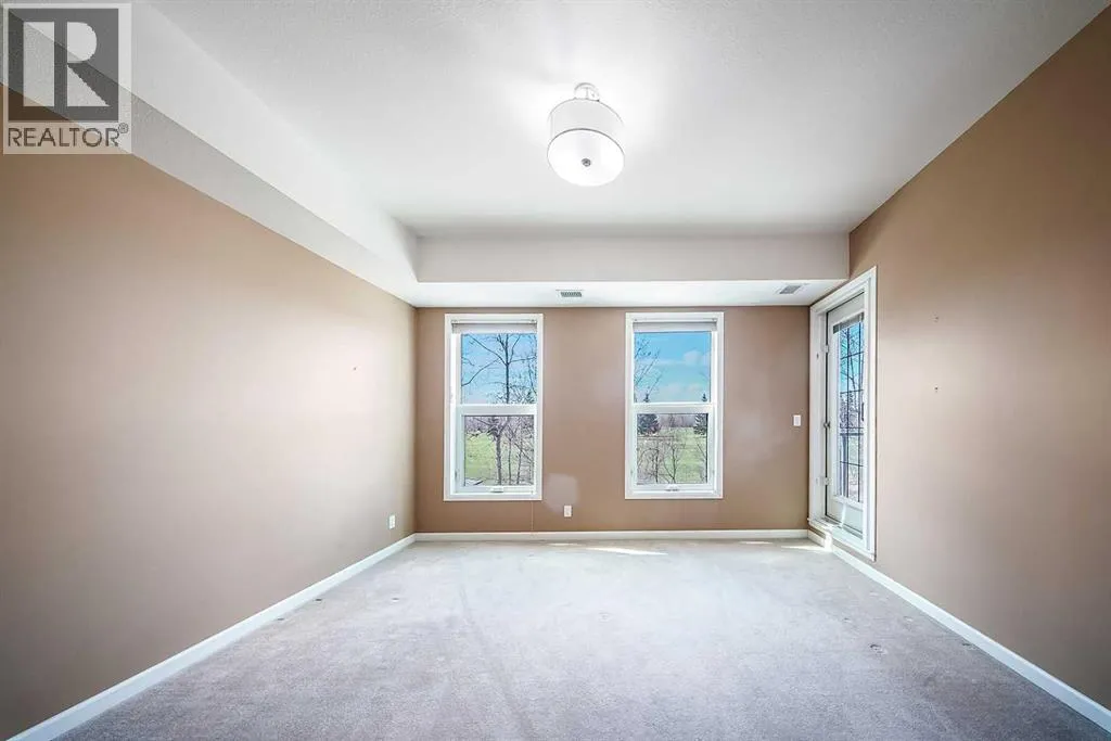Welcome to Fairway Estates, one of Sylvan Lakeâs most sought-after condominiums! This stunning 2-bedroom, 2-bathroom condo offers breathtaking views of the 18th fairway of Sylvan Lake Golf & Country Club from your spacious, covered second-floor balcony â perfect for enjoying your morning coffee or relaxing evenings. Inside, youâll find a bright and open floor plan featuring an updated kitchen with stylish cabinetry, ample cupboard space, a breakfast bar, and a cozy dining area. The inviting living room is centered around a charming corner gas fireplace and also provides access to the balcony for seamless indoor-outdoor living. The large primary bedroom is a true retreat with its own balcony access, a walk-in closet, and a luxurious ensuite that includes a deep soaker tub and separate water closet. A generously sized second bedroom and a full 3-piece main bathroom offer plenty of space for guests or family. Additional features include a linen/storage closet and an in-suite laundry room with space for a small deep freeze, second fridge, or extra shelving. This unit also comes with 2 TITLED UNDERGROUND PARKING SPACES as well as assigned storage. Fairway Estates is ideally located just a short stroll from the waterfront, restaurants, shops, walking paths, and more. The building is rich in amenities including a hot tub, steam room, exercise facility, library, pool table, banquet room, car wash and more â everything you need for a vibrant and convenient lifestyle. Donât miss your chance to enjoy carefree condo living with the best of Sylvan Lake right at your doorstep! (id:27476)