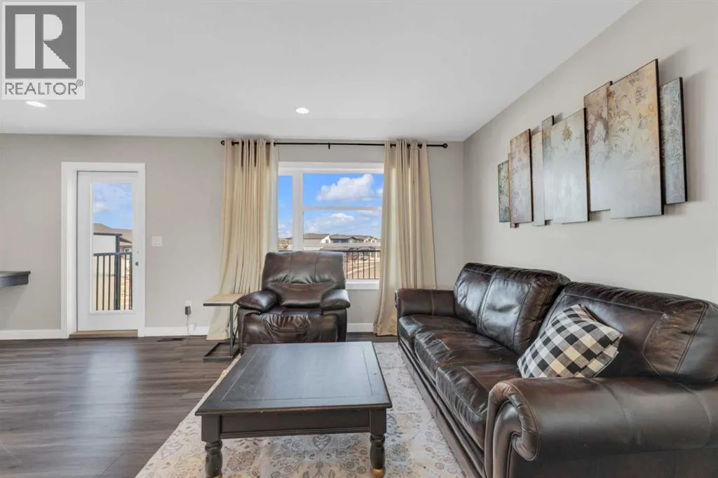 Modern convenience meets affordability in this stunning townhouse that truly has it all! Enjoy the comfort of an attached heated garage with a built-in bench and hooks off the entry for everyday organization. The main floor features an open concept design with a bright living room and a stylish kitchen complete with stainless steel appliances, a fridge with water and ice, tower pantry, quartz countertops, and an island with seating. A garden door off the living room opens to the upper composite deck â the perfect spot for morning coffee. Also on the main floor are laundry, a 2pc bathroom, and a dining area with access to the back deck and fully fenced yard. Upstairs offers three spacious bedrooms and two full bathrooms, including a 3pc ensuite and walk-in closet for the primary suite. The basement awaits your finishing touch with rough-ins for a 4th bathroom. Other highlights include a paved back alley, high-efficiency furnace, central air conditioning, water softener, and the remaining balance of the new home warranty. Ideally located just steps from a park and large green space, this property blends modern living with everyday practicality. (id:27476)