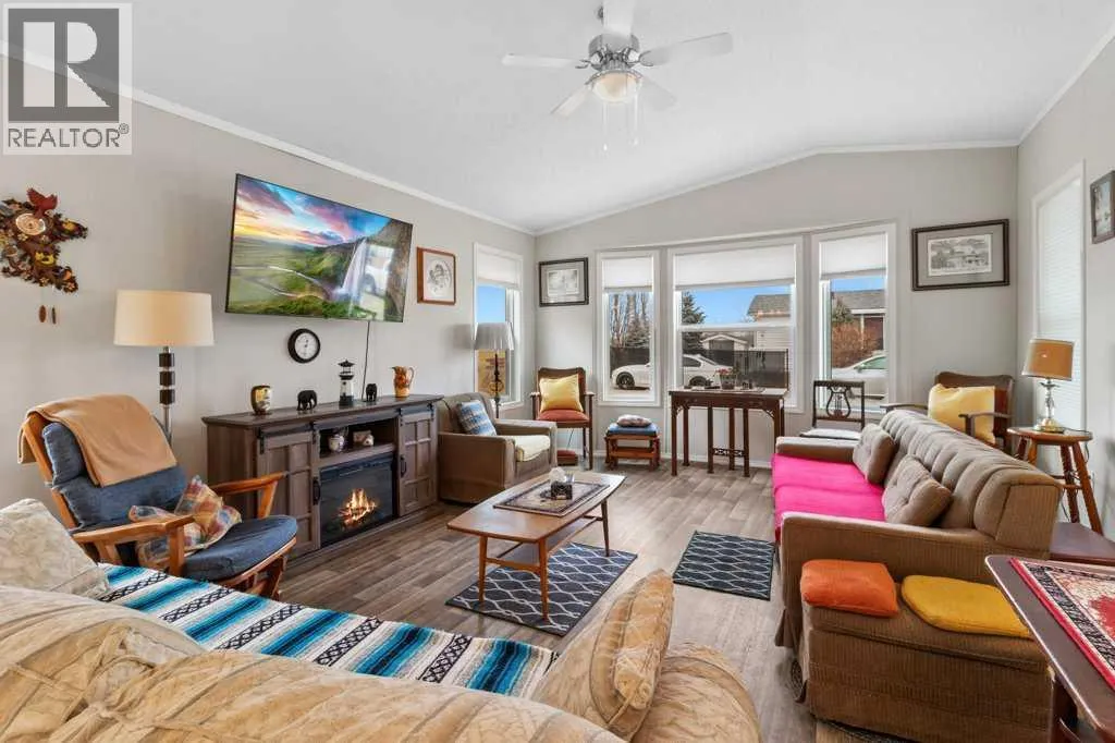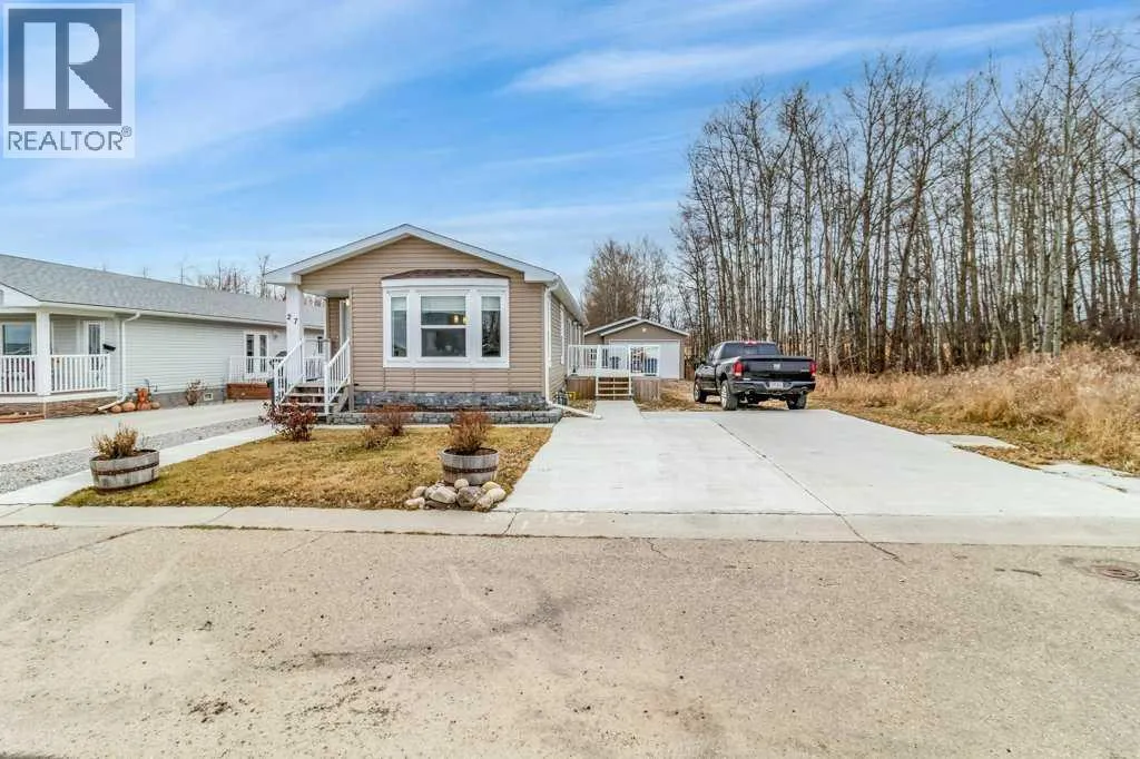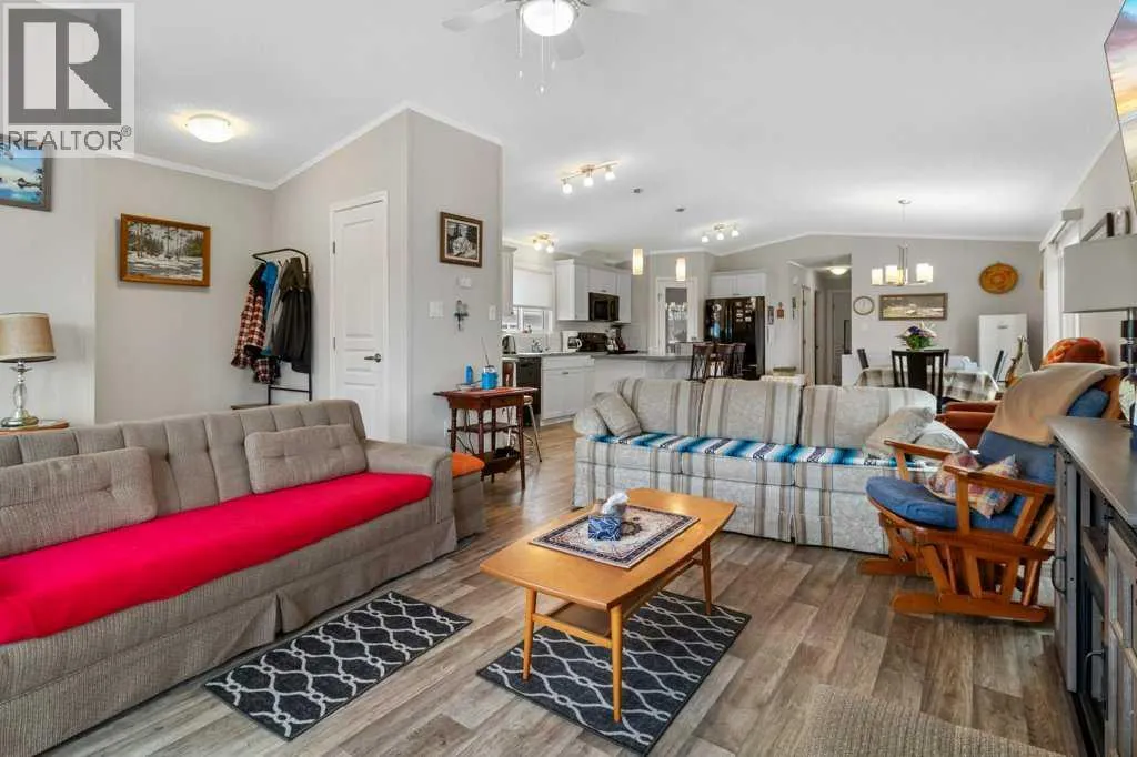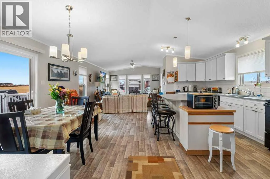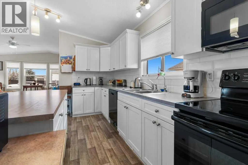 Located in the vibrant town of Sylvan Lake, this beautifully maintained home offers the perfect blend of comfort, convenience, and an active lifestyle. Enjoy all that Sylvan Lake has to offerâboating, golfing, nearby schools, shopping, and year-round recreation. Nestled in the desirable Lighthouse Point subdivision, this property sits on a spacious 50x130 ft corner lot at the end of a quiet cul-de-sac, backing onto a peaceful greenspace. The yard is fully landscaped and features a parking pad for two vehicles, an 8x12 storage shed, and a detached 29x19 heated garageâperfect for vehicles, hobbies, or extra storage. This bright and inviting 1,243 sq ft manufactured home is exceptionally well cared for, featuring vaulted ceilings and an abundance of windows that fill the space with natural light and durable linoleum flooring throughout for easy maintenance. The open-concept kitchen is designed for both function and style, complete with white cabinetry, a large island, breakfast bar, and a walk-in pantry. Appliances include a refrigerator, stove, dishwasher, microwave, reverse osmosis system, washer, and dryer. Sliding doors off the dining area lead to a sunny deckâperfect for morning coffee or evening relaxation. The spacious living room provides a comfortable gathering space, while the homeâs two bedrooms include a generous primary suite with a four-piece ensuite and large walk-in closet. A second four-piece bath, convenient laundry area, and a side entrance opening to a 10x30 deck complete the layout. $101 Monthly fees include road maintenance, professional management, and contributions to the reserve fund, ensuring a well-maintained and worry-free community. (id:27476)