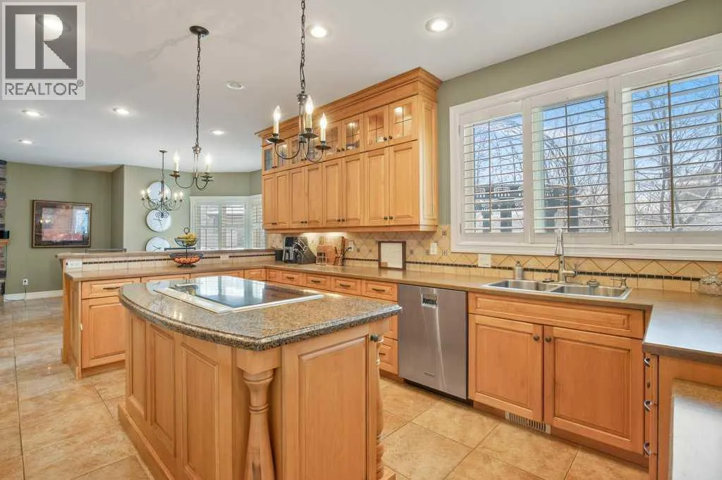 Here is the one you've been waiting for! This STUNNING TWO-STORY has finally hit the market! Perched on an expansive pie lot in the prestigious neighborhood of Fieldstone. The stone facade and soaring pillars offer that WOW factor. Greet your guests into the grand foyer, accented with it's 14 foot ceiling and curved staircase. The extensive floor plan features elements of elegance along with thoughtful functionality. Tray ceilings, crown molding, heated floors, and custom blinds & millwork throughout. Multiple gathering areas - indoor and out- make entertaining easy. Take your pick between lounging in the formal living room or cuddling up in the cozy family room. The gourmet kitchen features warm custom cabinetry and stainless steel appliances. Dine with the added ambience of the stunning gas fireplace. Laundry and a mud room are convenient additions to this level. This impressive two-story home offers SIX SPACIOUS BEDROOMS, each designed with comfort and style. The primary suite serves as a private retreat, complete with a spa-like 5-piece ensuite and gorgeous gas fireplace. The his & hers walk-in closets lead to the convenience of a personal home gym. This prime location could also accommodate an amazing home office. The NEWLY RENOVATED lower level lends itself to entertaining. The large windows allow for loads of natural light and the in-floor heating offers an added comfort. Socialize in the expansive rec room or cuddle up for movie nights in the theatre room. The two generous bedrooms on this floor are joined by a Jack n' Jill 4-piece bathroom. This reverse pit lot allows for an oversized backyard, beautifully landscaped and complimented by both retaining walls and cement enclosures. The oversized double attached garage is heated and provides plenty of indoor parking. Additional upgrades include: TWO BRAND NEW furnaces, a NEW hot water tank, and TWO A/C UNITS! Fieldstone is an exclusive neighborhood featuring lovely walking trails and parks. Along with convenie nt access to several schools and highway 11. This large luxury home is designed to impress, with an abundance of space, style, and comfort. A truly exceptional property with so much to offer. Treat yourself to a viewing today! (id:27476)