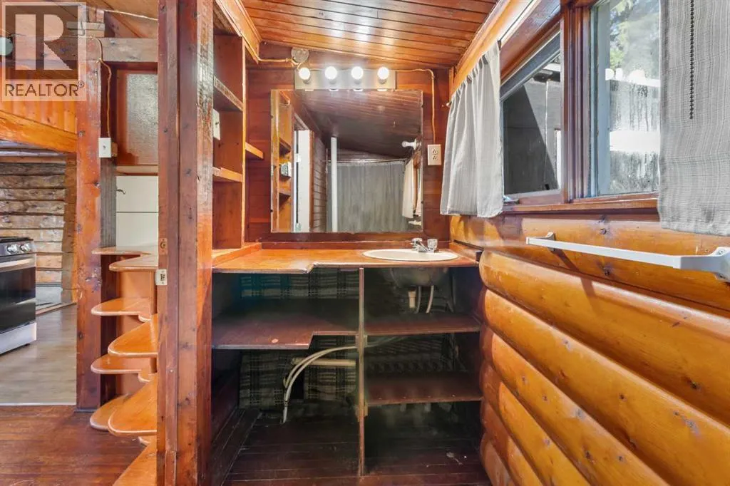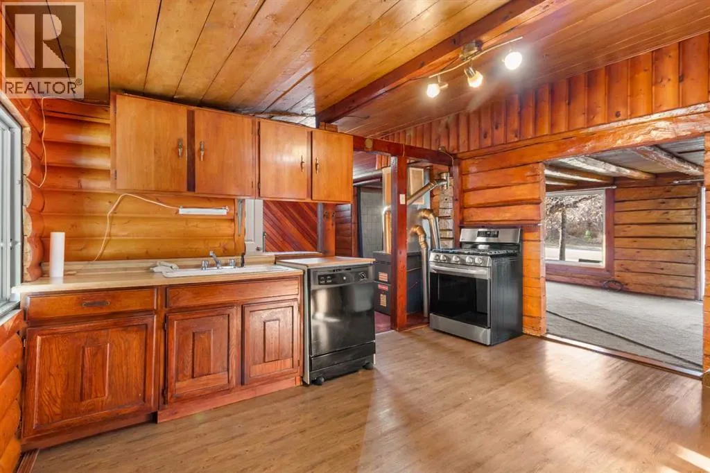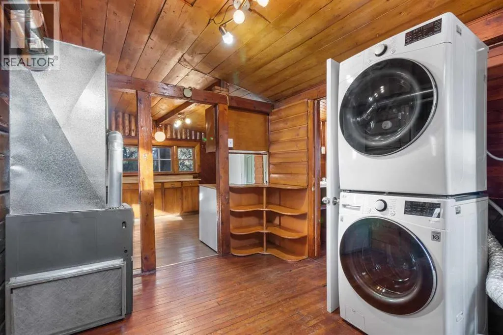 Log cottage in the Palo area of Sylvan Lake on a 50x150 lot. 3 Blocks to the Arena, 4 blocks to the beach and downtown area. Very solid and clean with new carpet in the living room, the rest is all original hardwood. Newer appliances with gas stove and stackable washer and dryer. Loft was used as a bedroom, also the room beside living room was used as a bedroom. Single 24x12 garage and shed. (id:27476)