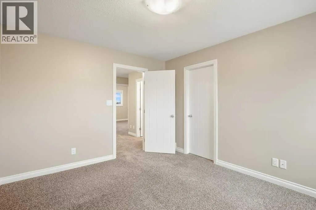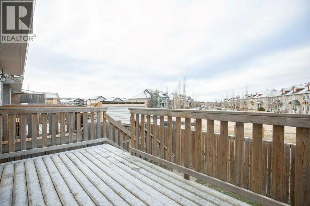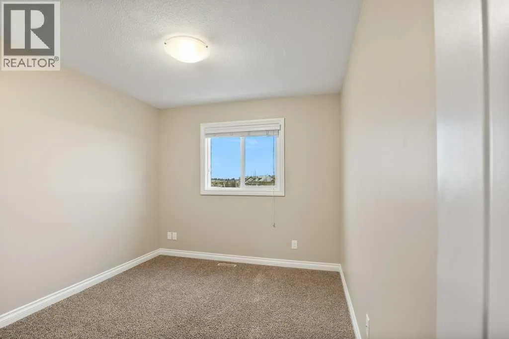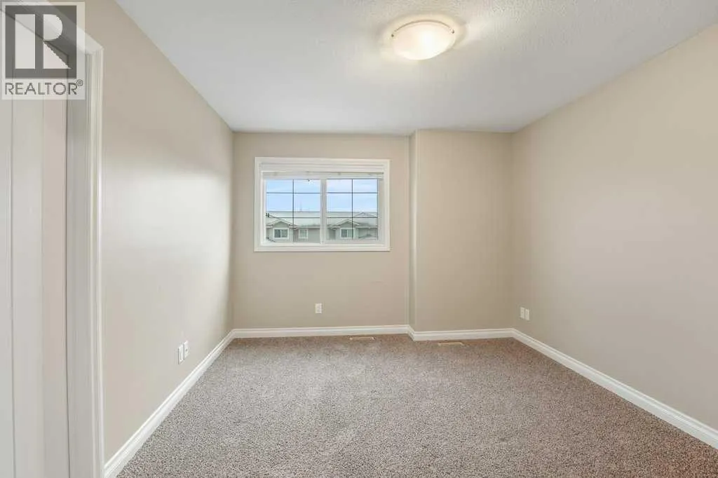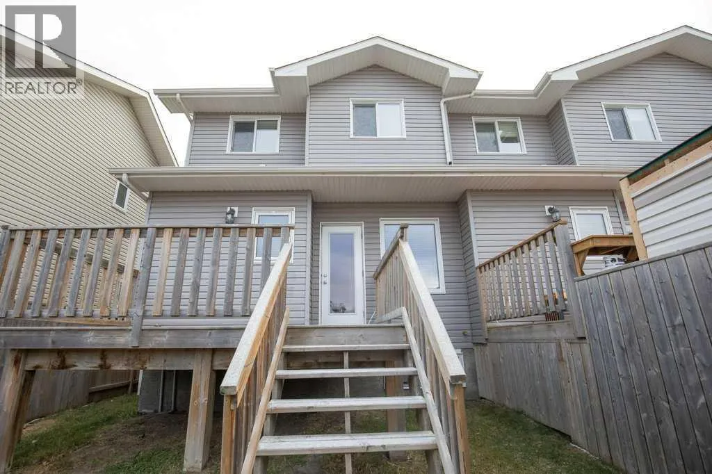 An INCREDIBLE OPPORTUNITY for a FIRST TIME BUYER or INVESTMENT PROPERTY! This two story end unit is situated in the sought after neighborhood of Ryders Ridge. The location is ideal, park the car and walk to everything you need! Conveniently close to schools, shopping, and restaurants. The earth tone exterior is accented with stone work and a covered entrance. The home features a functional floor plan that flows beautifully. The large entry way is tiled and offers immediate access to the charming home office. The kitchen features rich dark cabinetry with crown molding and sleek black appliances. Dine inside or step thru the garden door to enjoy the evening sunsets on the patio. The backyard is fully fenced for the kids and pets to safely play. Head upstairs to relax in the spacious primary bedroom, boasting a wonderful walk-in closet. Two additional bedrooms and a 4-piece bathroom complete this upper level. The basement awaits your finishing touches, but currently provides loads of storage space and the bathroom plumbing has been roughed in. Laundry is also located on this lower level. Come discover this RARE OPPORTUNITY. This turnkey property has been well maintained and won't last long on the market! (id:27476)