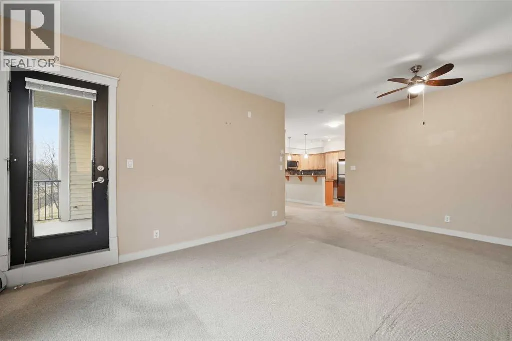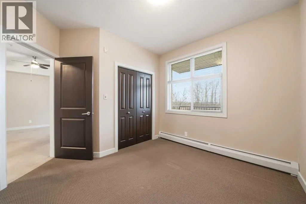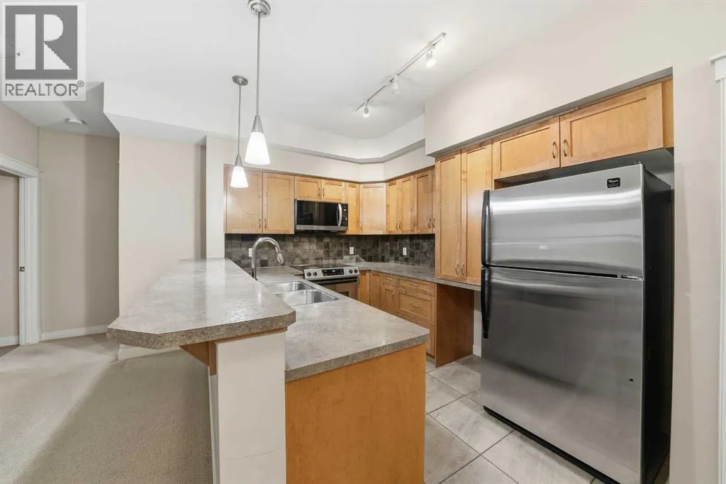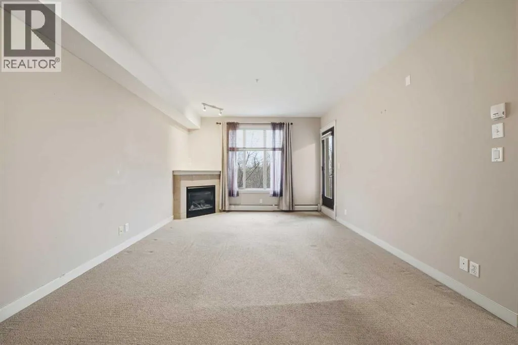 A 2 bedroom plus a den condo on the second floor of the Sommerset building. The tiled front entryway greets you to the open style floor plan. Dark maple kitchen cabinets are complemented by full tile backsplash, stainless steel appliances, pot/pan drawers, a pantry and a raised eating bar. The dining room adjoins to the living room that features a gas fireplace and a large window overlooking trees. There is a south facing covered patio with a gas line and aluminum railings. The king sized primary bedroom has double sided walk through closets to the 4 piece ensuite. There is a second bedroom and a den. There is a nice sized laundry room with room for storage. The property includes a heated underground assigned parking stall with additional storage and an outside parking stall also. The building offers dual lobbies, elevators, and a fitness centre. (id:27476)
