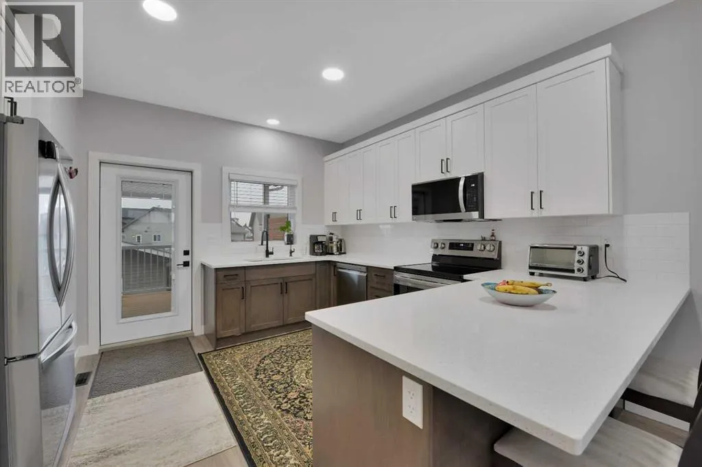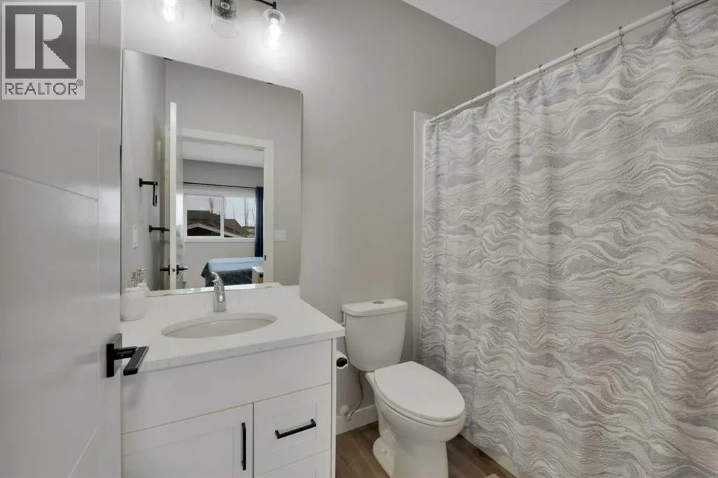 Built in 2024 this home is a shining example of the modern home. 4 bedrooms, 3 bathrooms and a bright, well planned layout in one of Sylvan Lakeâs established neighbourhoods with convenient access to schools, shopping and the highway. Both levels feature 9 ft ceilings that create an open atmosphere and enhance the natural light throughout. The upgraded kitchen includes pot lighting, soft close cabinetry, quartz countertops, vinyl plank flooring, this Kitchen has plenty of room to work in, you will love the space and the feeling this home provides. The primary bedroom is complete with an ensuite and his and her closets, for efficient storage.A 12 x 10 covered deck extends off the kitchen and faces south, providing a comfortable outdoor space with a gas line for summer grilling. The fully finished lower level features large windows, carpeted flooring and a spacious family room that offers flexibility for both relaxation and entertainment. The basement also includes two sizeable bedrooms, a generous bathroom and a large utility and laundry room with a water softener and ample storage options. If you want space this house has it. Outside, the front yard is landscaped and the backyard is fully fenced with a firepit. A 22 x 22 garage sits off the back alley, offering secure parking and additional storage. (id:27476)