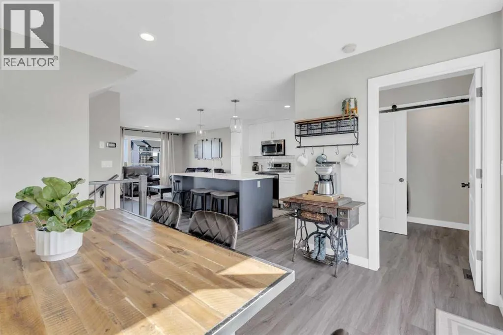 Modern convenience meets affordability in this stunning townhouse that truly has it all! Enjoy the comfort of an attached heated garage with a built-in bench and hooks off the entry for everyday organization. The main floor features an open concept design with a bright living room and a stylish kitchen complete with stainless steel appliances, a fridge with water and ice, tower pantry, quartz countertops, and an island with seating. A garden door off the living room opens to the upper composite deck â the perfect spot for morning coffee. Also on the main floor are laundry, a 2pc bathroom, and a dining area with access to the back deck and fully fenced yard. Upstairs offers three spacious bedrooms and two full bathrooms, including a 3pc ensuite and walk-in closet for the primary suite. The basement awaits your finishing touch with rough-ins for a 4th bathroom. Other highlights include a paved back alley, high-efficiency furnace, central air conditioning, water softener, and the remaining balance of the new home warranty. Ideally located just steps from a park and large green space, this property blends modern living with everyday practicality. (id:27476)