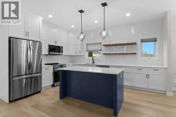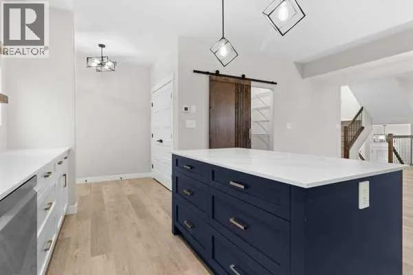 NO CONDO FEES. Located in the vibrant community of Sylvan Lake, this centrally located 2023-1864 square foot built townhouse offers the perfect blend of modern style, space, and convenience. This high-end home features 5 bedrooms in totalâ3 on the second level, including a spacious primary bedroom with a luxury 4-piece ensuite, plus an additional 4-piece bathroom. The second level also includes a conveniently located laundry right alongside the bedrooms. Beautiful neutral paint tones, an abundance of large windows, and durable vinyl plank flooring create a bright, inviting atmosphere throughout the home. The open-concept main level showcases a bright white kitchen with a walk-in pantry, large island, and adjoining living room, along with a mudroom and a 2-piece bath. Off the kitchen, enjoy access to a back deck overlooking the fully fenced yard. The fully developed basement offers 2 additional bedrooms, a large family room, and another 4-piece bathroom. Just minutes from shopping, schools, the NexSource Centre, the community centre, and only three blocks from beautiful Sylvan Lake, this home delivers exceptional comfort in a great location. (id:27476)