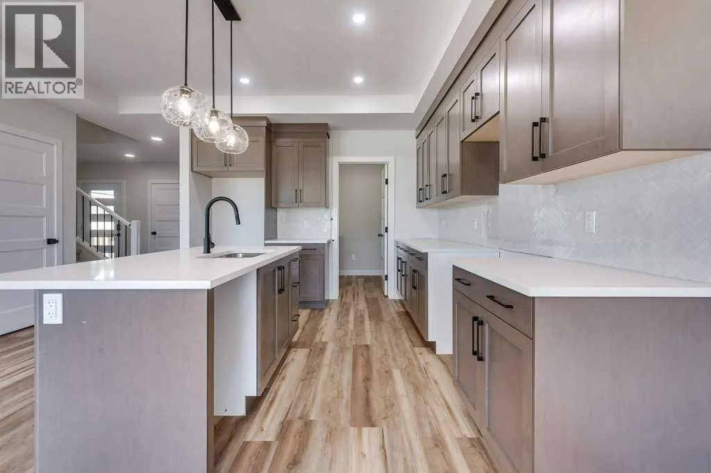 Brand new Black Wolf Custom home in Sylvan Lake. Step into this stunning new build in the sought-after Crestview community, offering exceptional curb appeal with modern exterior finishes, an abundance of windows, and a welcoming covered front porch with durable composite decking. The spacious front entry greets you with luxury vinyl plank flooring, a built-in bench for convenience, and a walk-in coat closet. Designed with entertaining in mind, the bright and open main floor features a generous living area and a show-stopping kitchen complete with a large center island, quartz countertops, stainless steel appliances (with a waterline for fridge/ice maker), and a stylish butlerâs pantry that includes a prep sink, coffee bar, and space for a freezer or wine fridge. The dining area is perfect for hosting and opens directly onto a west-facing 10' x 12' composite deck. Upstairs, youâll find a sunny bonus room, two well-sized bedrooms, a 4-piece main bathroom, and a convenient laundry area with washer and dryer included. The spacious primary suite easily fits a king-sized bed and offers a walk-in closet and a 4-piece ensuite with double sinks & stand up shower with glass door. The unfinished basement features a separate side entrance for home business, private guest space, or a teen retreat. With 9-foot ceilings, a high-efficiency furnace, and rough-ins for both air conditioning and in-floor heating, this home is built for comfort and future flexibility. The attached garage is insulated and drywalled, complete with a floor drain and a 220V outletâideal for EV charging. Located in the desirable Crestview neighborhood, this home is close to the highway, town amenities, the local trail system, and beautiful Sylvan Lake. Seller to complete front & back sod as well as pressure treated fence so bring the kids and pets, move in ready, immediate possession available (id:27476)