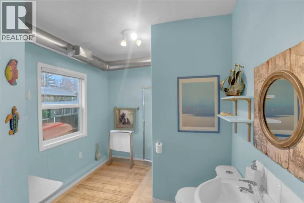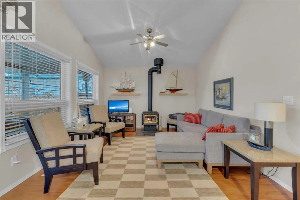 Charming year round Cabin + Studio on one of Sylvan Lakeâs Most Sought-After Streets! Nestled in the highly desirable Sylvan Lake Cottage Area, this unique property offers 1,359 sq ft of total living space, featuring an 868 sq ft, 2-bedroom, 1-bathroom cabin along with a 501 sq ft studio that adds an additional space. The bright and versatile studio, equipped with its own furnace, 3-piece bathâan ideal setup for guests and extended family. This space is also perfect for crafts, hobbies, music enthusiasts, or anyone needing a creative retreat. Step into the main cabinâs inviting vaulted-ceiling great room, complete with a full kitchen and pantry, spacious dining area, cozy wood-burning stove, and laminate flooring throughout. The layout flows effortlessly to a generous primary bedroom, a second bedroom, and a well-appointed 4-piece bathroom. A 4-ft poured concrete basement houses the furnace, water softener, and sump pump, providing ample clean, dry storage. Sitting on a 40â x 140â lot, the property showcases one of the areaâs largest gardens, surrounded by mature evergreens and enhanced by professional landscaping with flowers blooming in stages from spring through fall. The fully fenced and exceptionally private yard can be enjoyed from the covered, oversized deck that spans the width of the homeâperfect for morning coffee or evening relaxation. All appliances, blinds, fixtures, a full-size washer and dryer, and a water softener are included, allowing you to simply move in and start enjoying lake life. This lovingly maintained property is in exceptional condition, offering a rare turnkey opportunity filled with comfort, charm, and incredible potentialâright in the heart of Sylvan Lake. (id:27476)